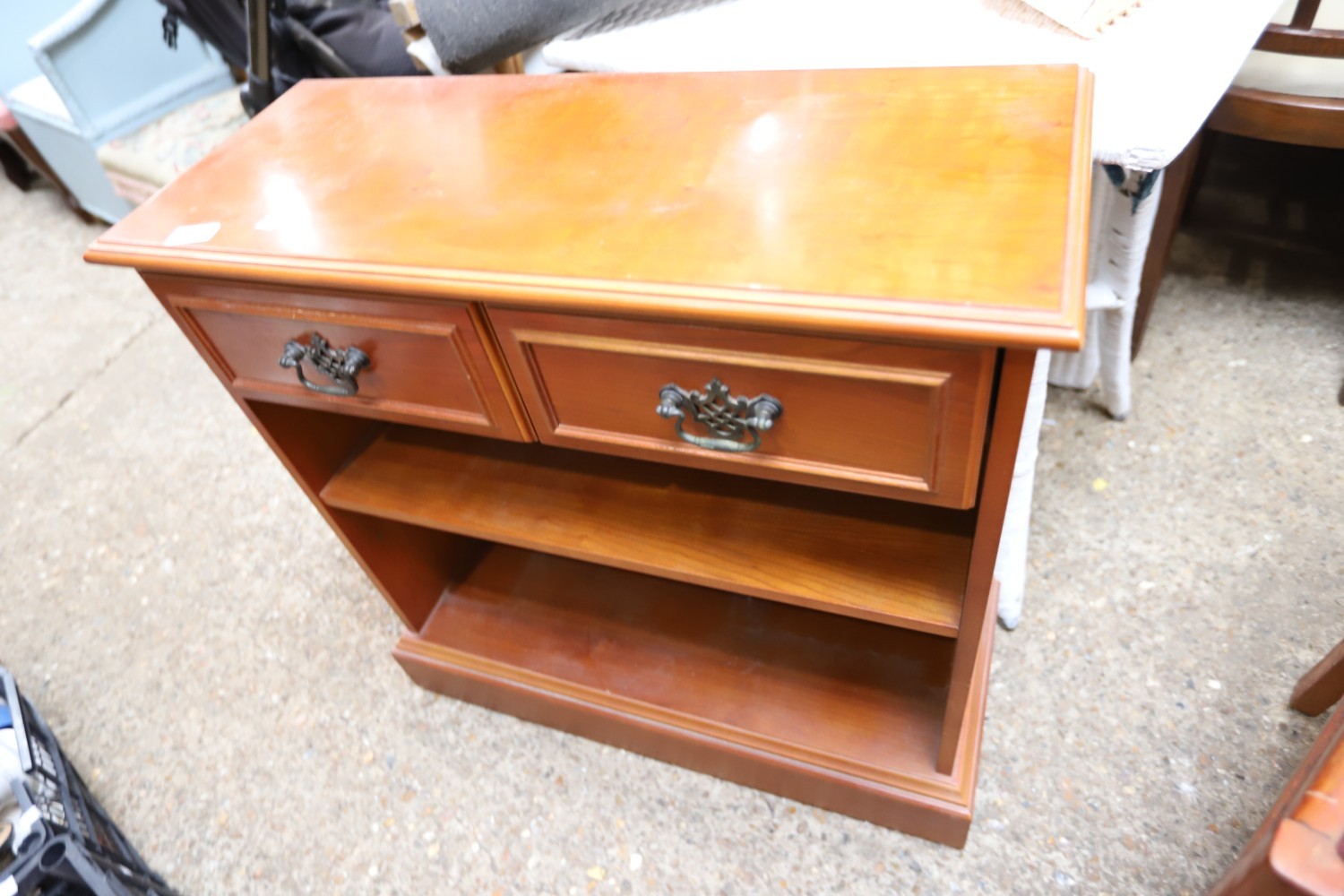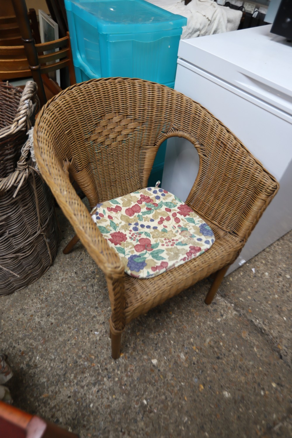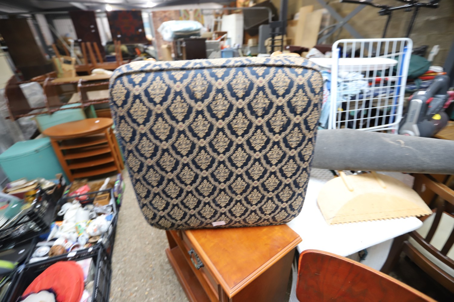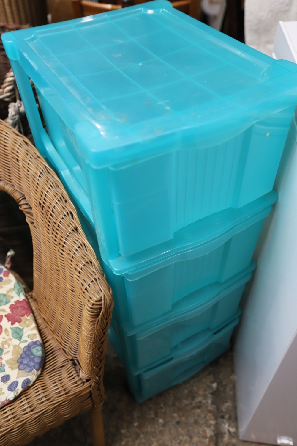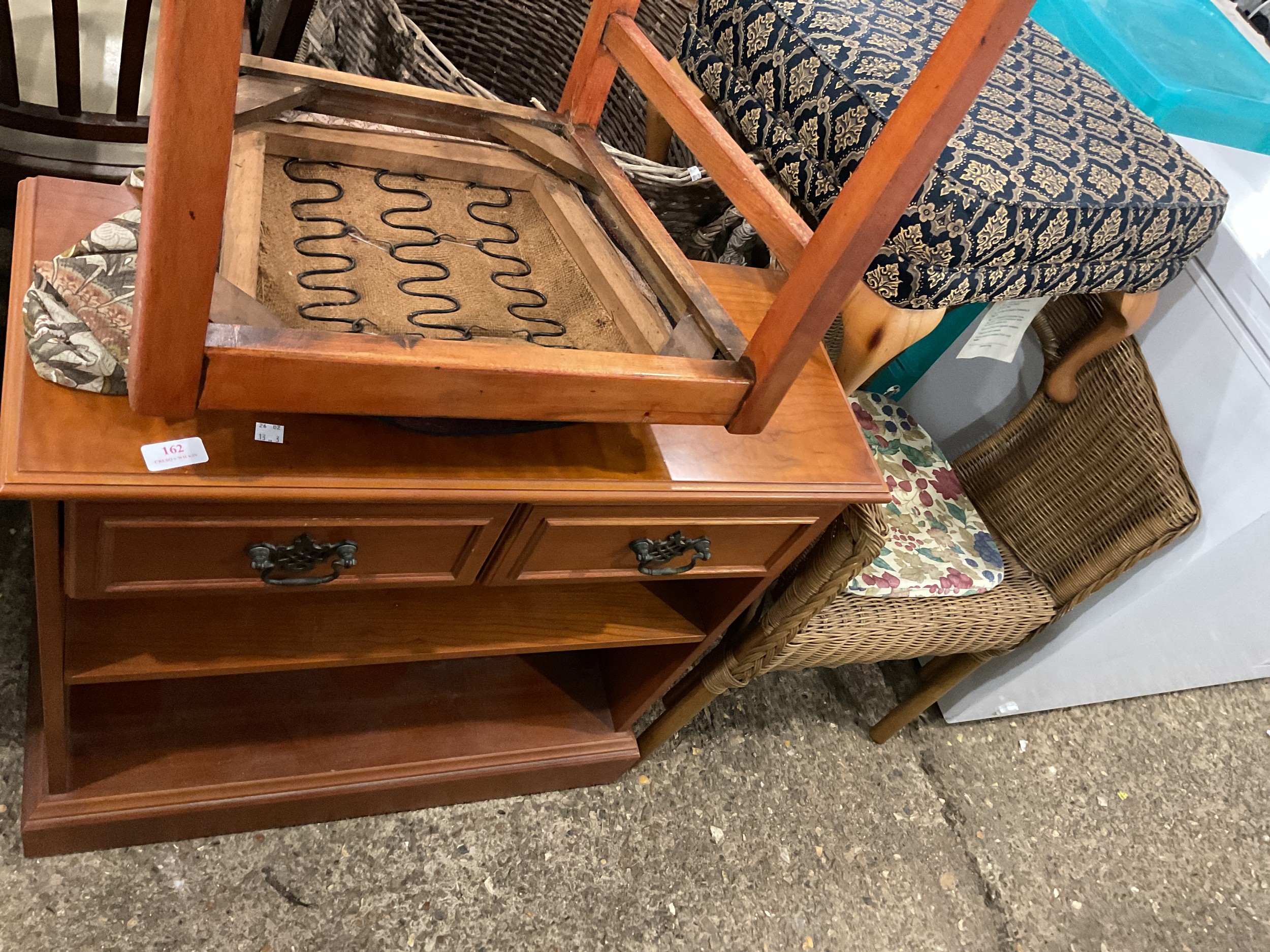 Bookcase, 2 chairs, footstool, plastic storage