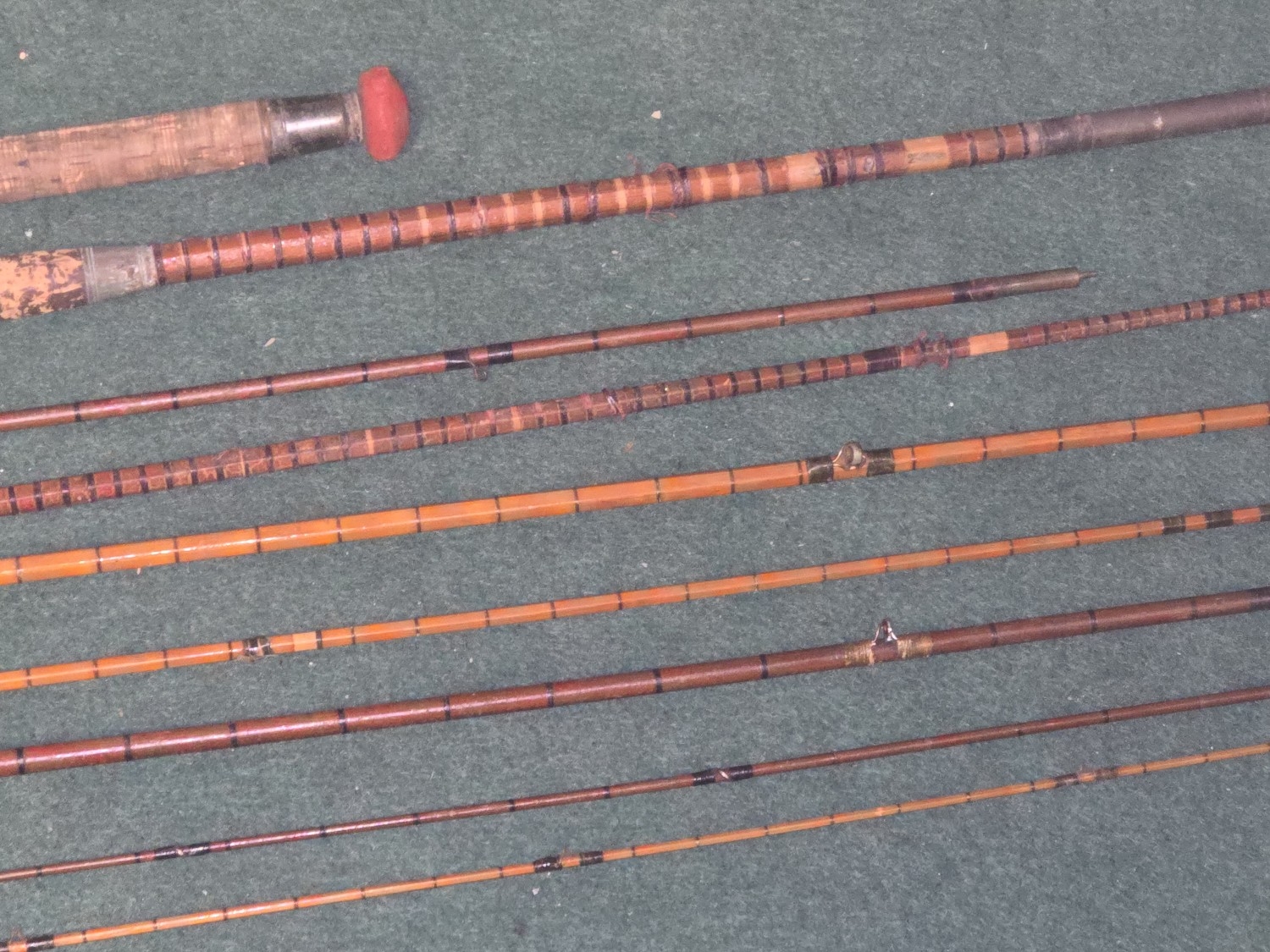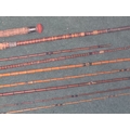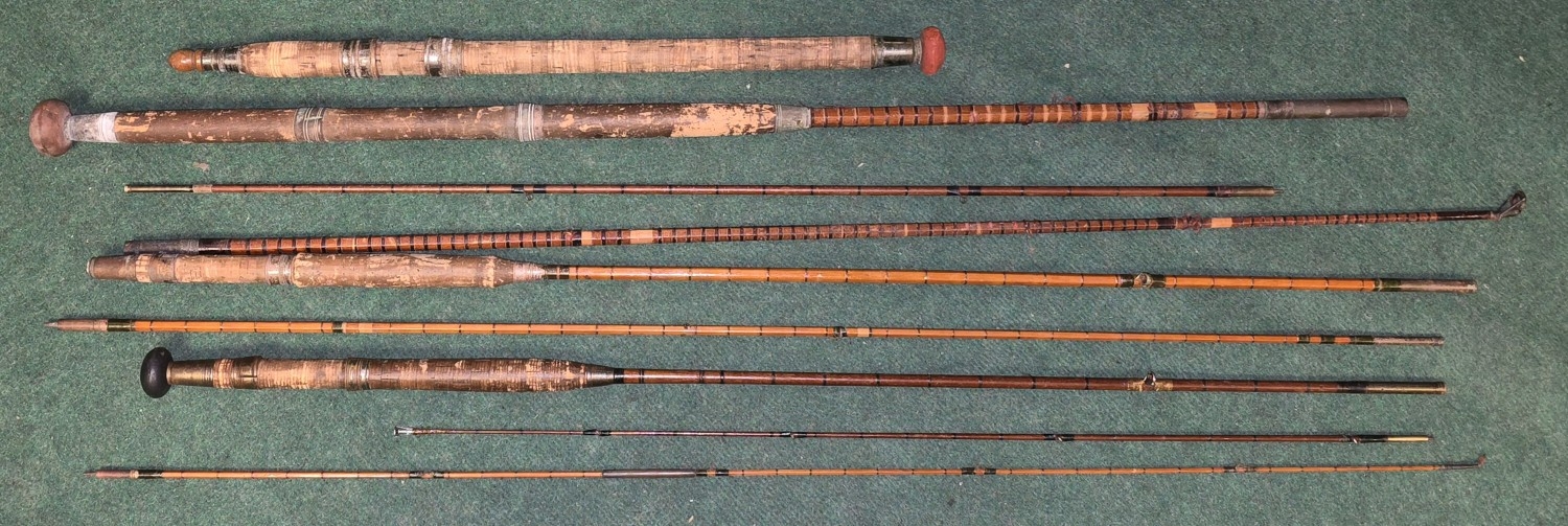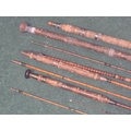 A collection of vintage/antique split cane fishing rods.