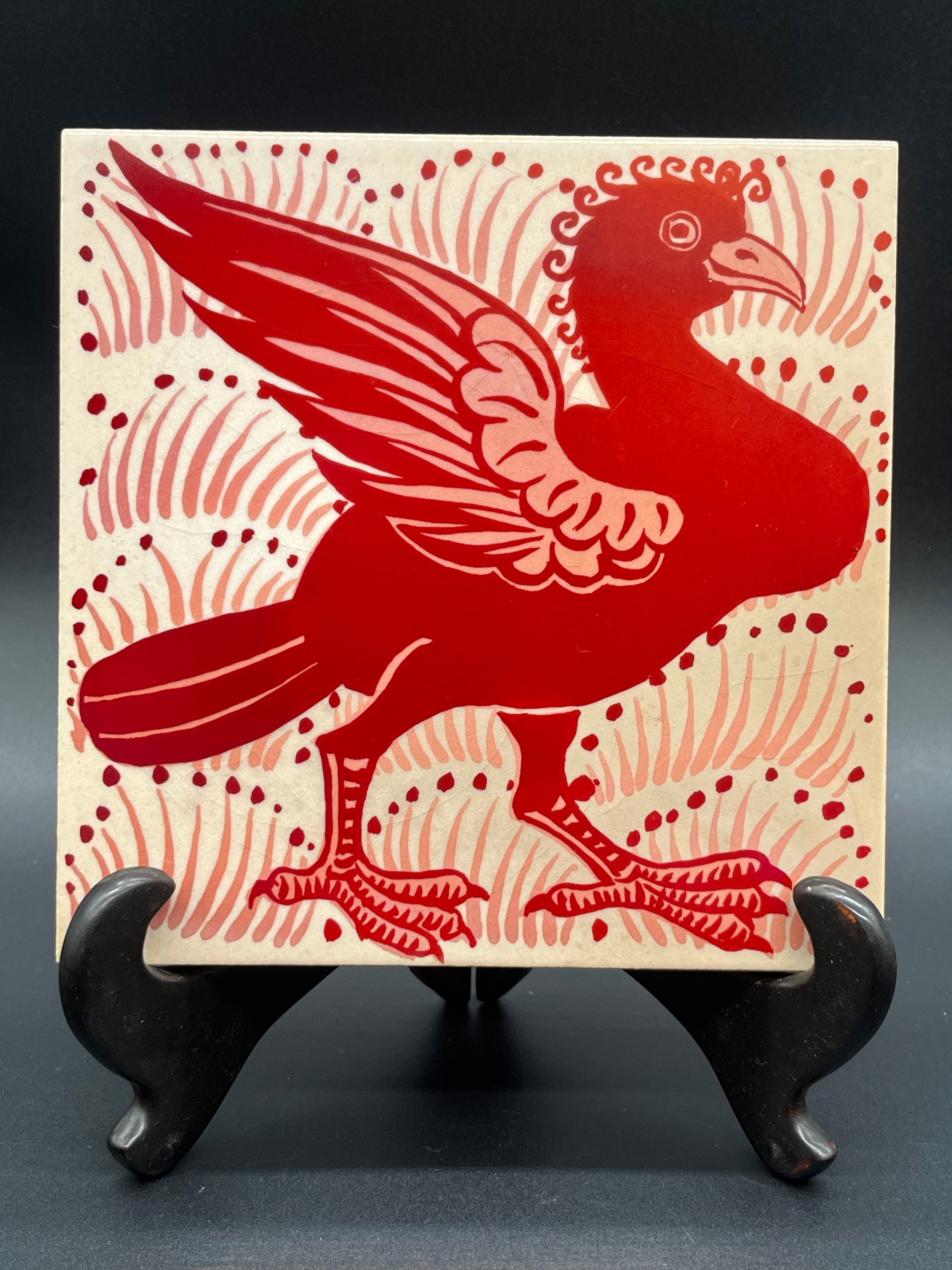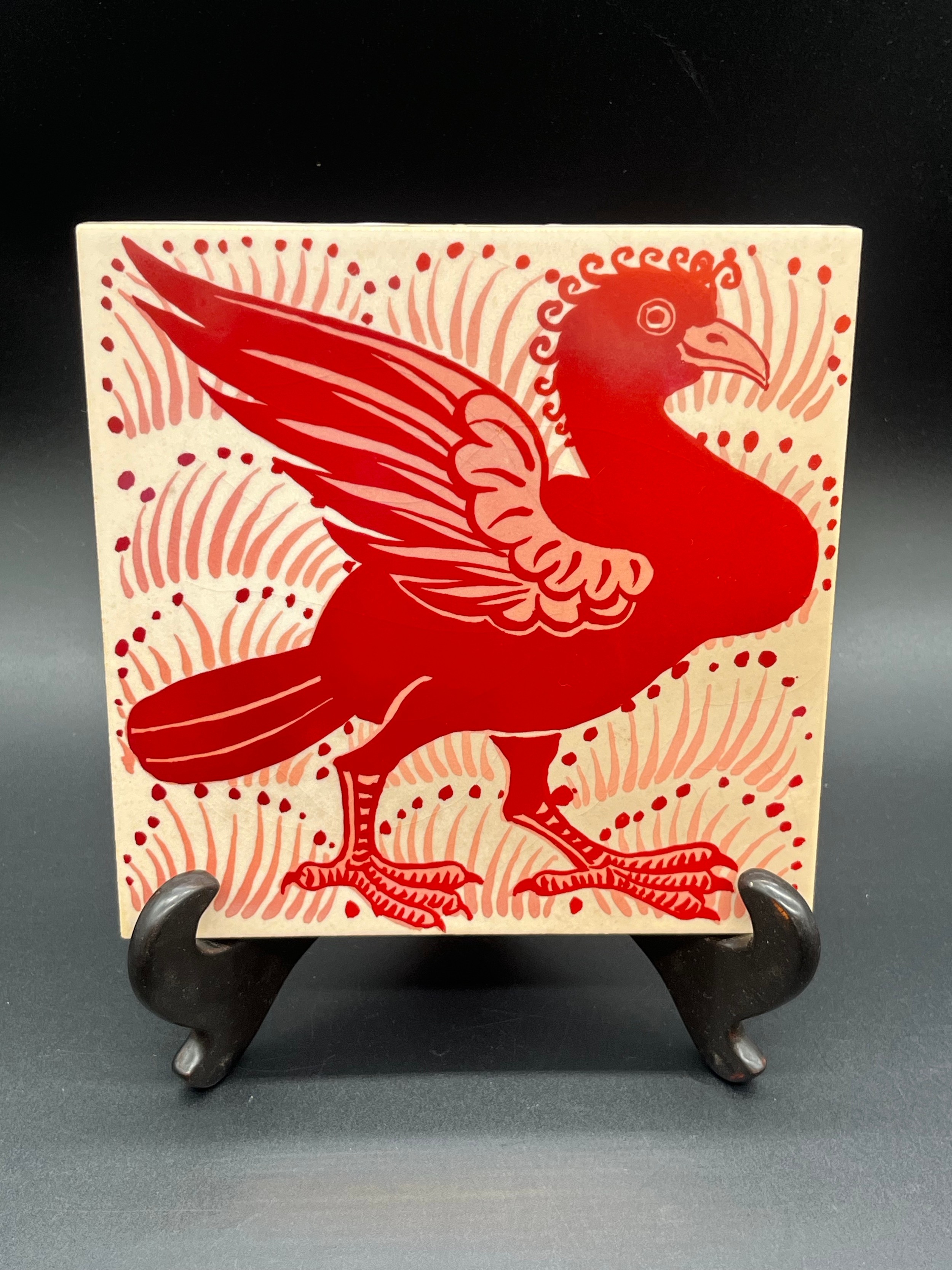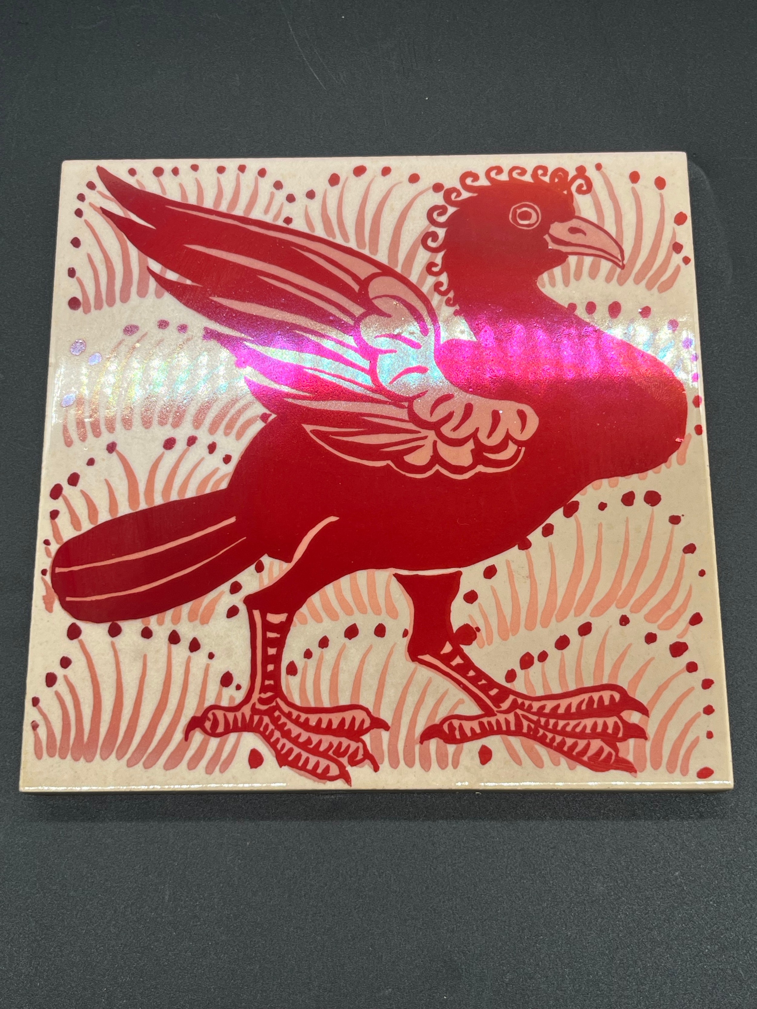 Margery Clinton red lustre Phoenix tile, made at her Templelands studio in Dunbar 6"x6"