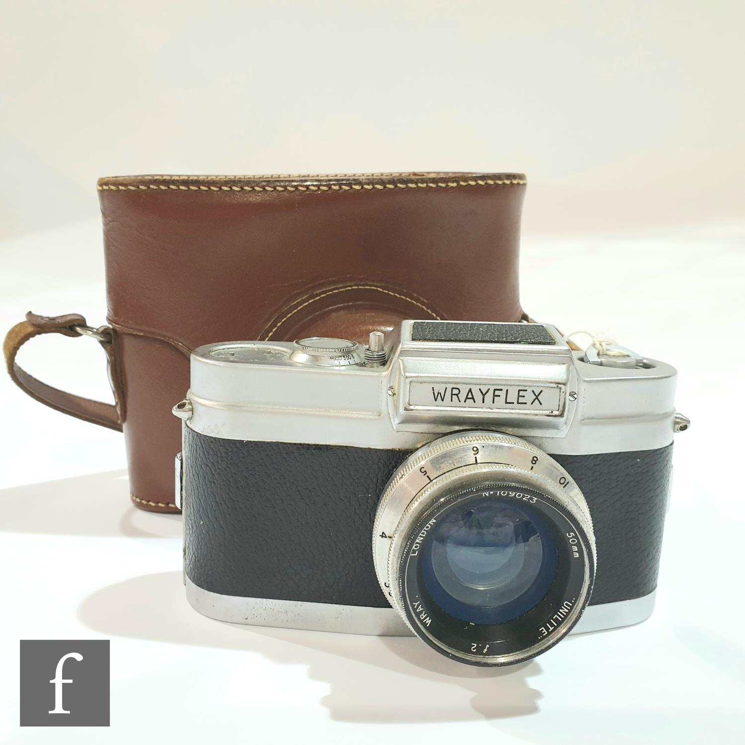 A 1950s Wray London, Wrayflex I single lens reflex camera, serial number 1829, with Unilite F:2 50mm lens, serial number 109023, with case.