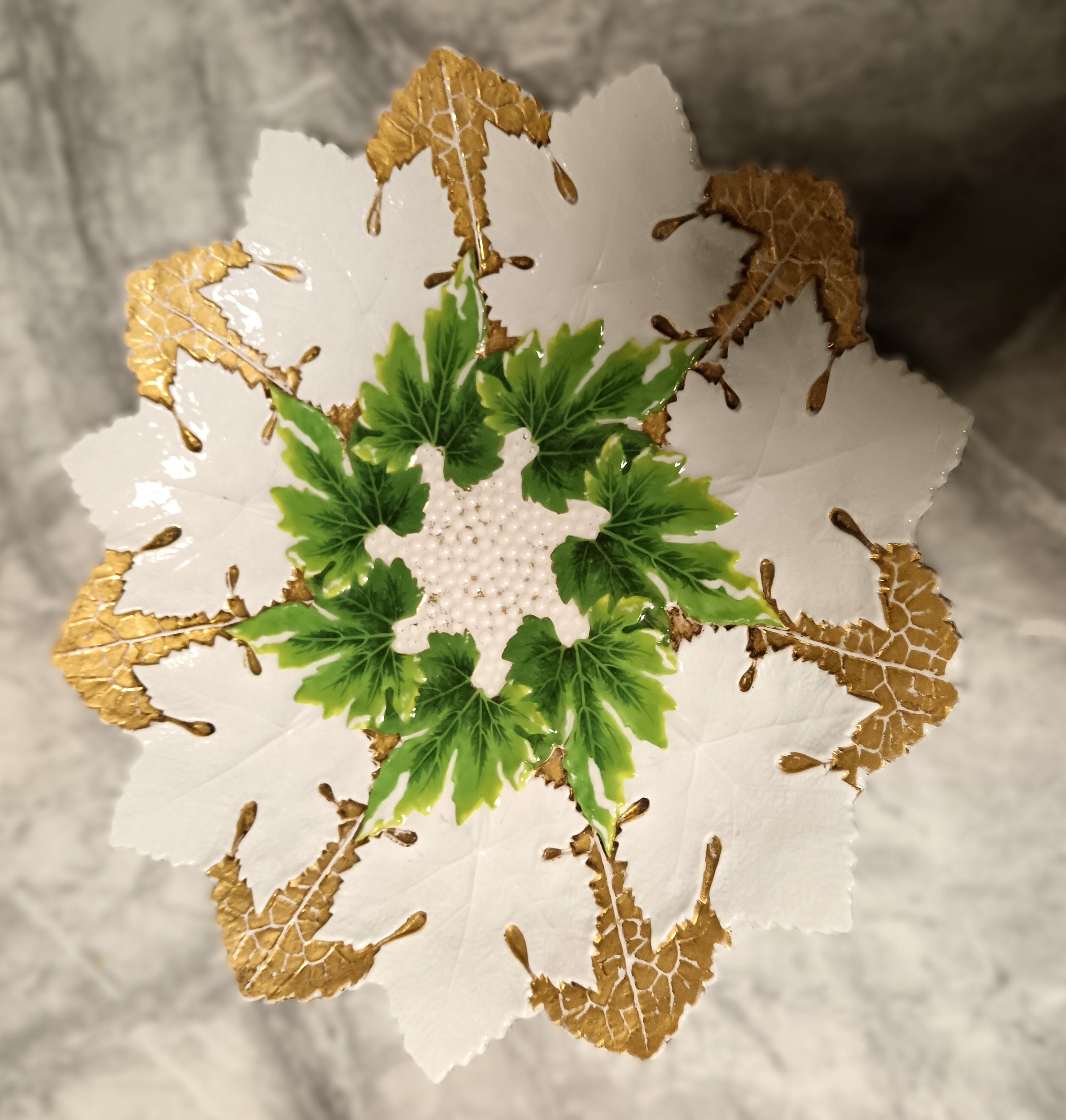 An early 20th century Meissen maple leaf plate