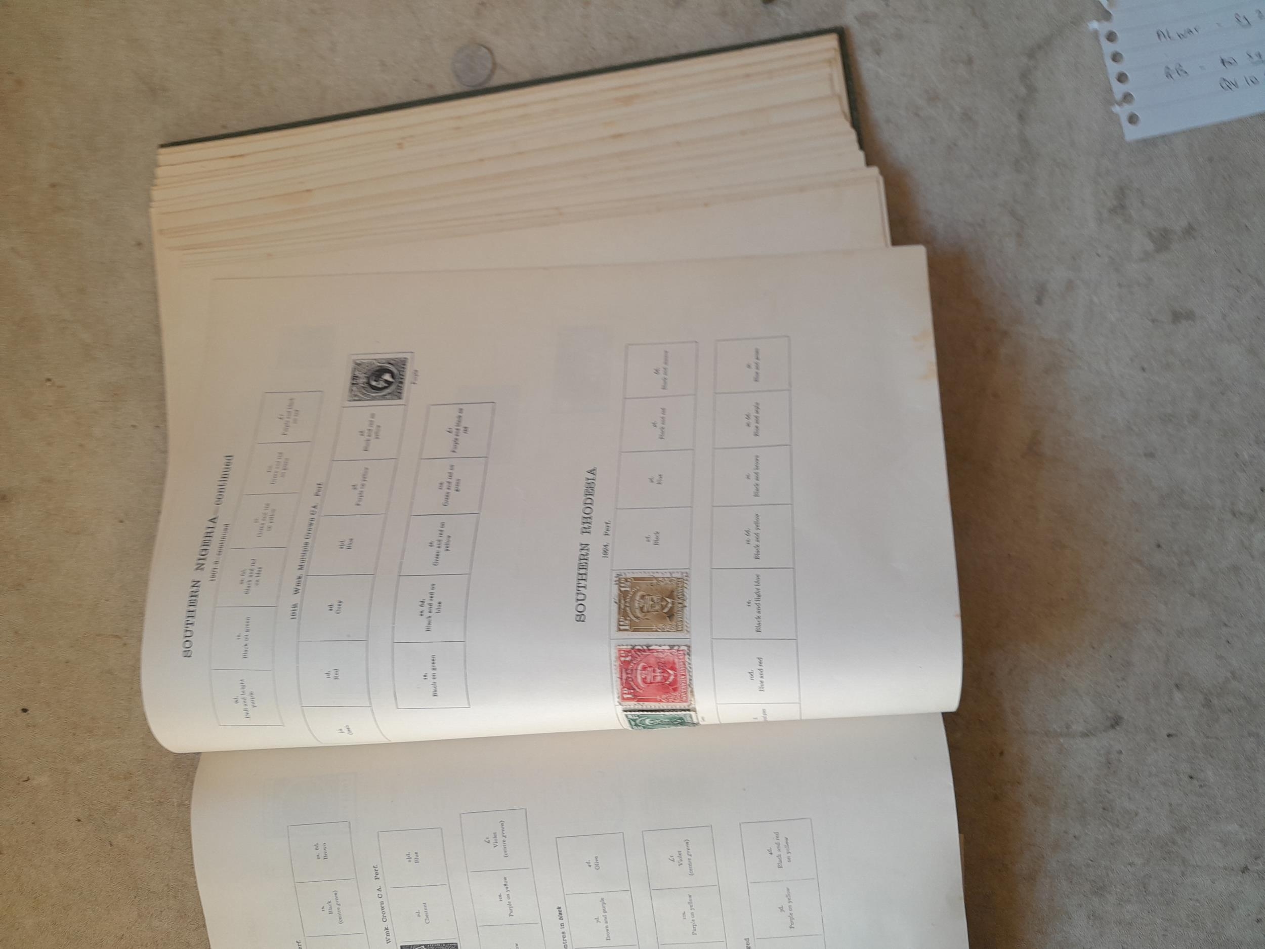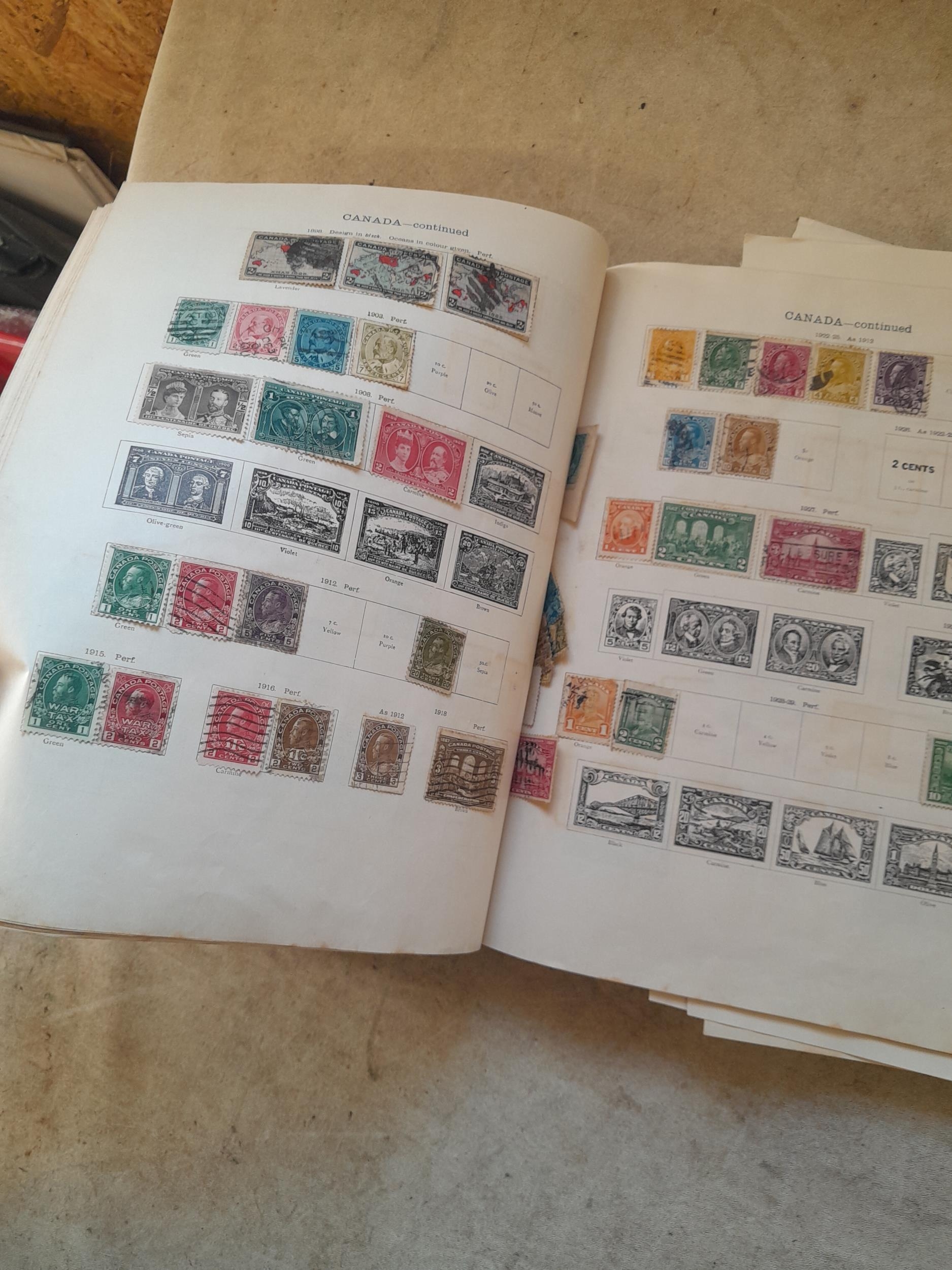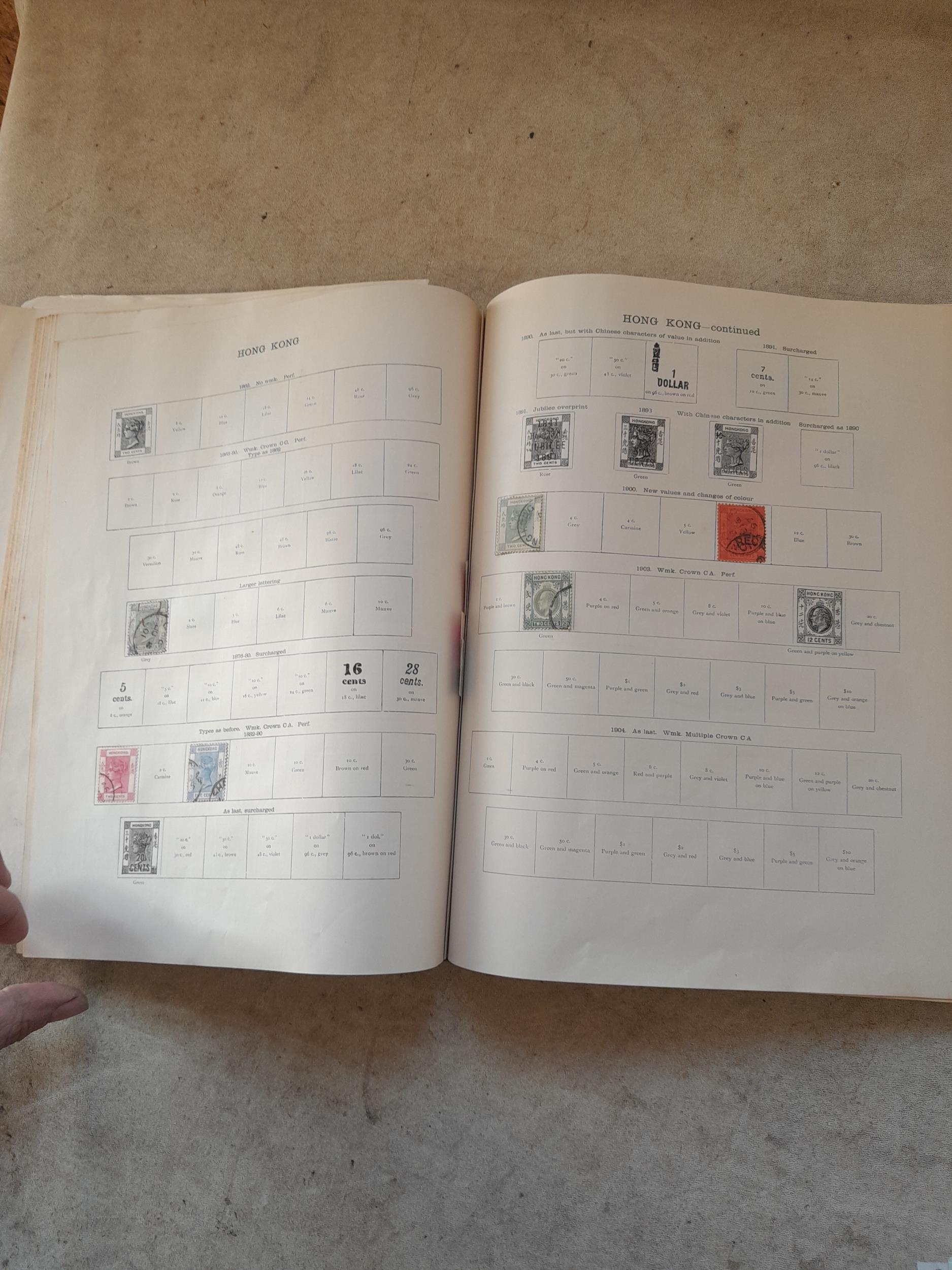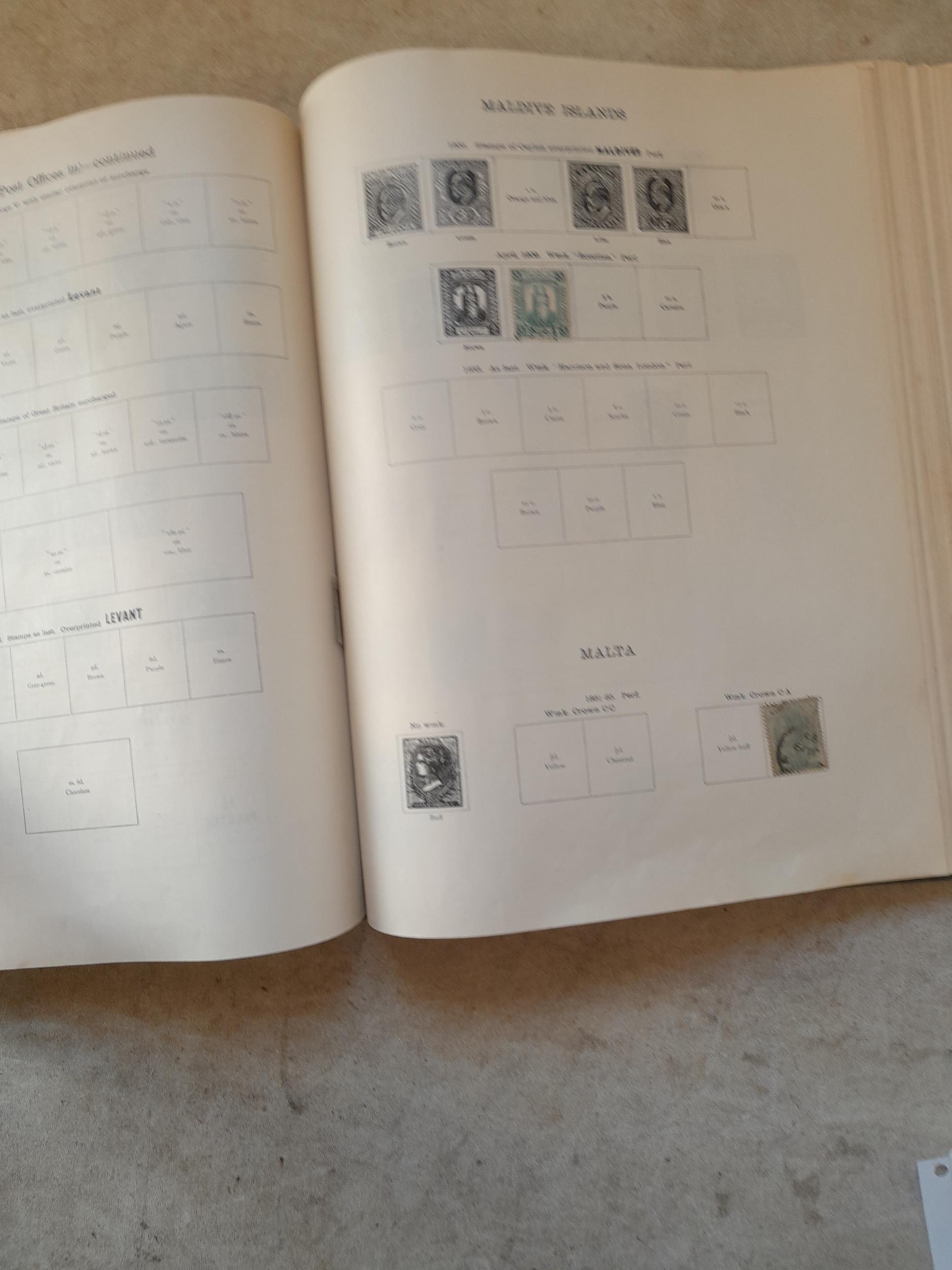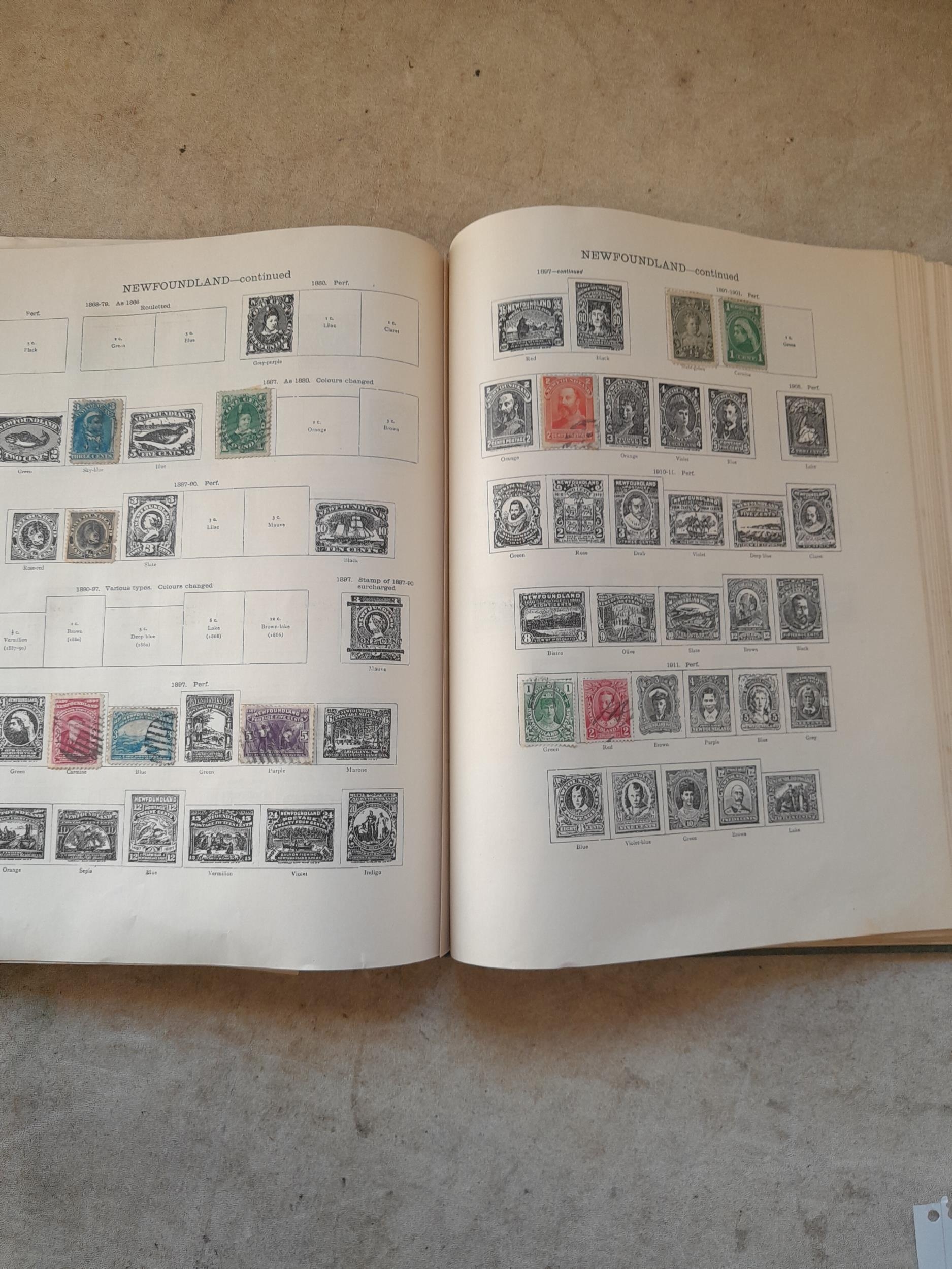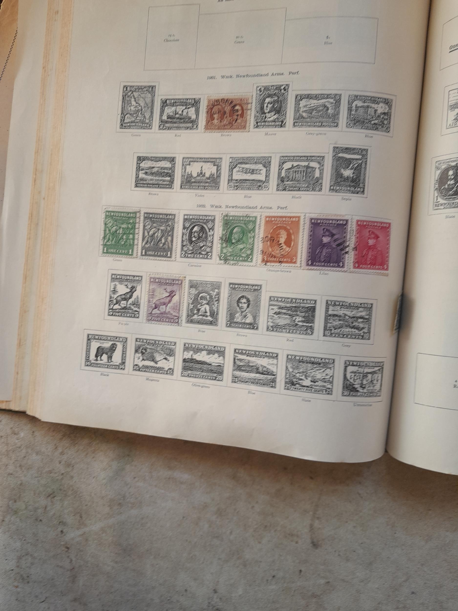 A sparsely filled Ideal Commonwealth Album. an interesting album with earlier stamps sadly let down by poor presentation and condition with some loose stamps and pages : Early Canada SG 39 & SG 60 12 1/2 C blue with faults, Cape of Good Hope Triangle with faults, interesting Fiji and Alwar, GB SG 183 with faults, trimmed and corner damage, QV 10 Shilling with Guernsey postmark , GB reds and blues, part Jubilee set, Edward VII and Seahorse