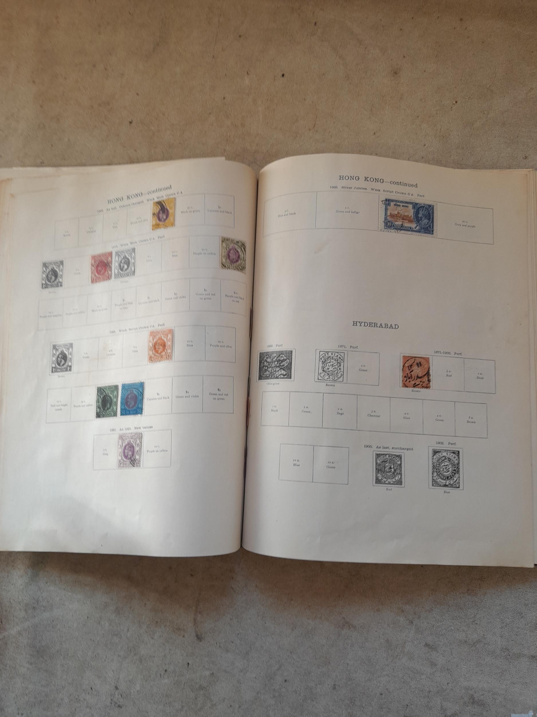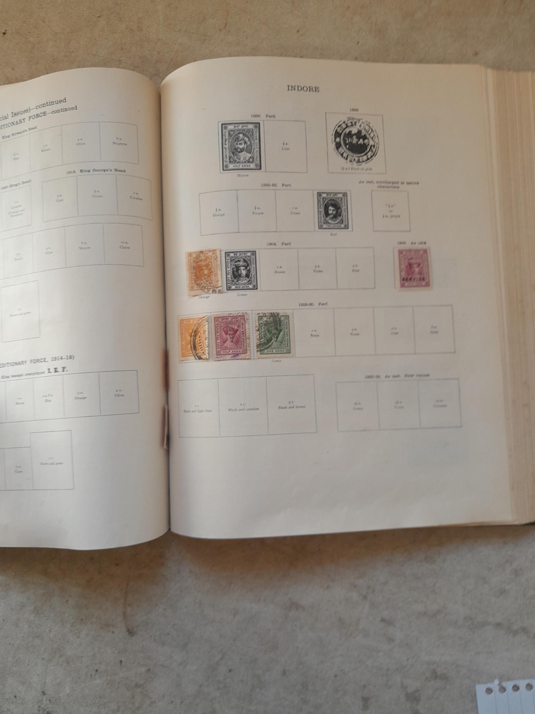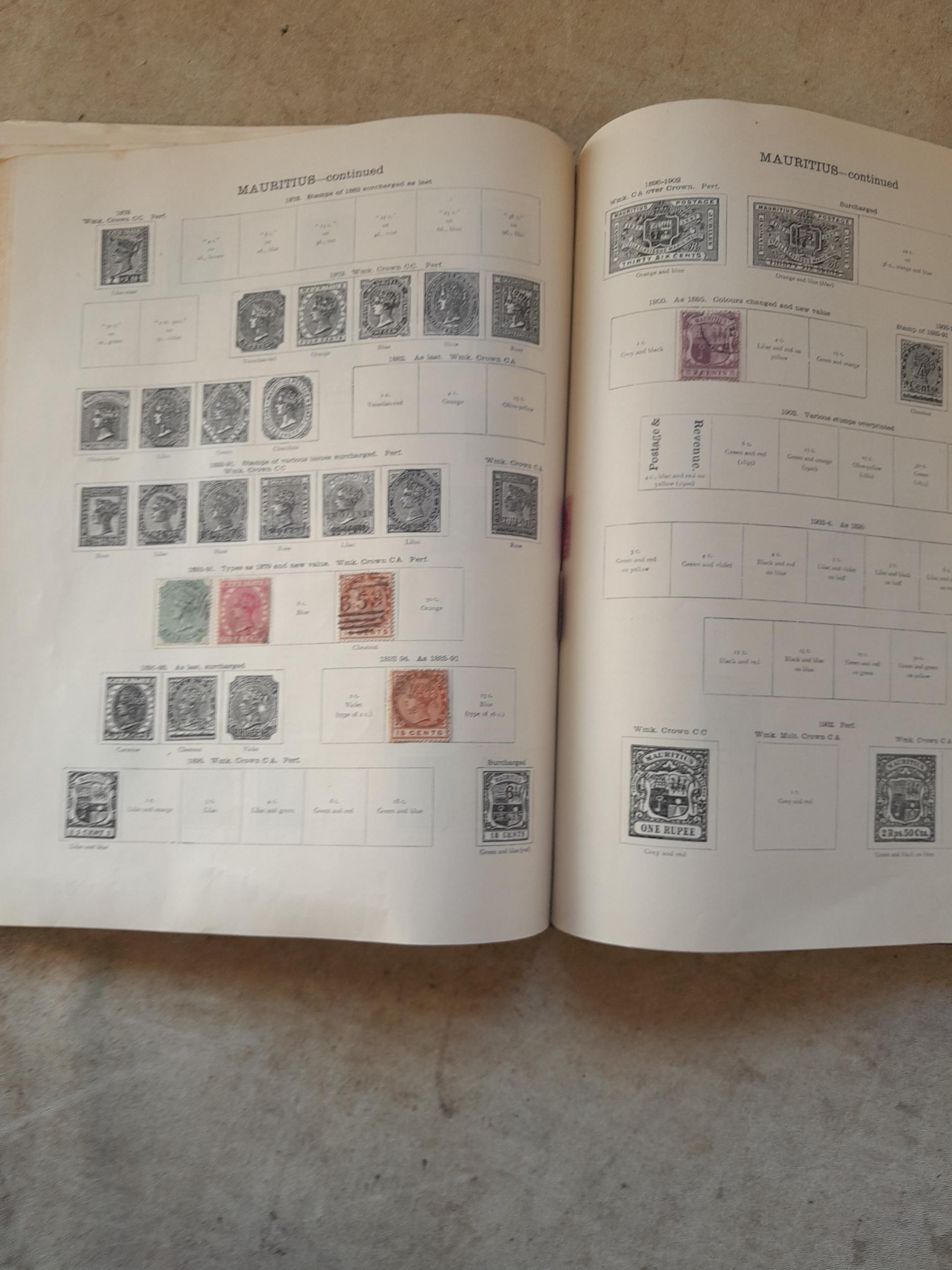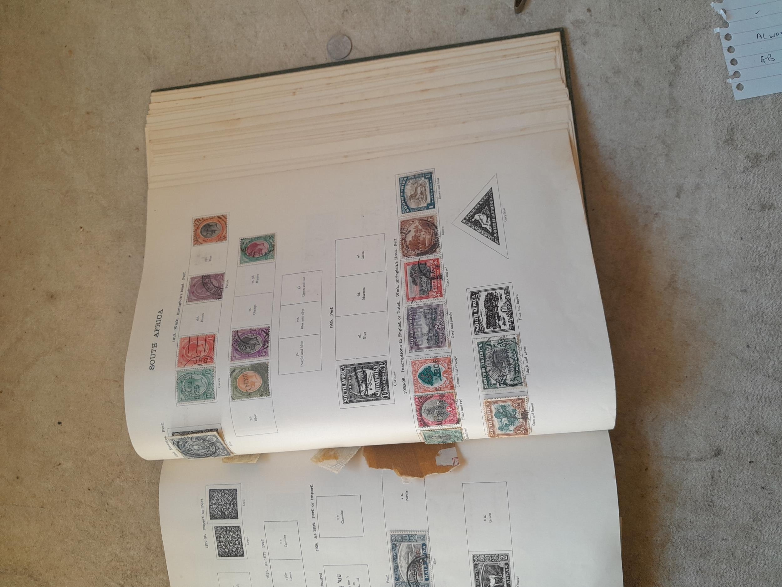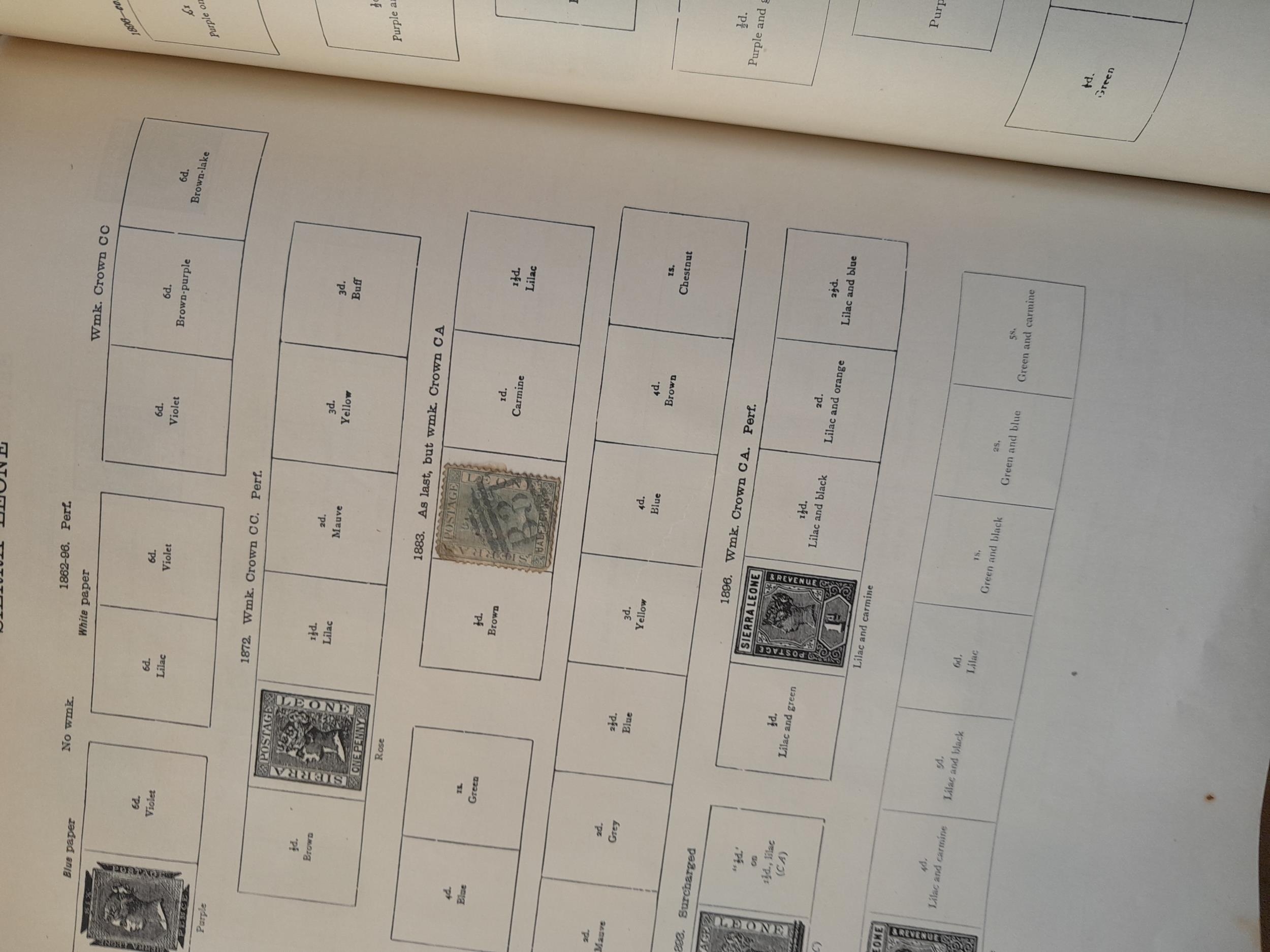A sparsely filled Ideal Commonwealth Album. an interesting album with earlier stamps sadly let down by poor presentation and condition with some loose stamps and pages : Early Canada SG 39 & SG 60 12 1/2 C blue with faults, Cape of Good Hope Triangle with faults, interesting Fiji and Alwar, GB SG 183 with faults, trimmed and corner damage, QV 10 Shilling with Guernsey postmark , GB reds and blues, part Jubilee set, Edward VII and Seahorse