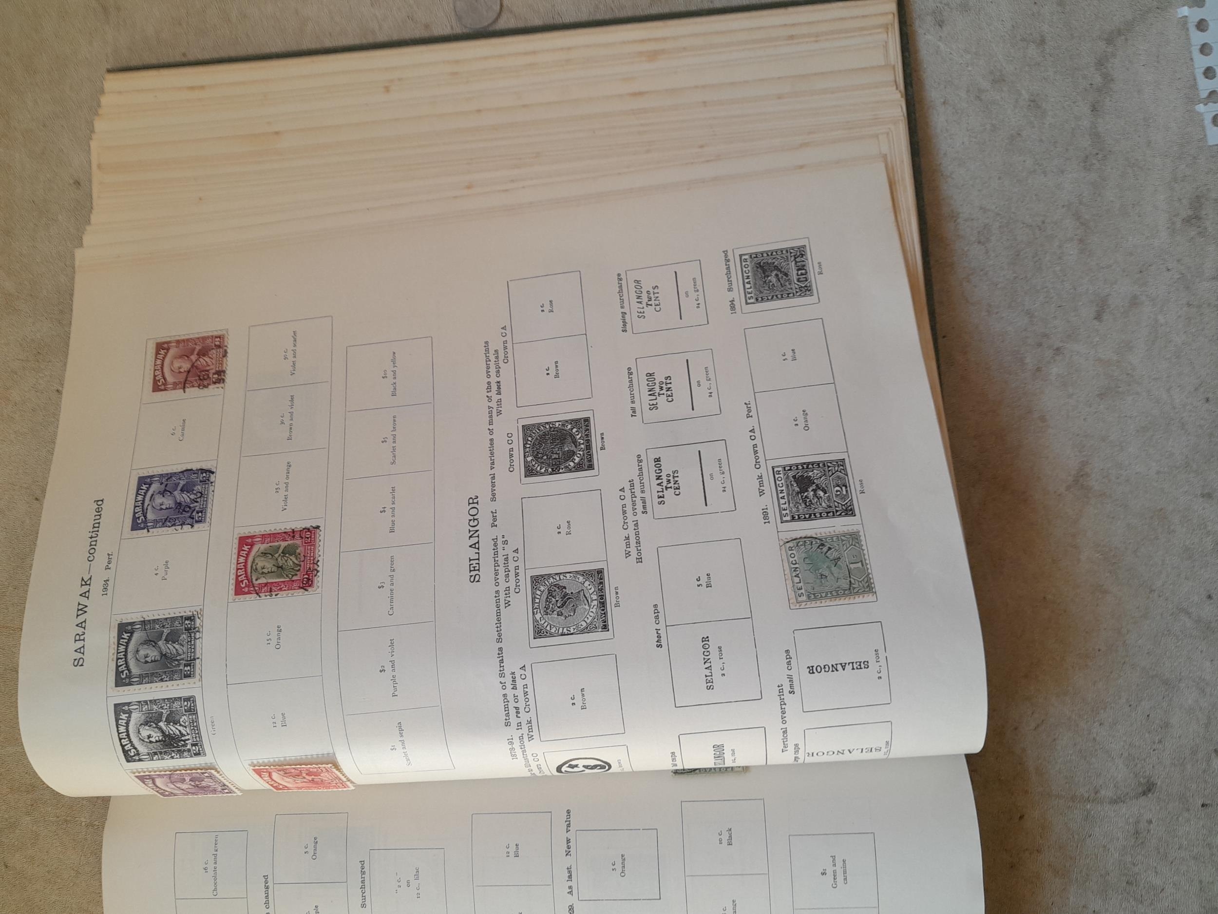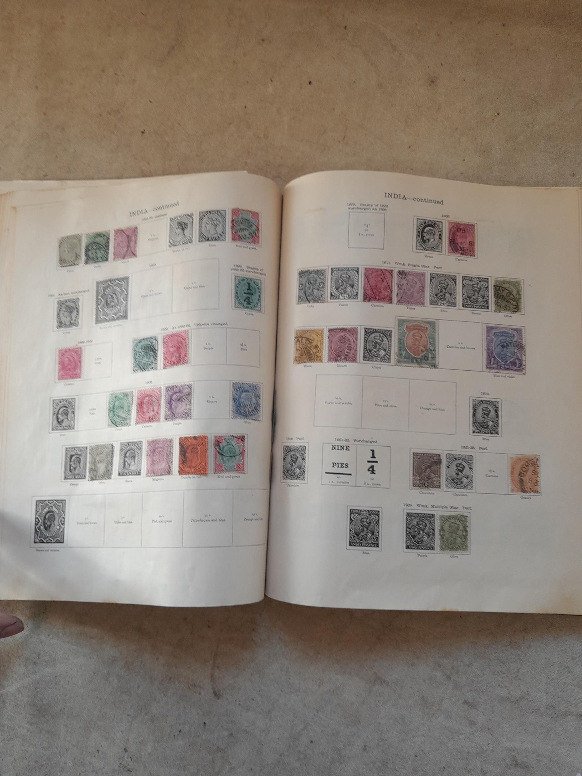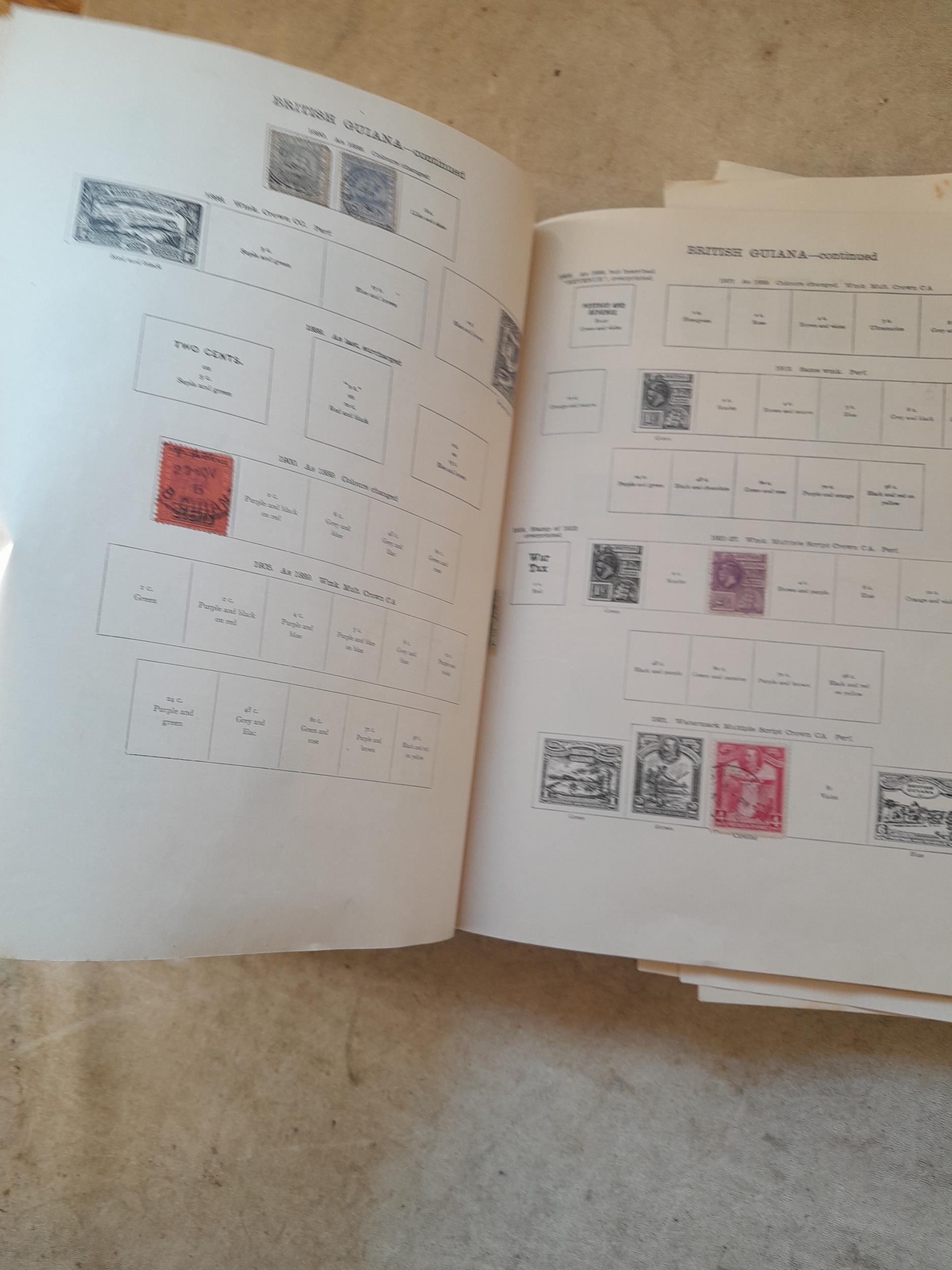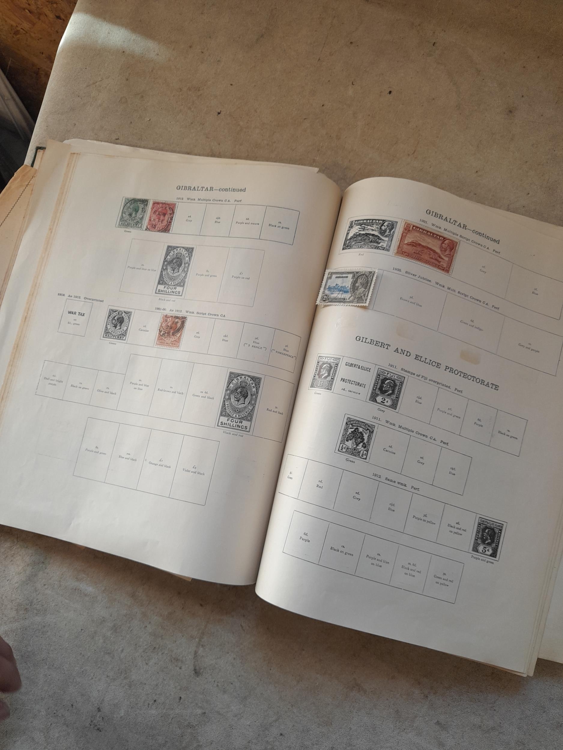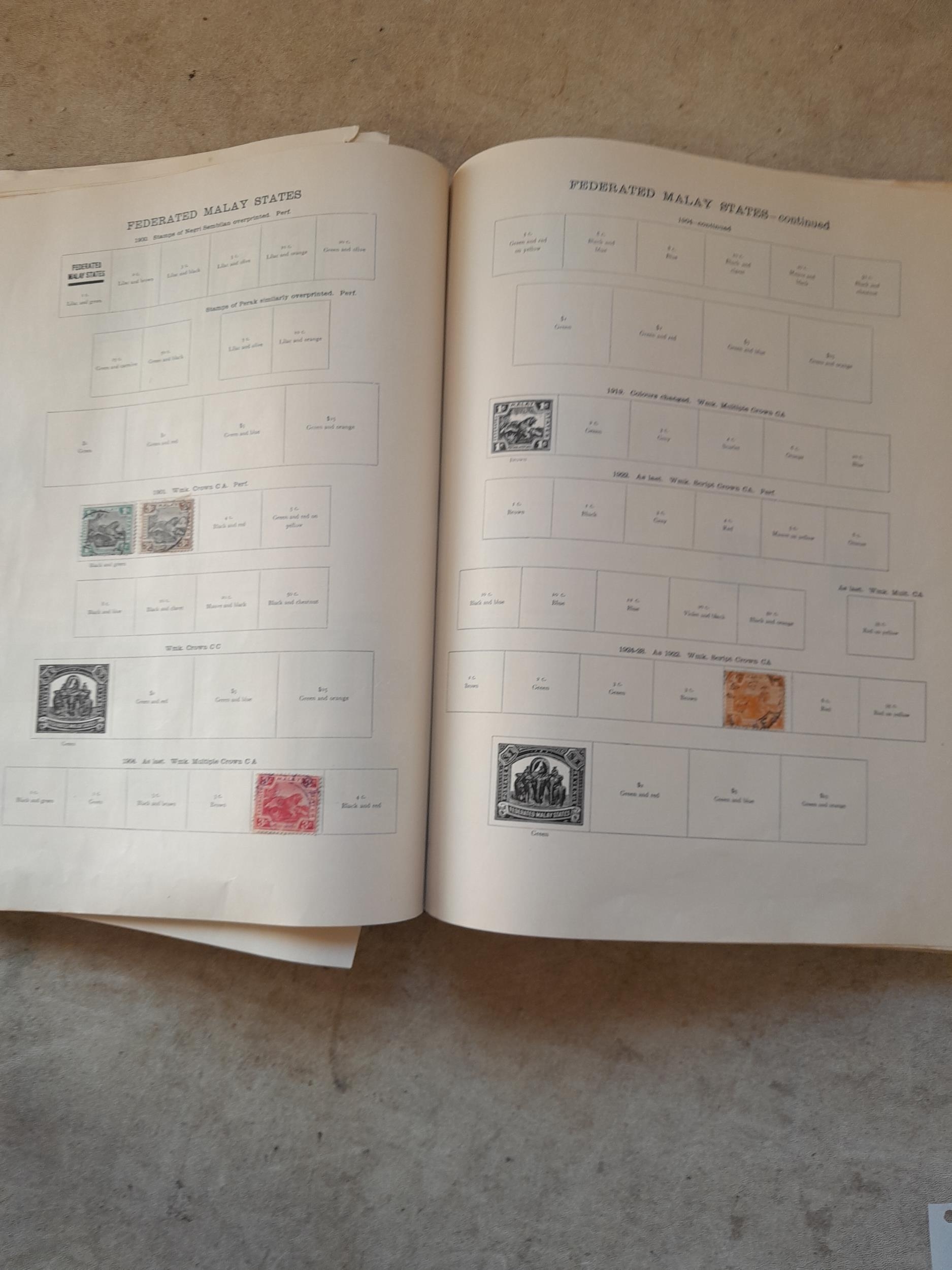 A sparsely filled Ideal Commonwealth Album. an interesting album with earlier stamps sadly let down by poor presentation and condition with some loose stamps and pages : Early Canada SG 39 & SG 60 12 1/2 C blue with faults, Cape of Good Hope Triangle with faults, interesting Fiji and Alwar, GB SG 183 with faults, trimmed and corner damage, QV 10 Shilling with Guernsey postmark , GB reds and blues, part Jubilee set, Edward VII and Seahorse