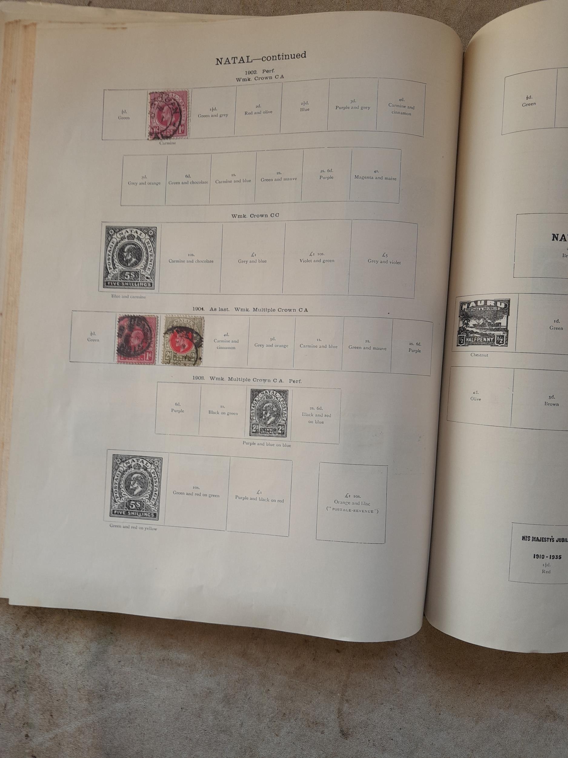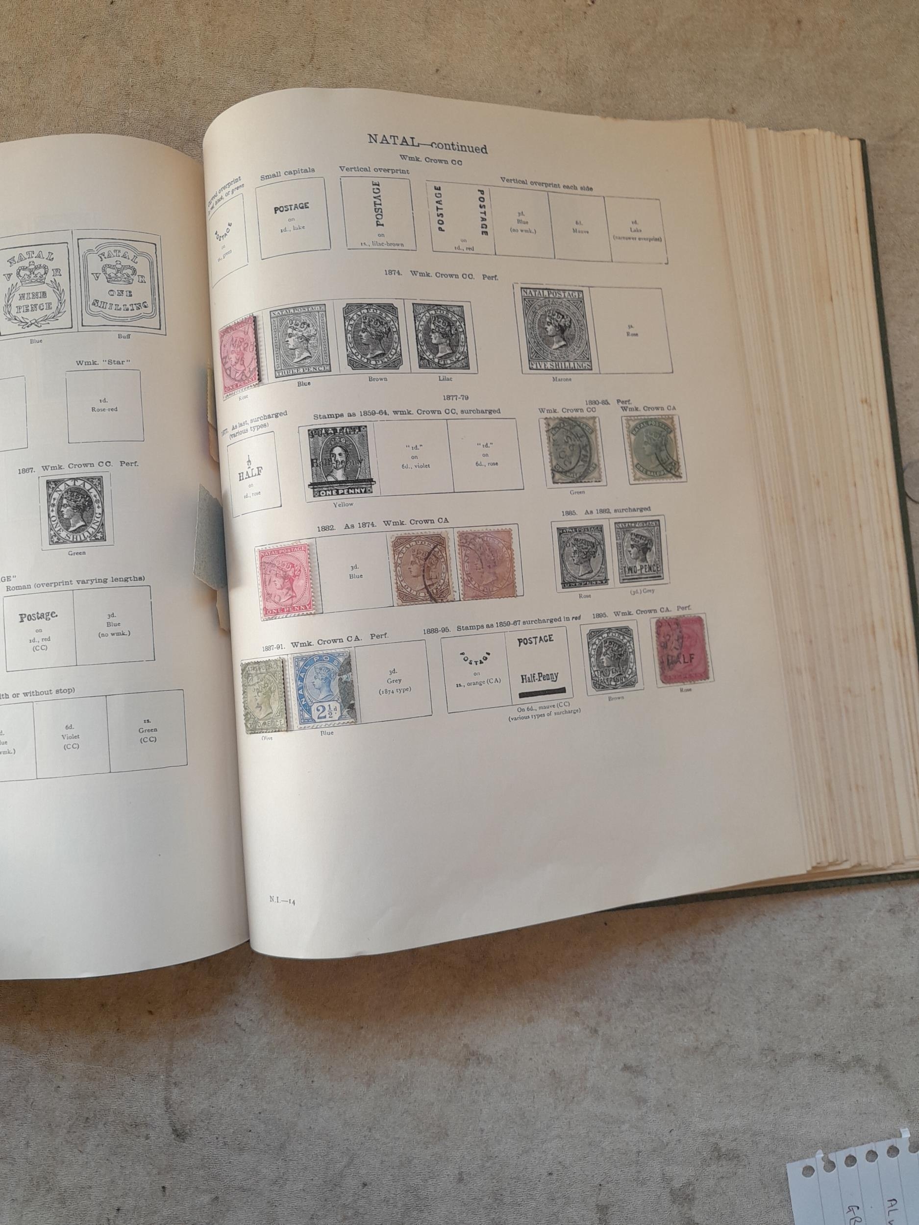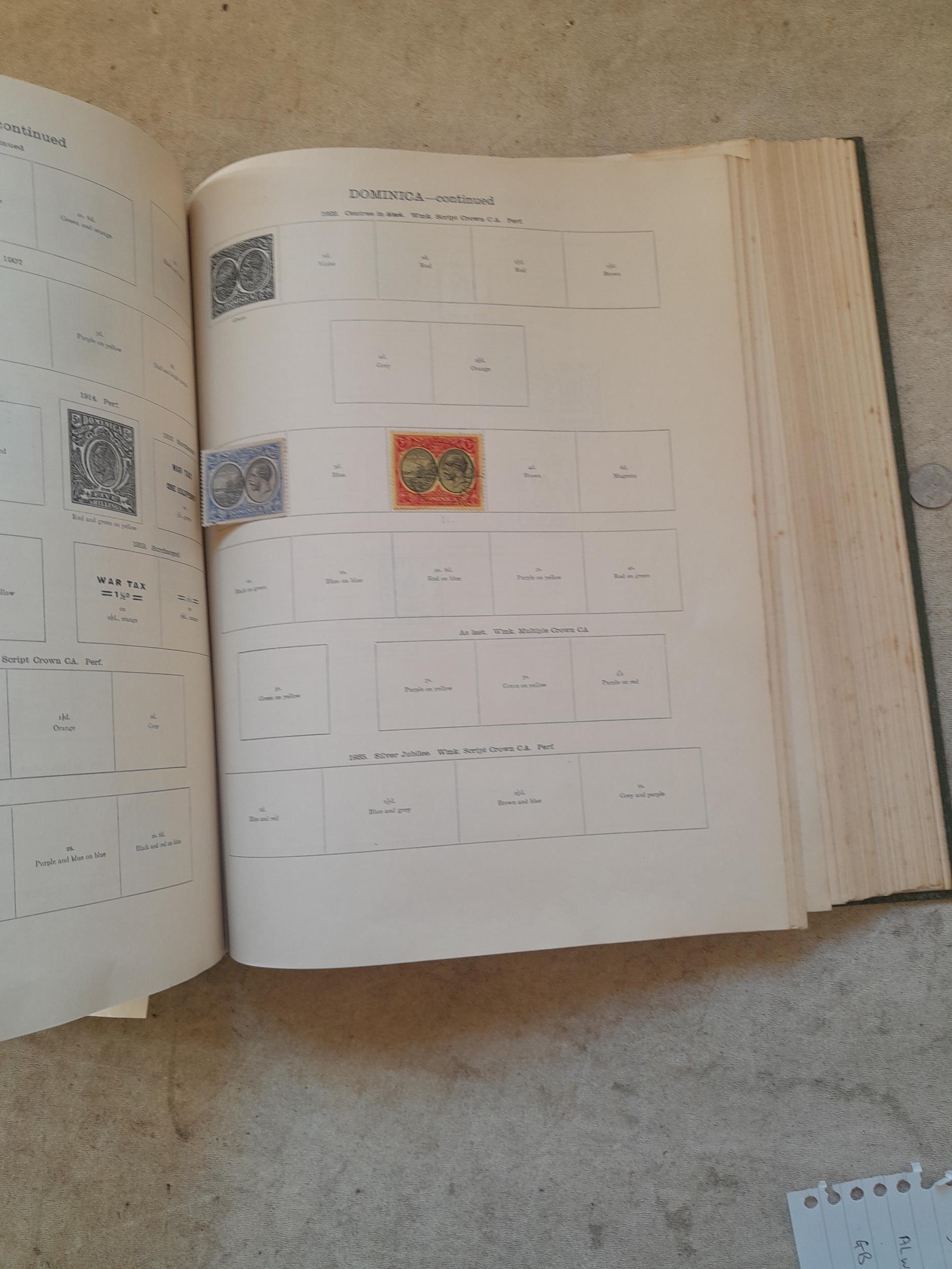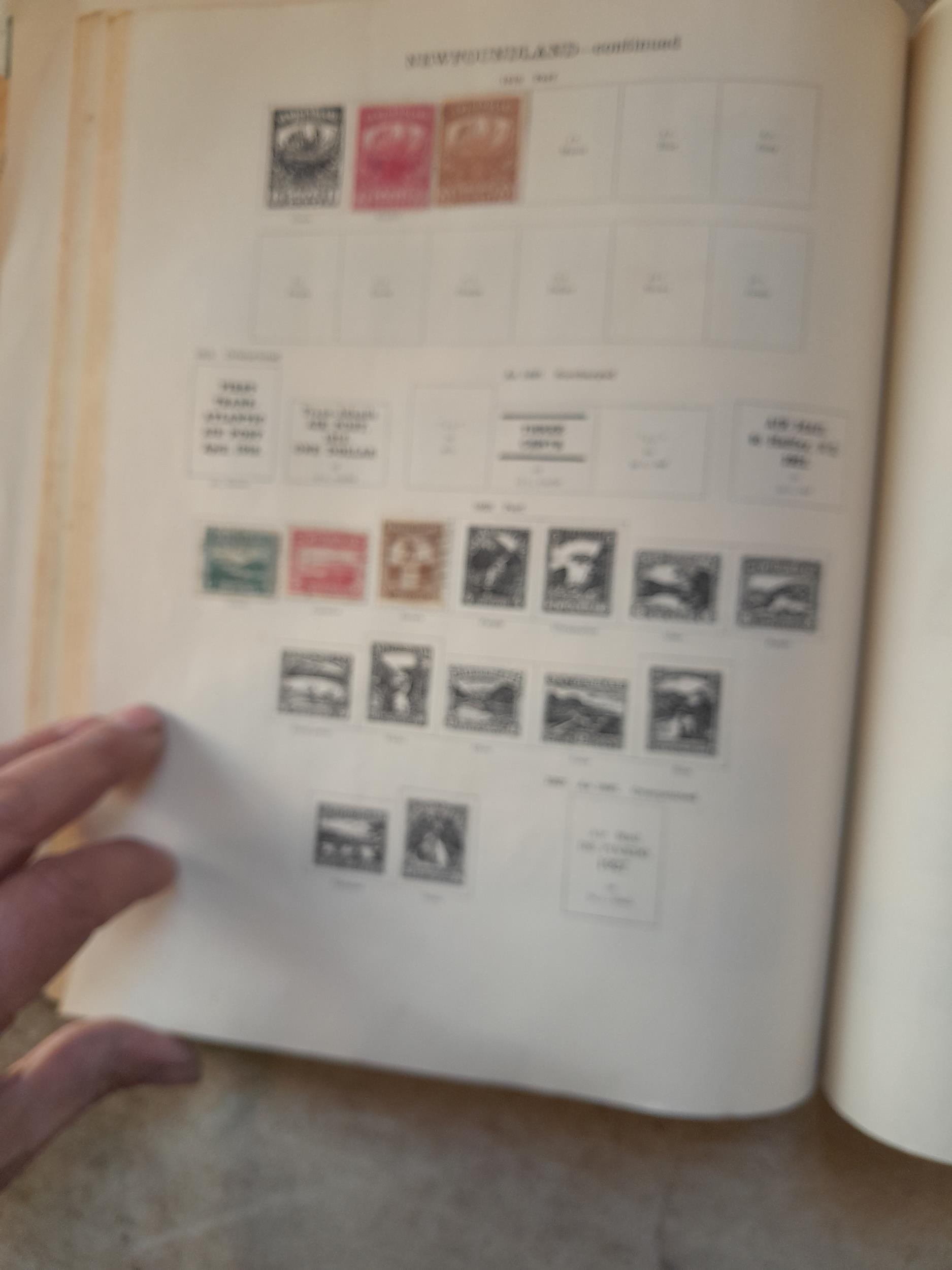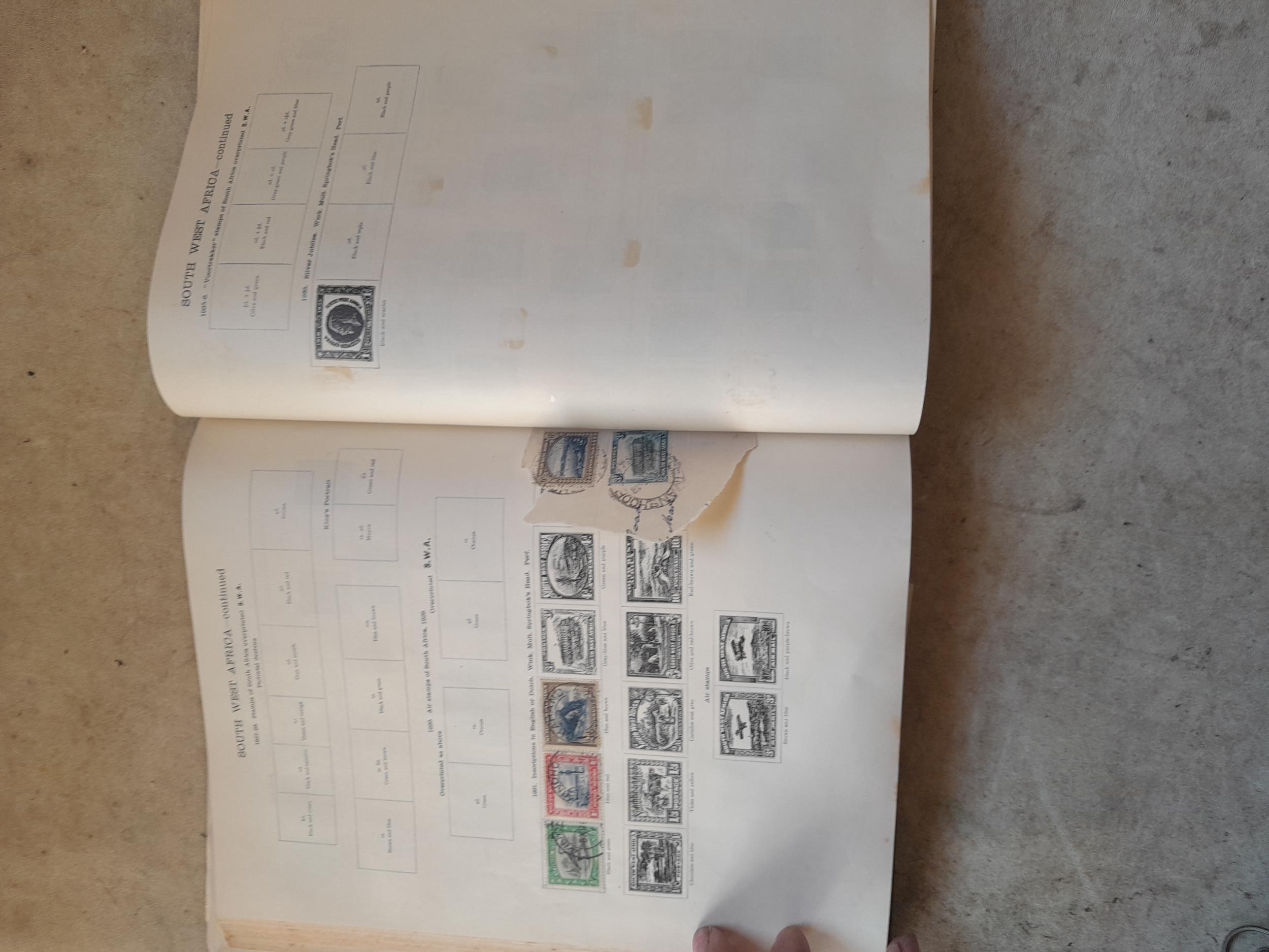 A sparsely filled Ideal Commonwealth Album. an interesting album with earlier stamps sadly let down by poor presentation and condition with some loose stamps and pages : Early Canada SG 39 & SG 60 12 1/2 C blue with faults, Cape of Good Hope Triangle with faults, interesting Fiji and Alwar, GB SG 183 with faults, trimmed and corner damage, QV 10 Shilling with Guernsey postmark , GB reds and blues, part Jubilee set, Edward VII and Seahorse