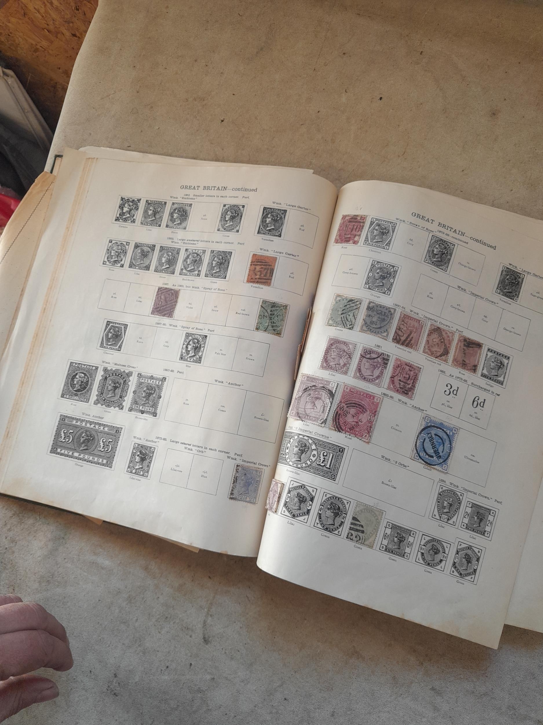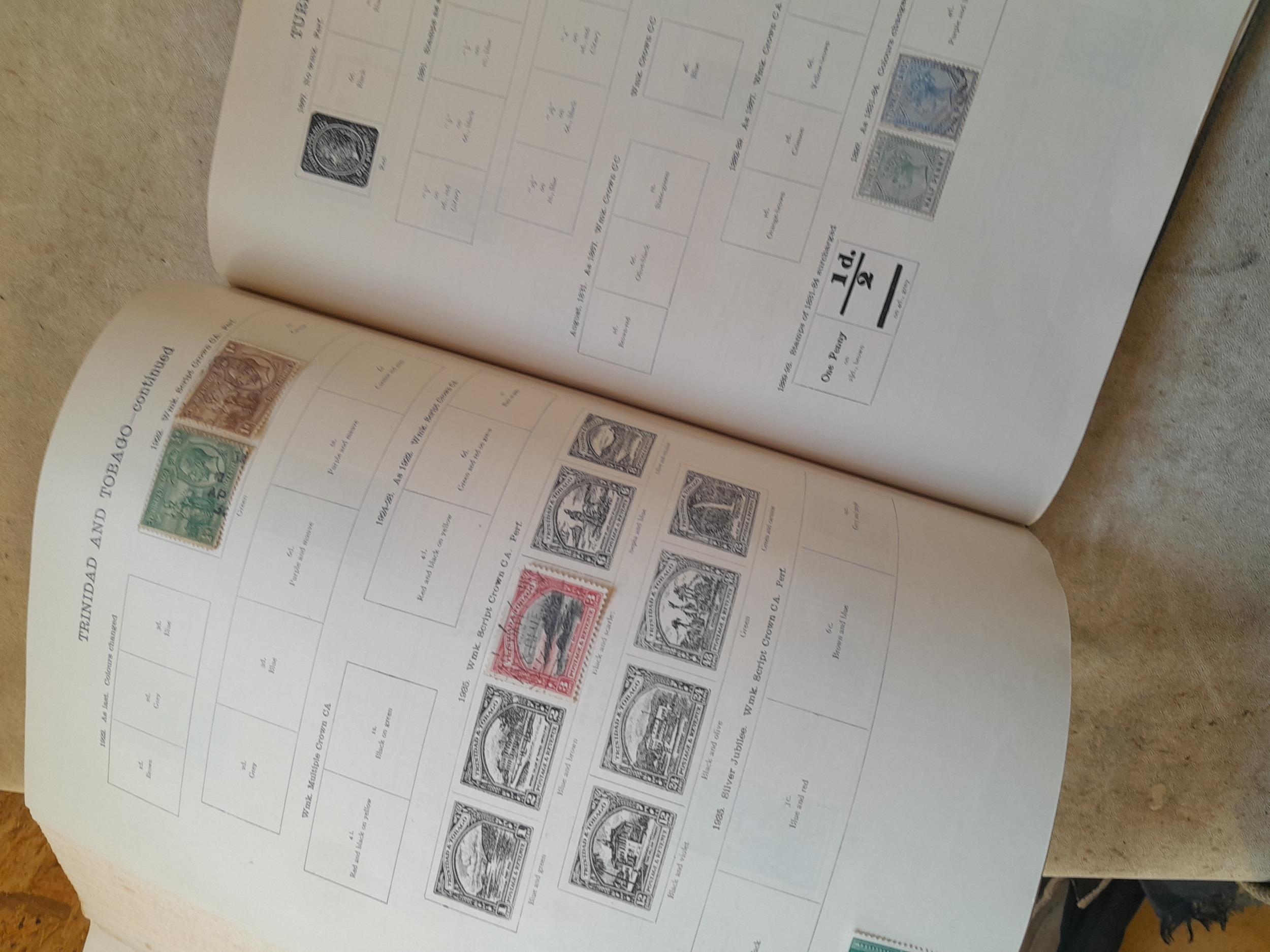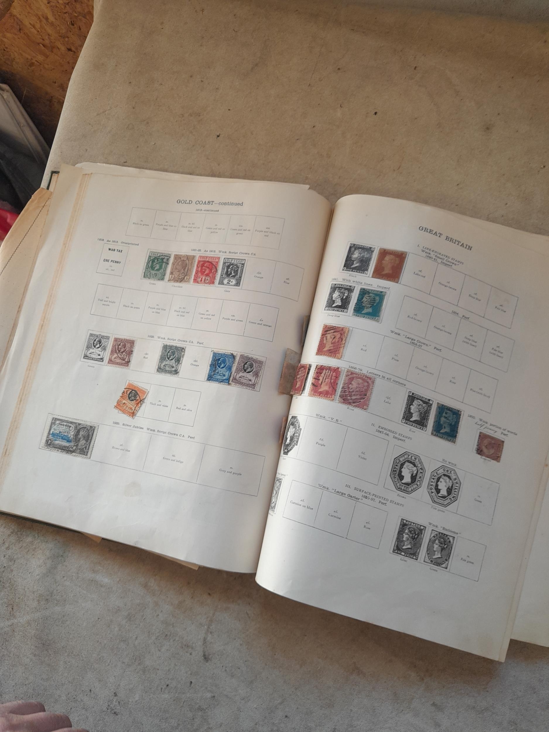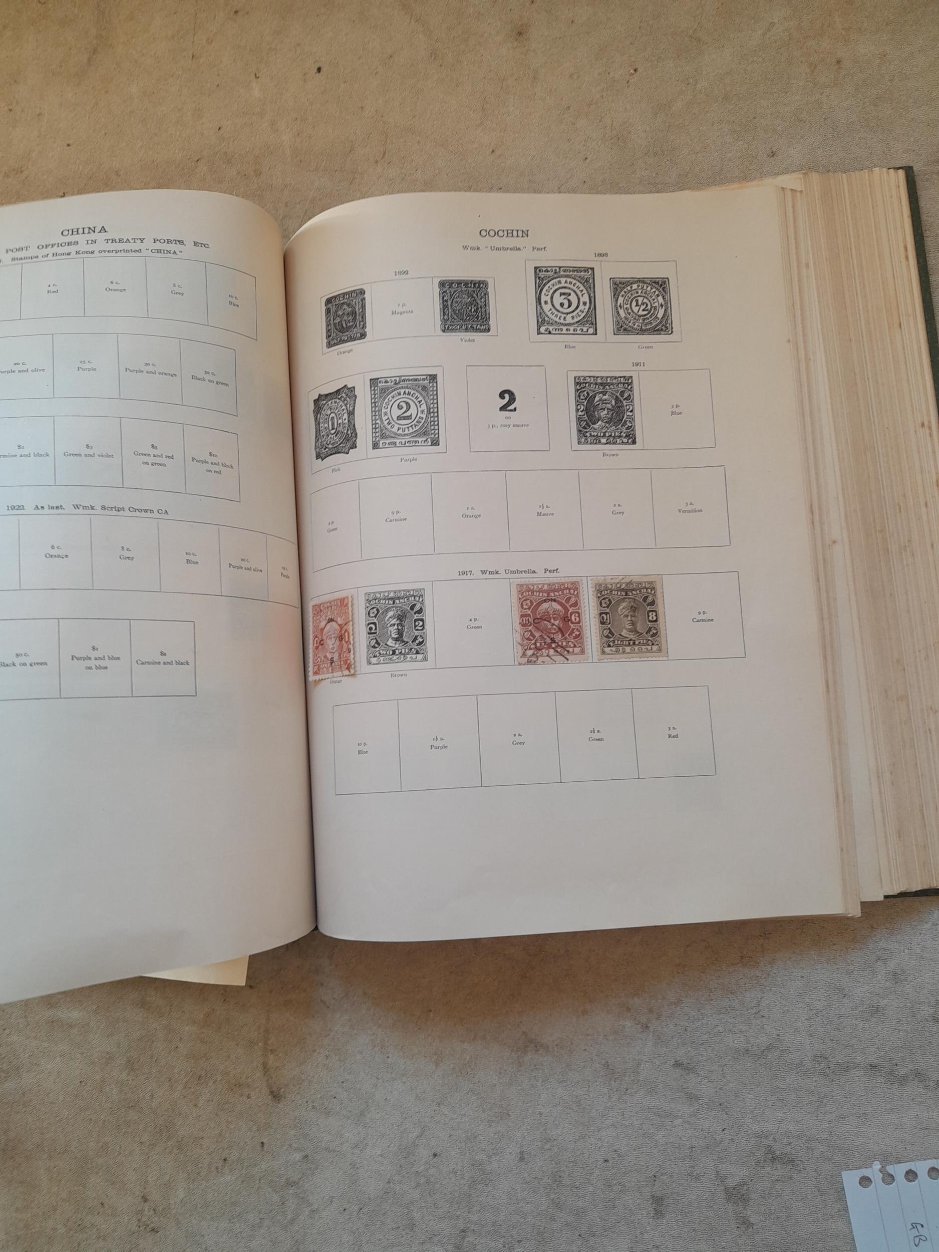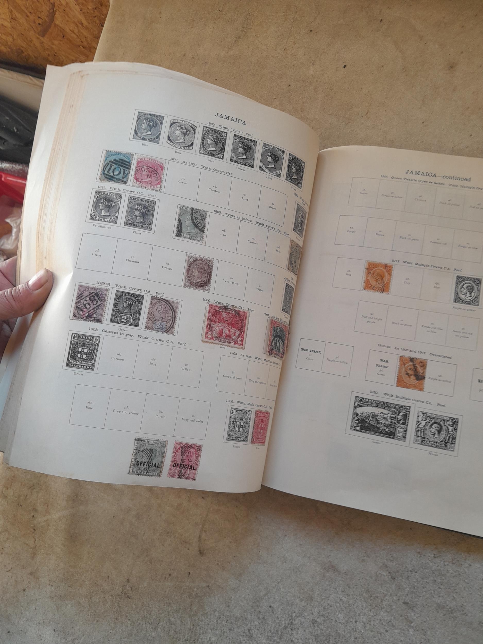 A sparsely filled Ideal Commonwealth Album. an interesting album with earlier stamps sadly let down by poor presentation and condition with some loose stamps and pages : Early Canada SG 39 & SG 60 12 1/2 C blue with faults, Cape of Good Hope Triangle with faults, interesting Fiji and Alwar, GB SG 183 with faults, trimmed and corner damage, QV 10 Shilling with Guernsey postmark , GB reds and blues, part Jubilee set, Edward VII and Seahorse
