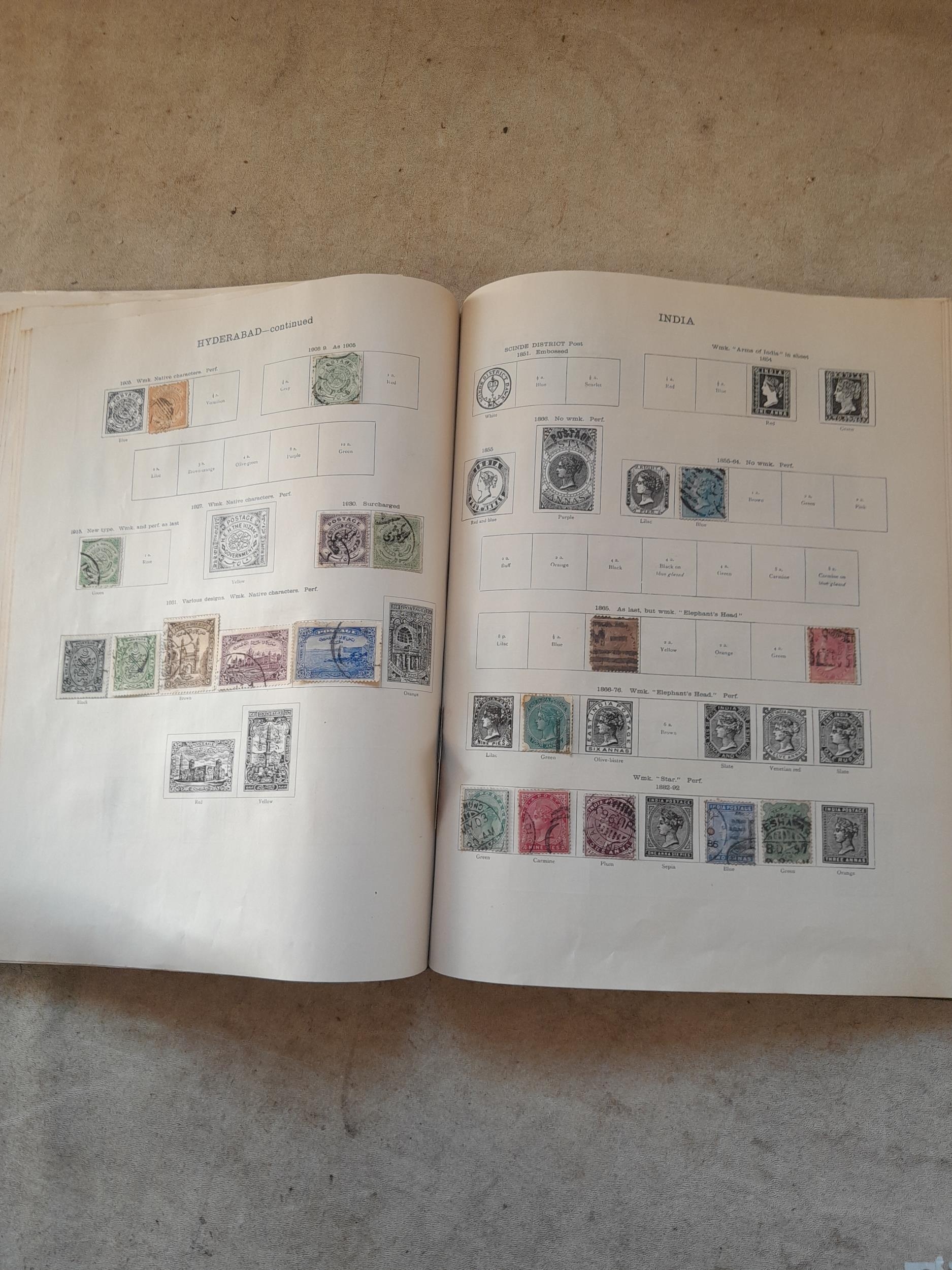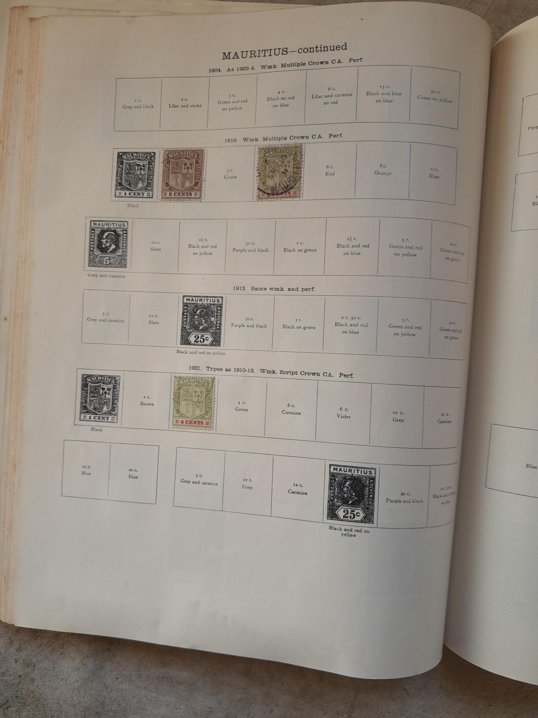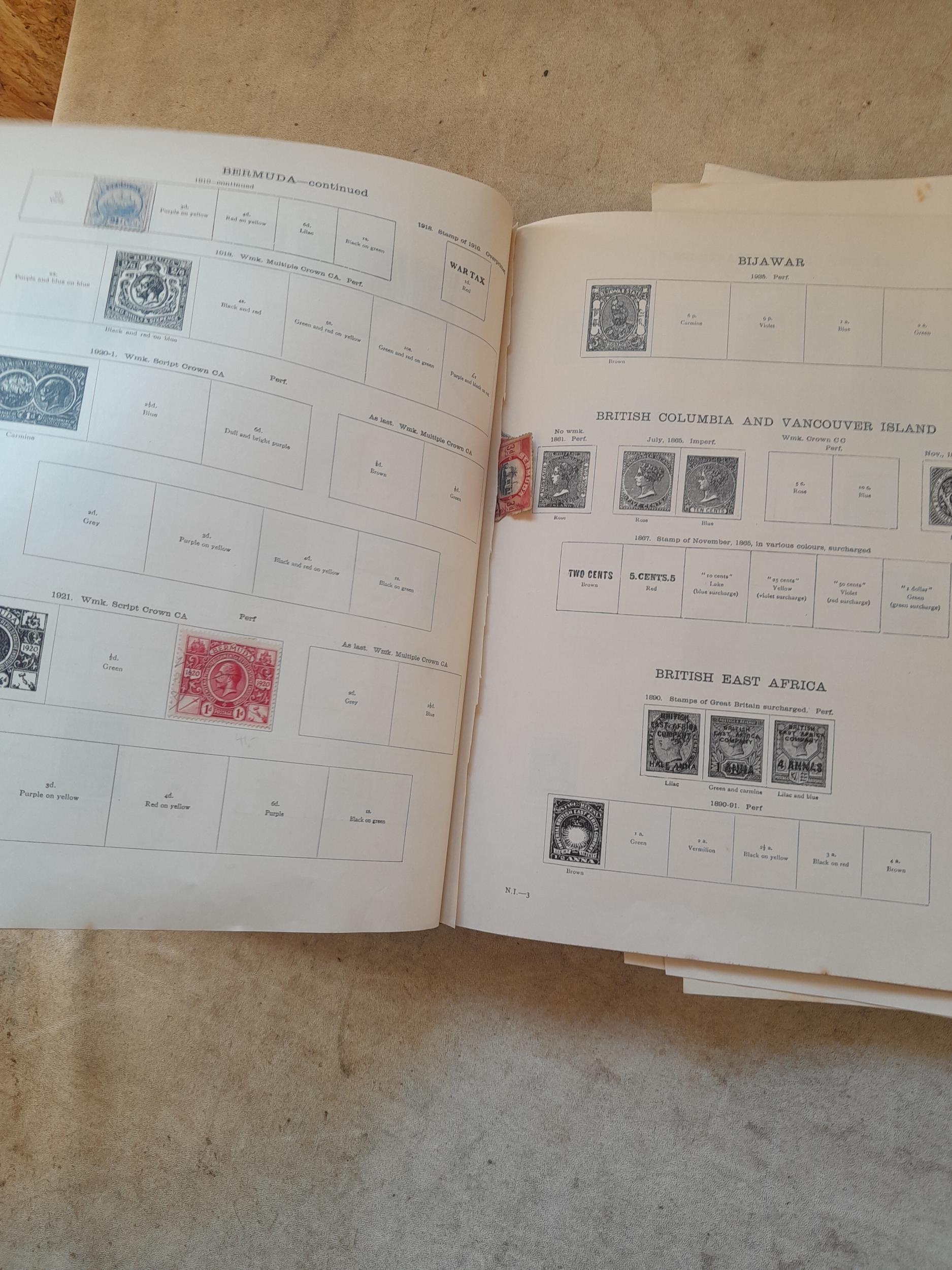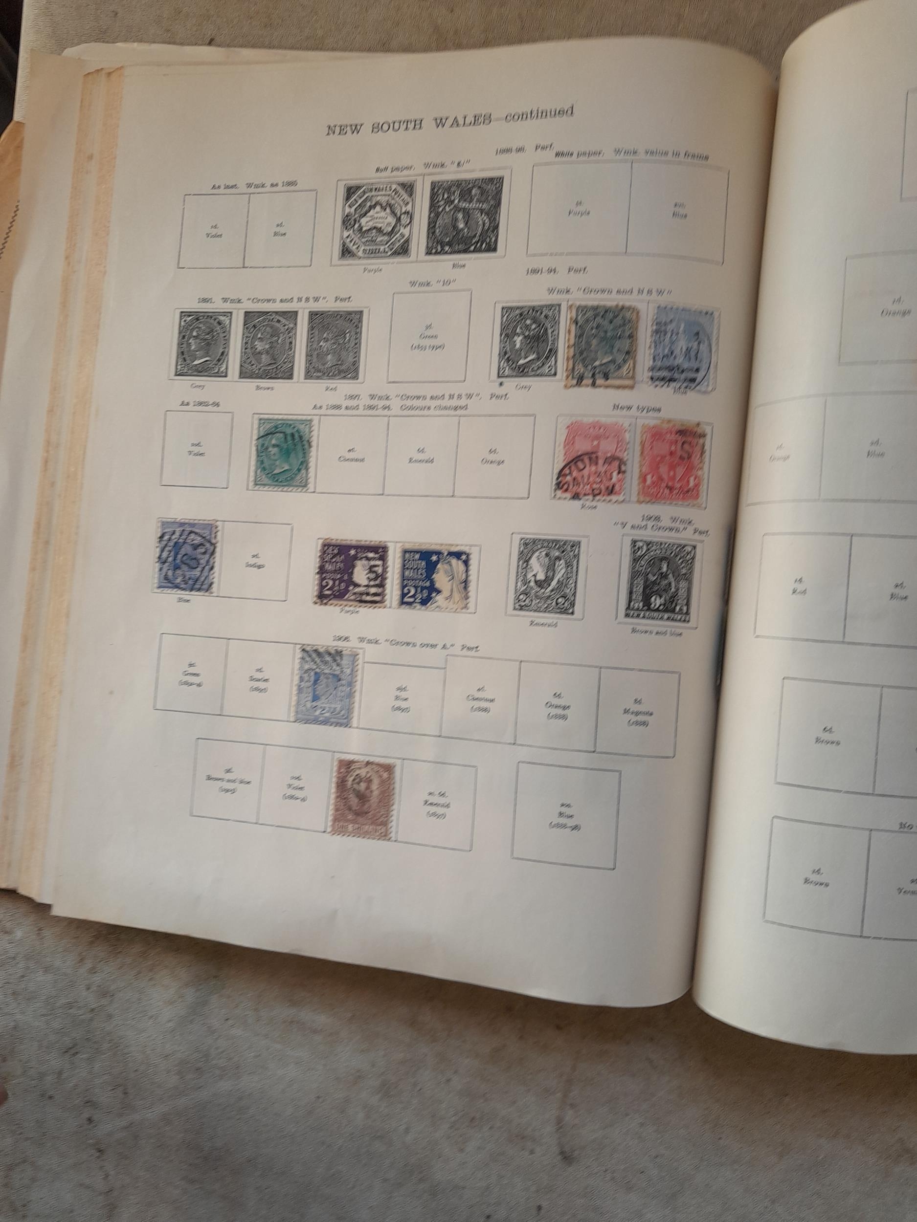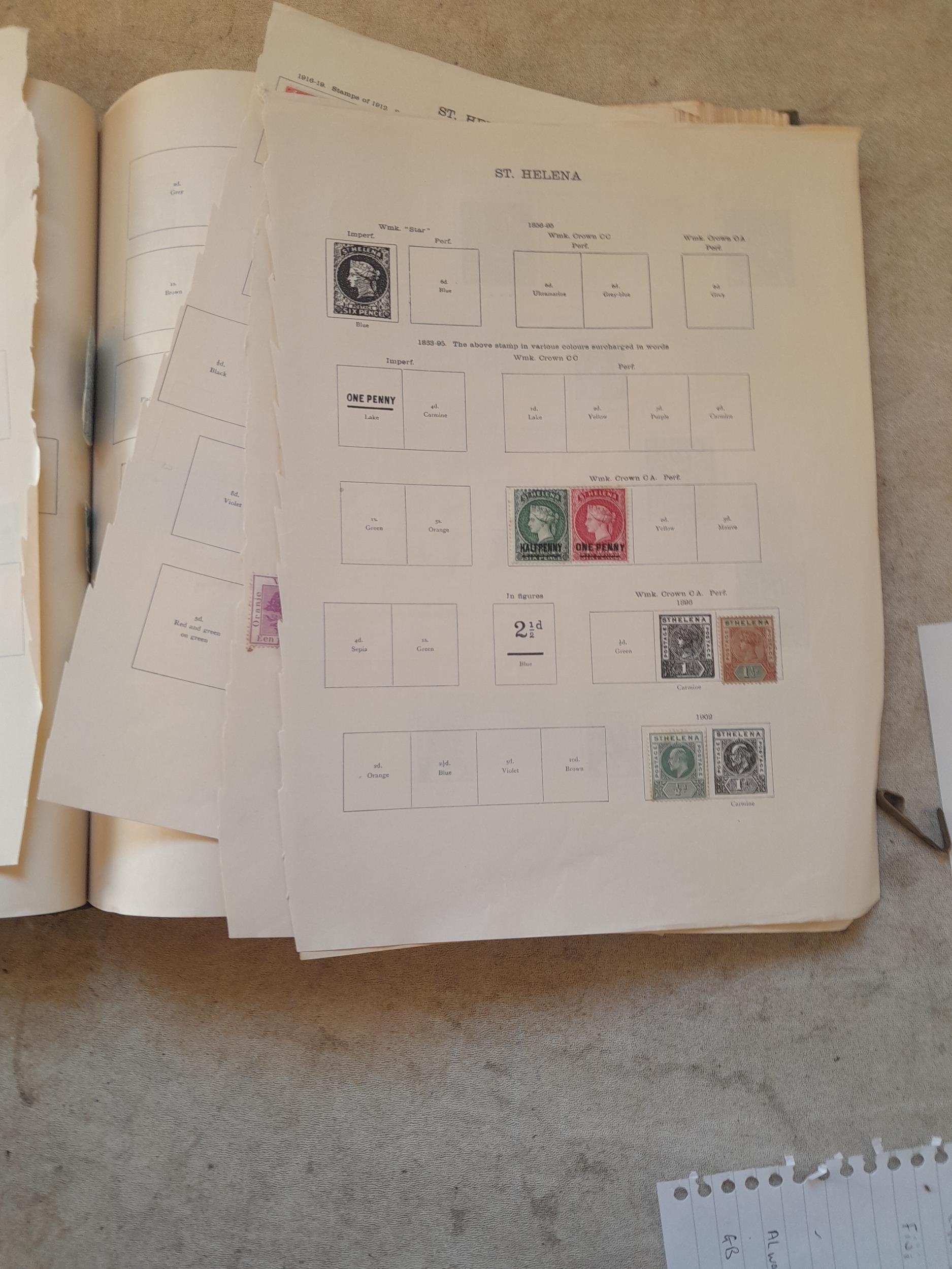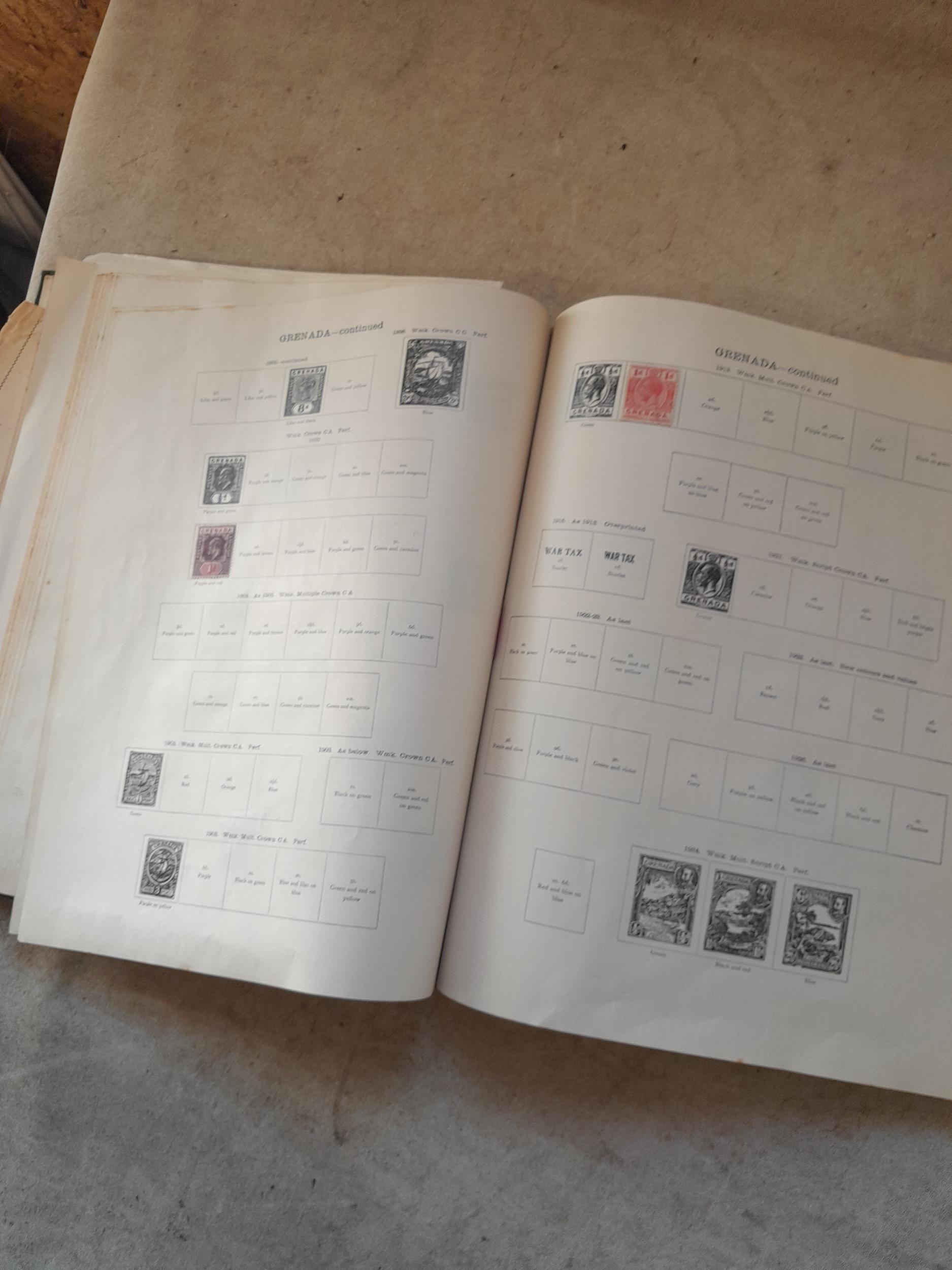 A sparsely filled Ideal Commonwealth Album. an interesting album with earlier stamps sadly let down by poor presentation and condition with some loose stamps and pages : Early Canada SG 39 & SG 60 12 1/2 C blue with faults, Cape of Good Hope Triangle with faults, interesting Fiji and Alwar, GB SG 183 with faults, trimmed and corner damage, QV 10 Shilling with Guernsey postmark , GB reds and blues, part Jubilee set, Edward VII and Seahorse