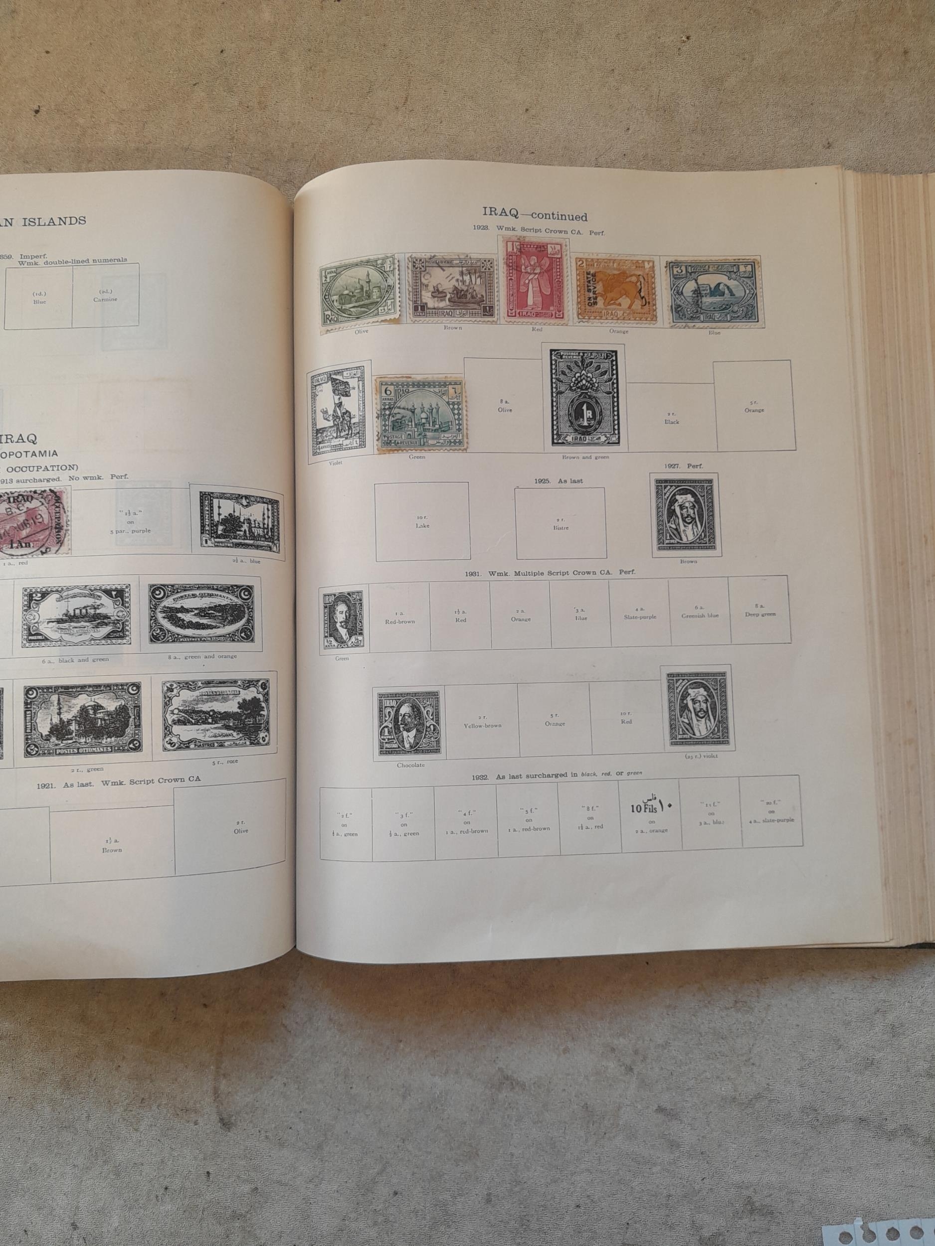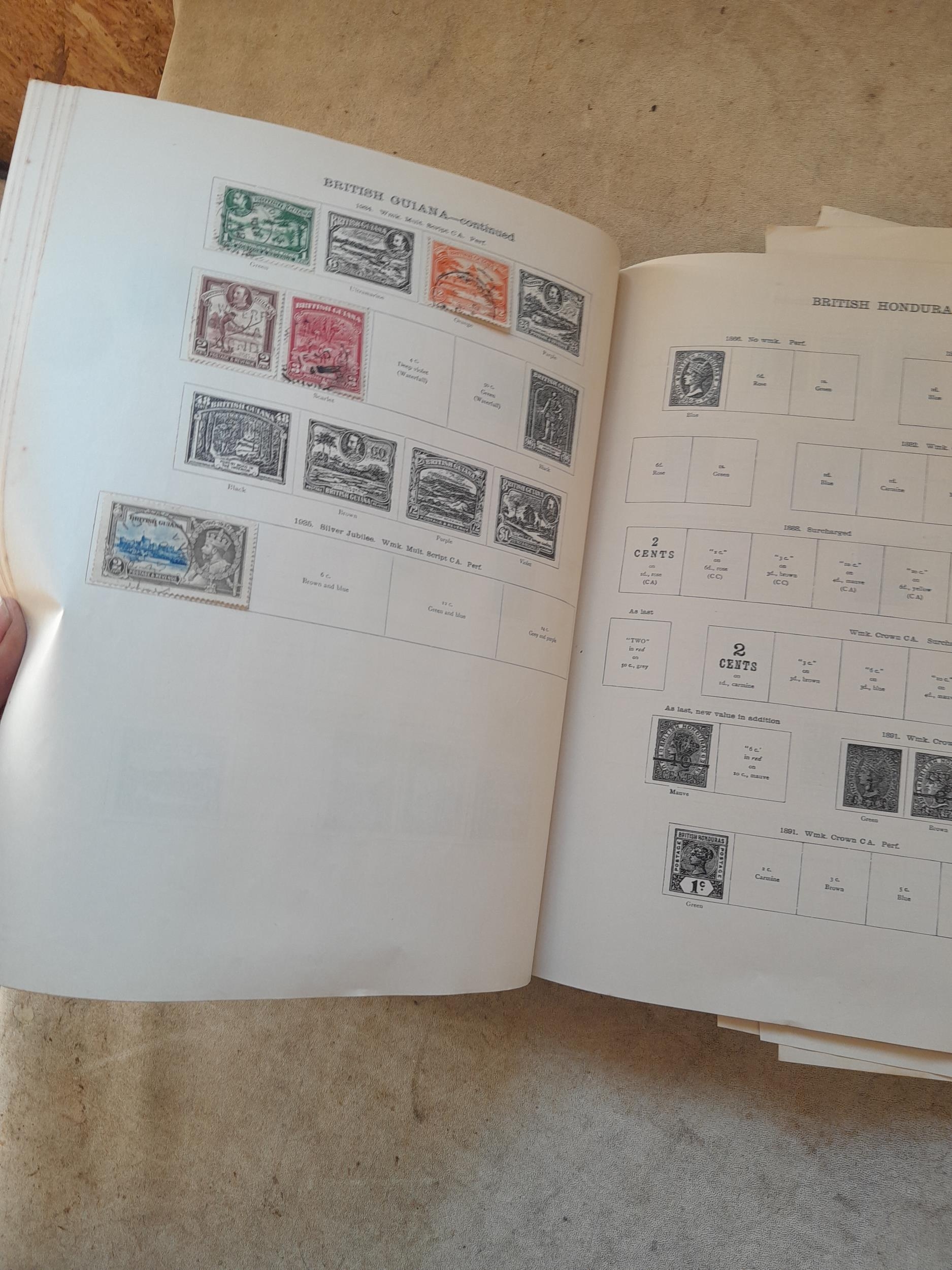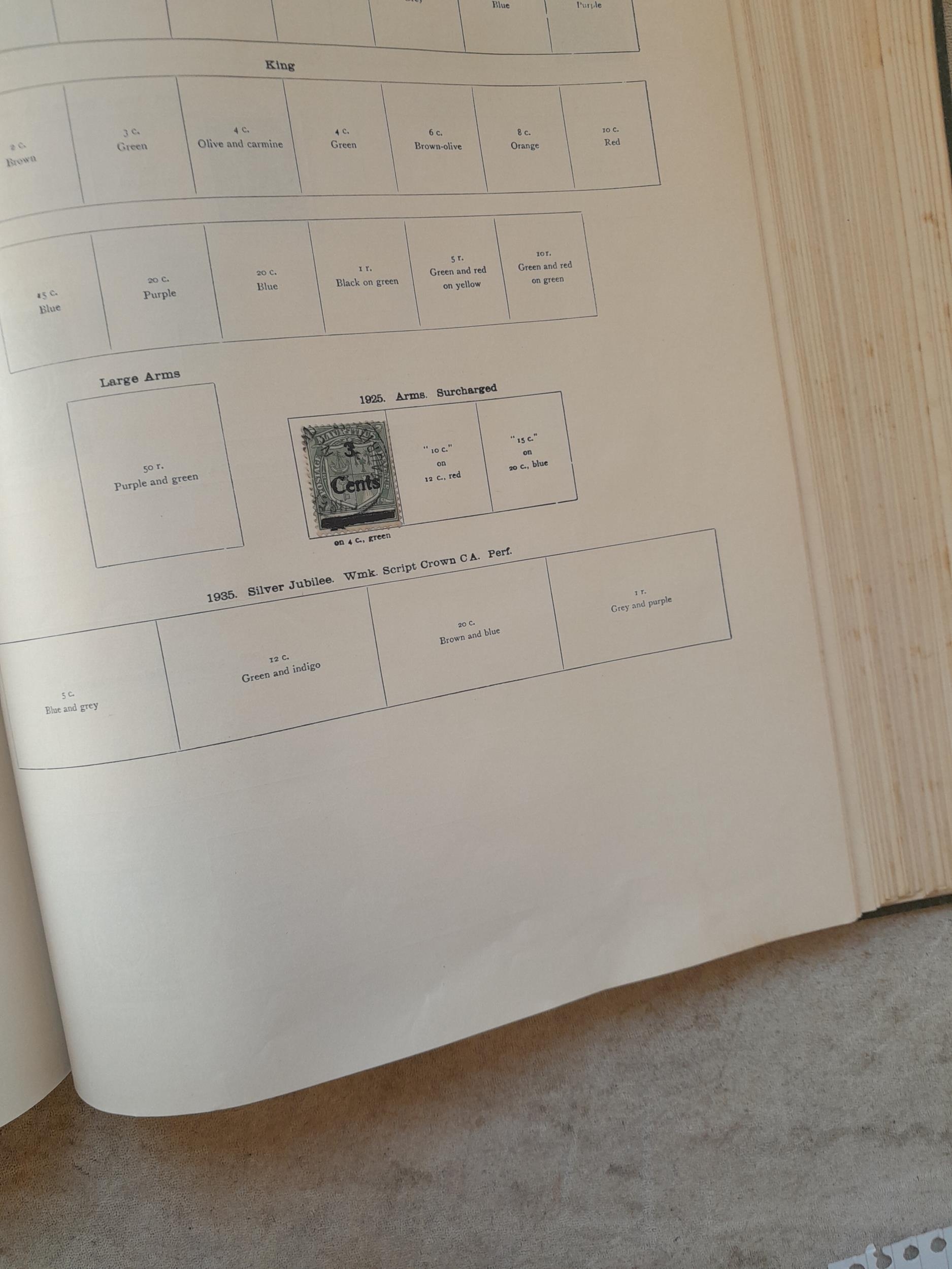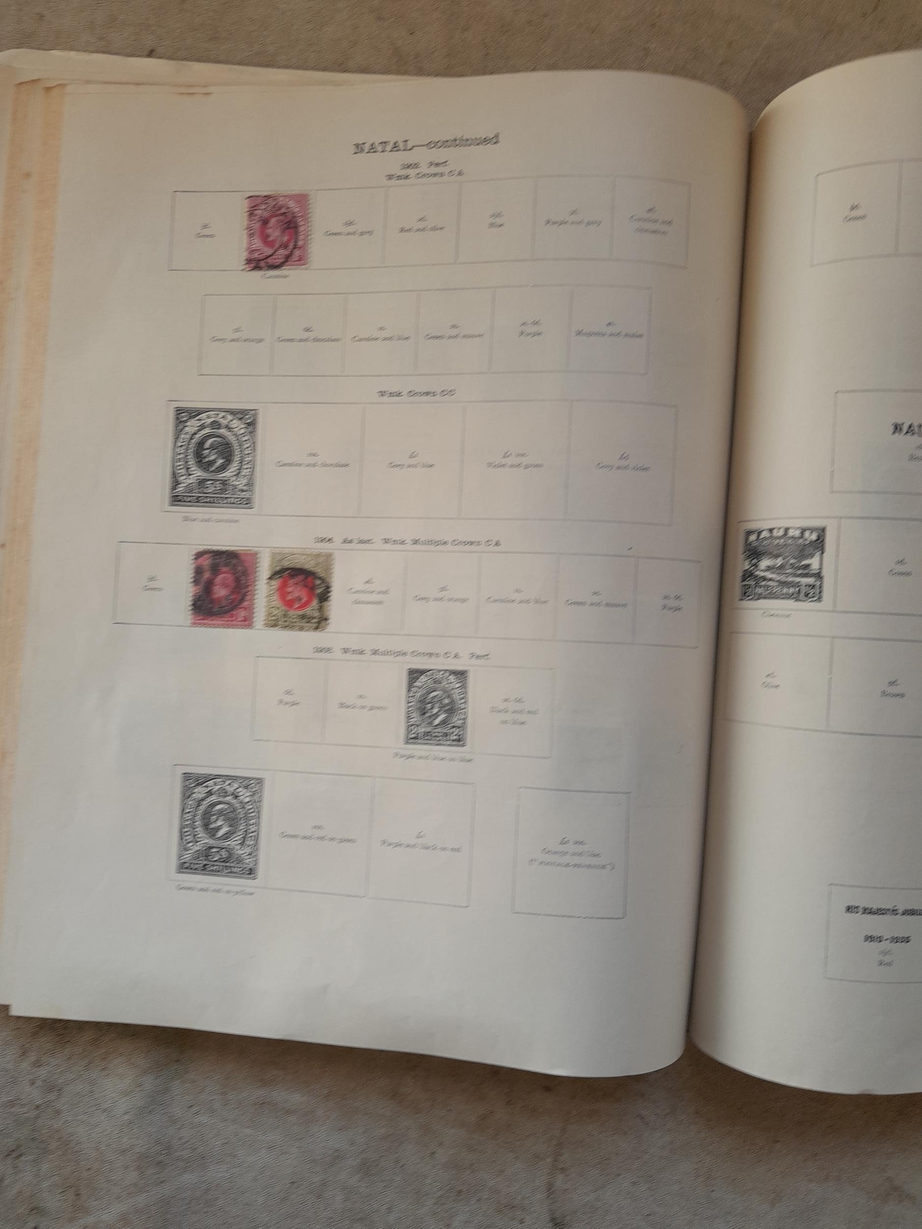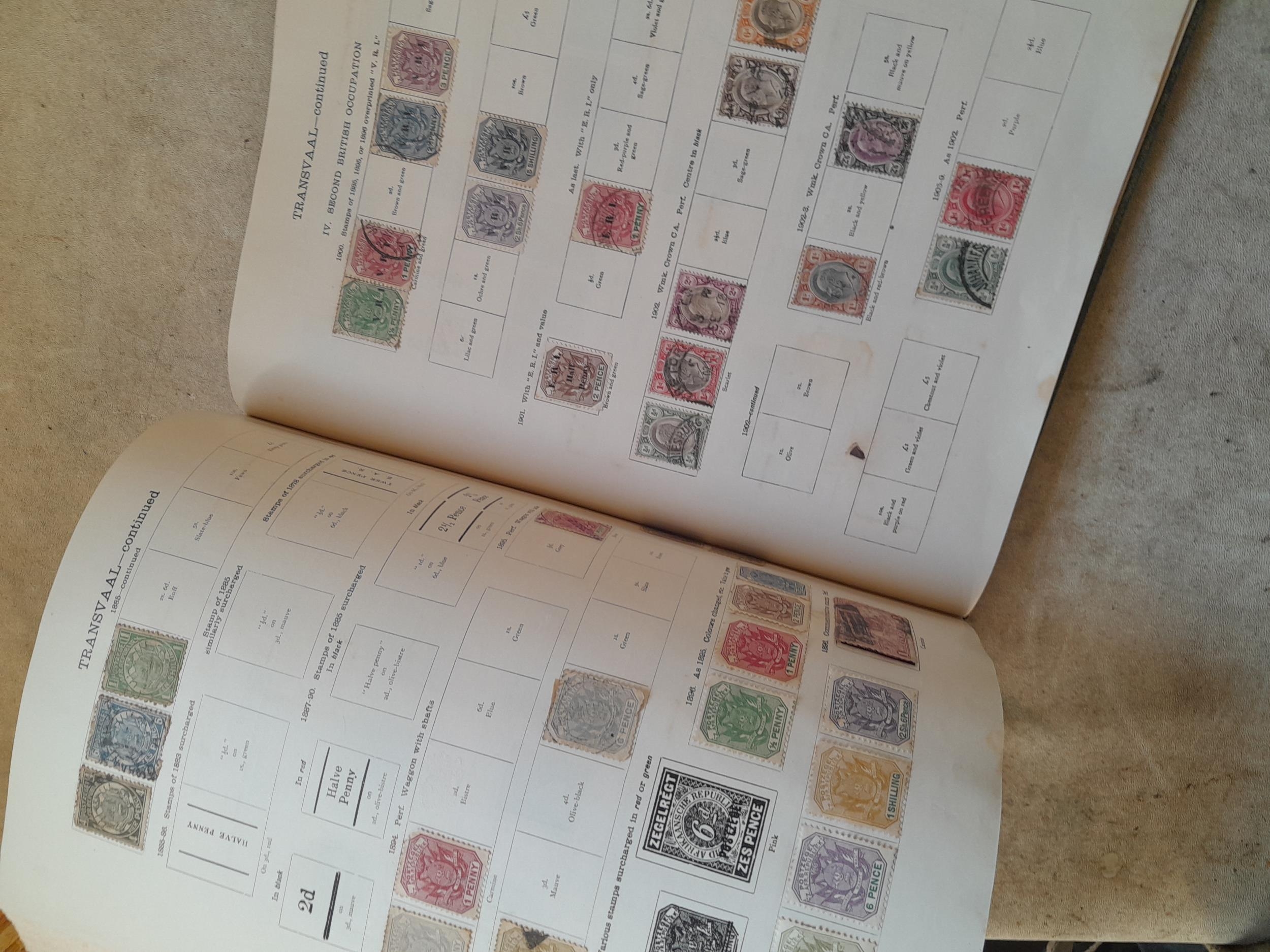 A sparsely filled Ideal Commonwealth Album. an interesting album with earlier stamps sadly let down by poor presentation and condition with some loose stamps and pages : Early Canada SG 39 & SG 60 12 1/2 C blue with faults, Cape of Good Hope Triangle with faults, interesting Fiji and Alwar, GB SG 183 with faults, trimmed and corner damage, QV 10 Shilling with Guernsey postmark , GB reds and blues, part Jubilee set, Edward VII and Seahorse