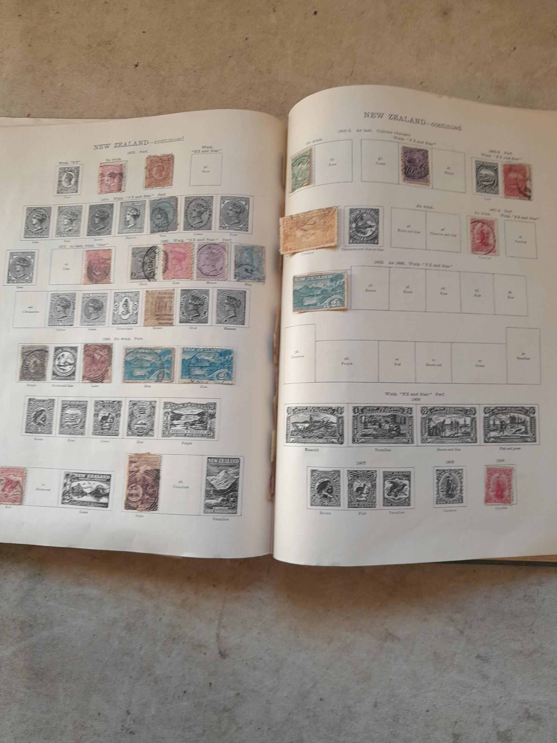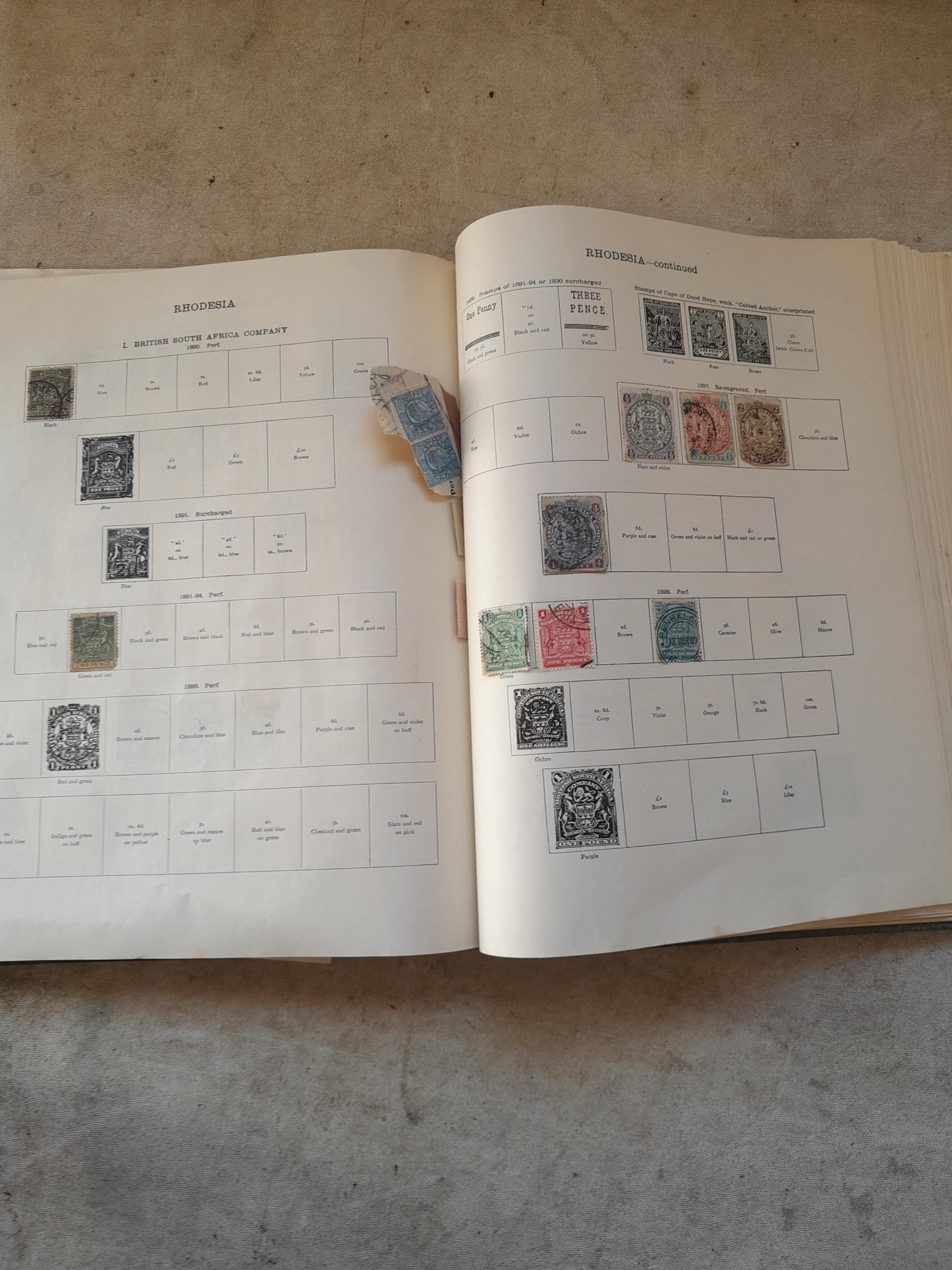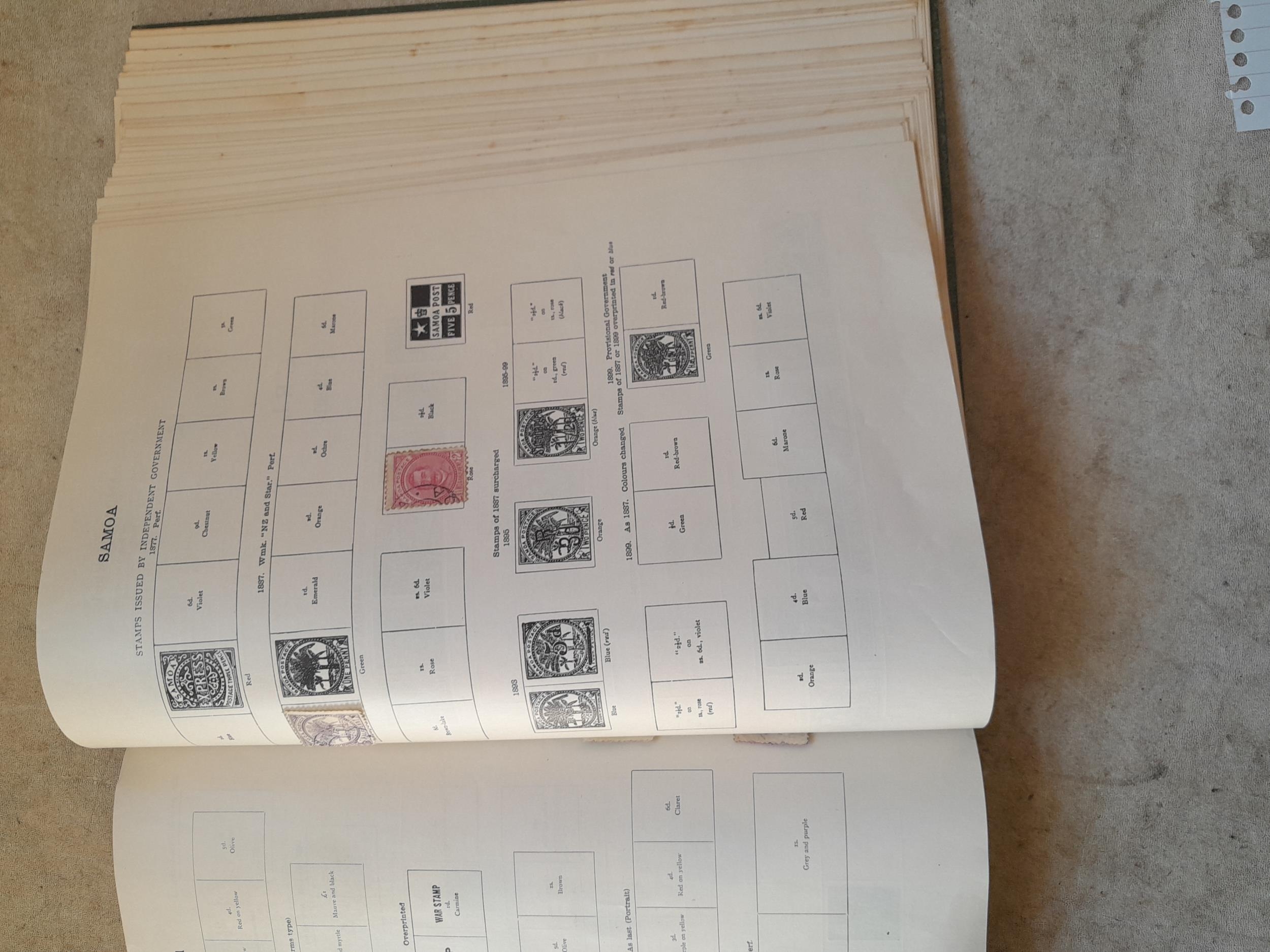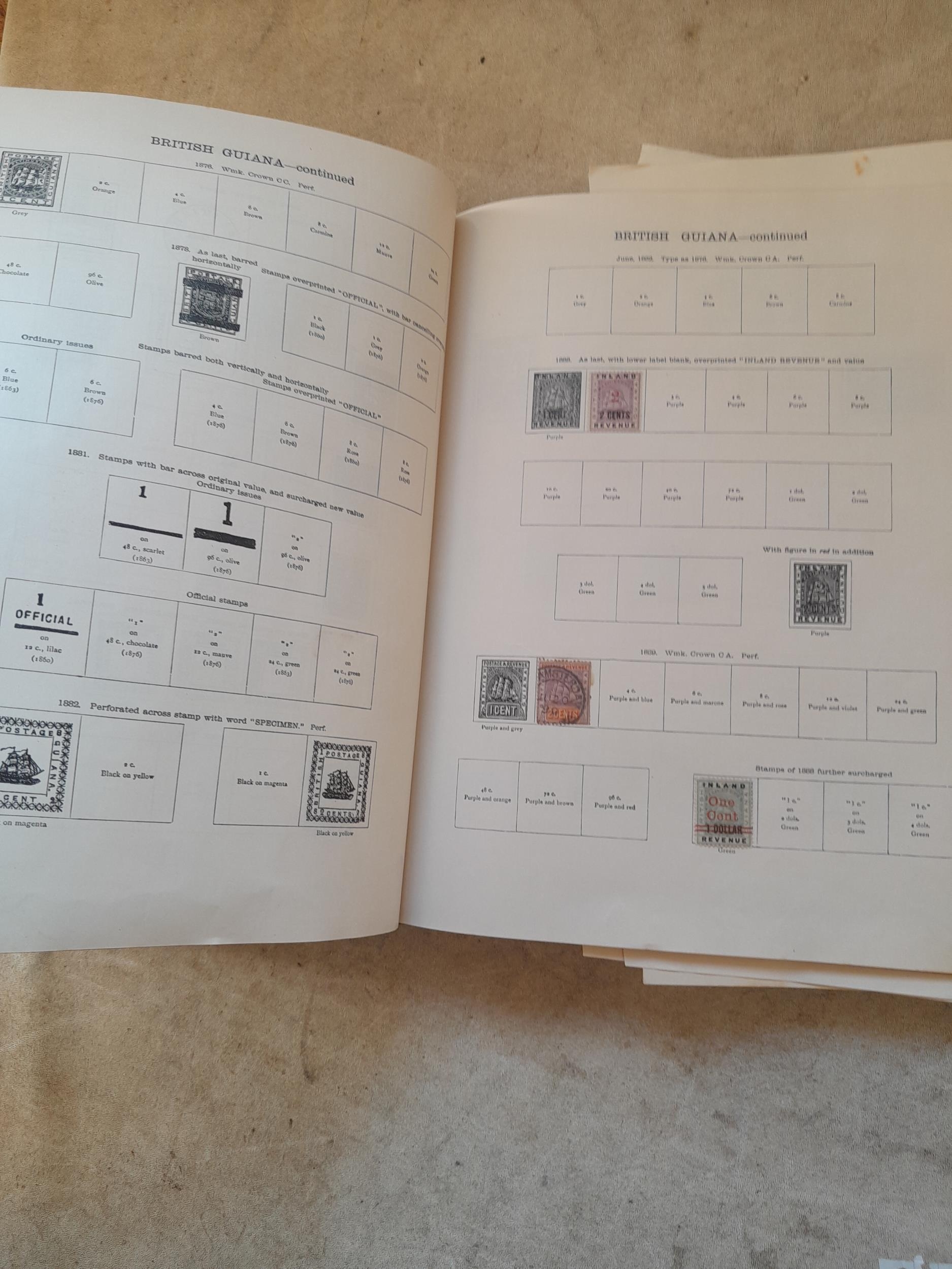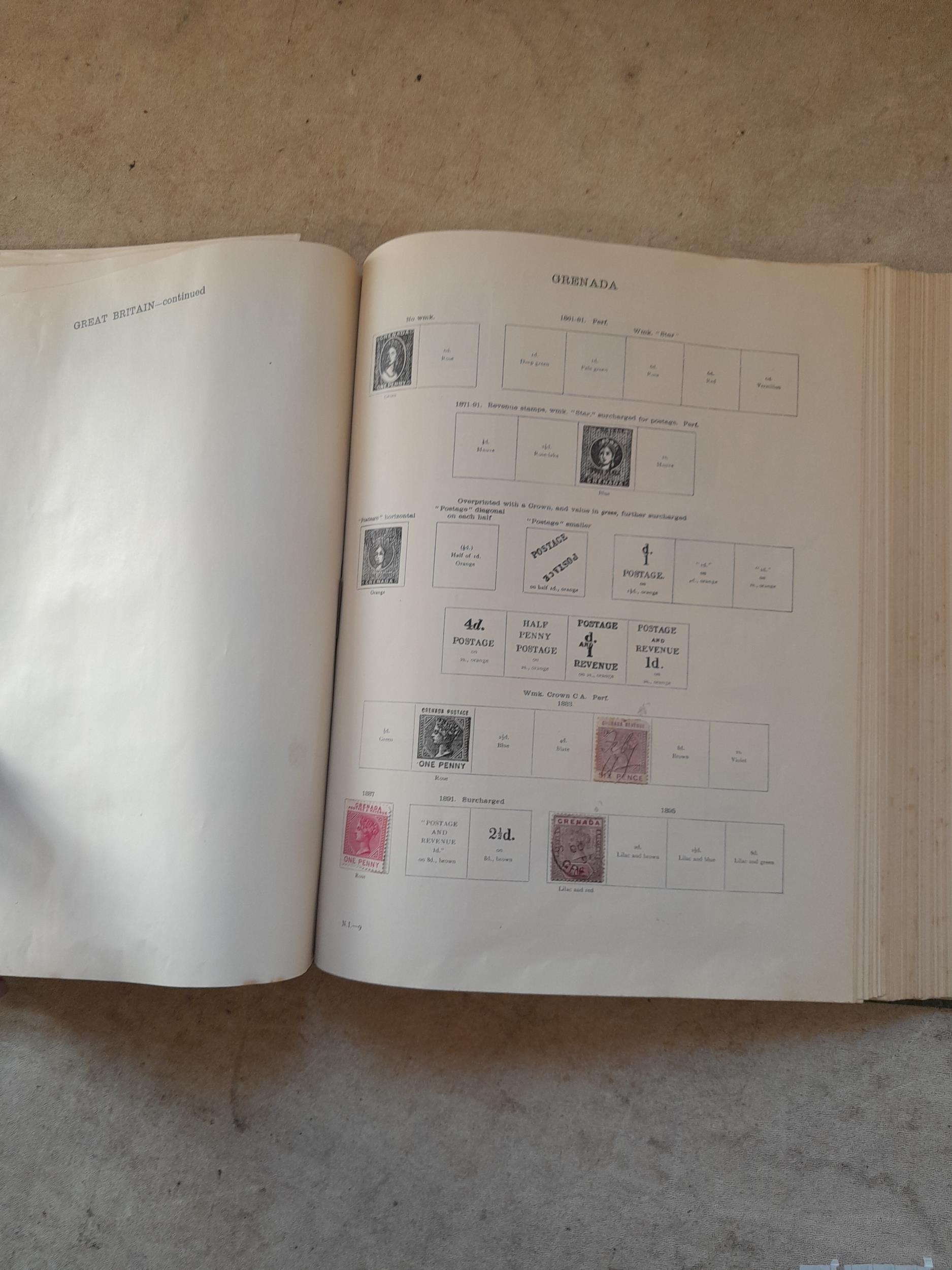 A sparsely filled Ideal Commonwealth Album. an interesting album with earlier stamps sadly let down by poor presentation and condition with some loose stamps and pages : Early Canada SG 39 & SG 60 12 1/2 C blue with faults, Cape of Good Hope Triangle with faults, interesting Fiji and Alwar, GB SG 183 with faults, trimmed and corner damage, QV 10 Shilling with Guernsey postmark , GB reds and blues, part Jubilee set, Edward VII and Seahorse