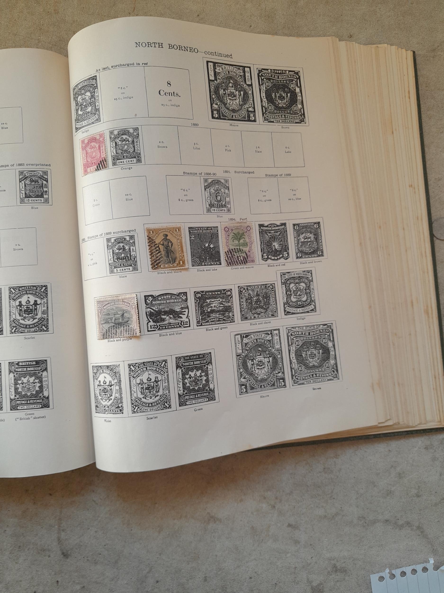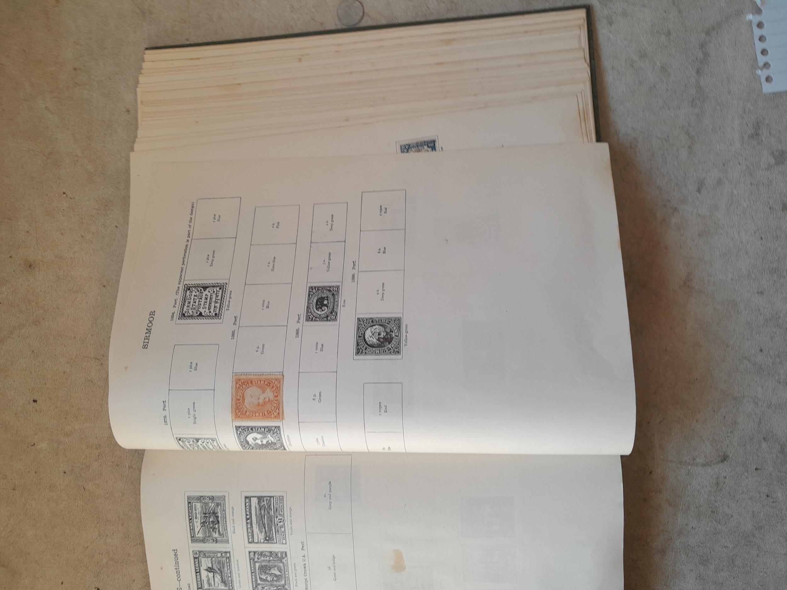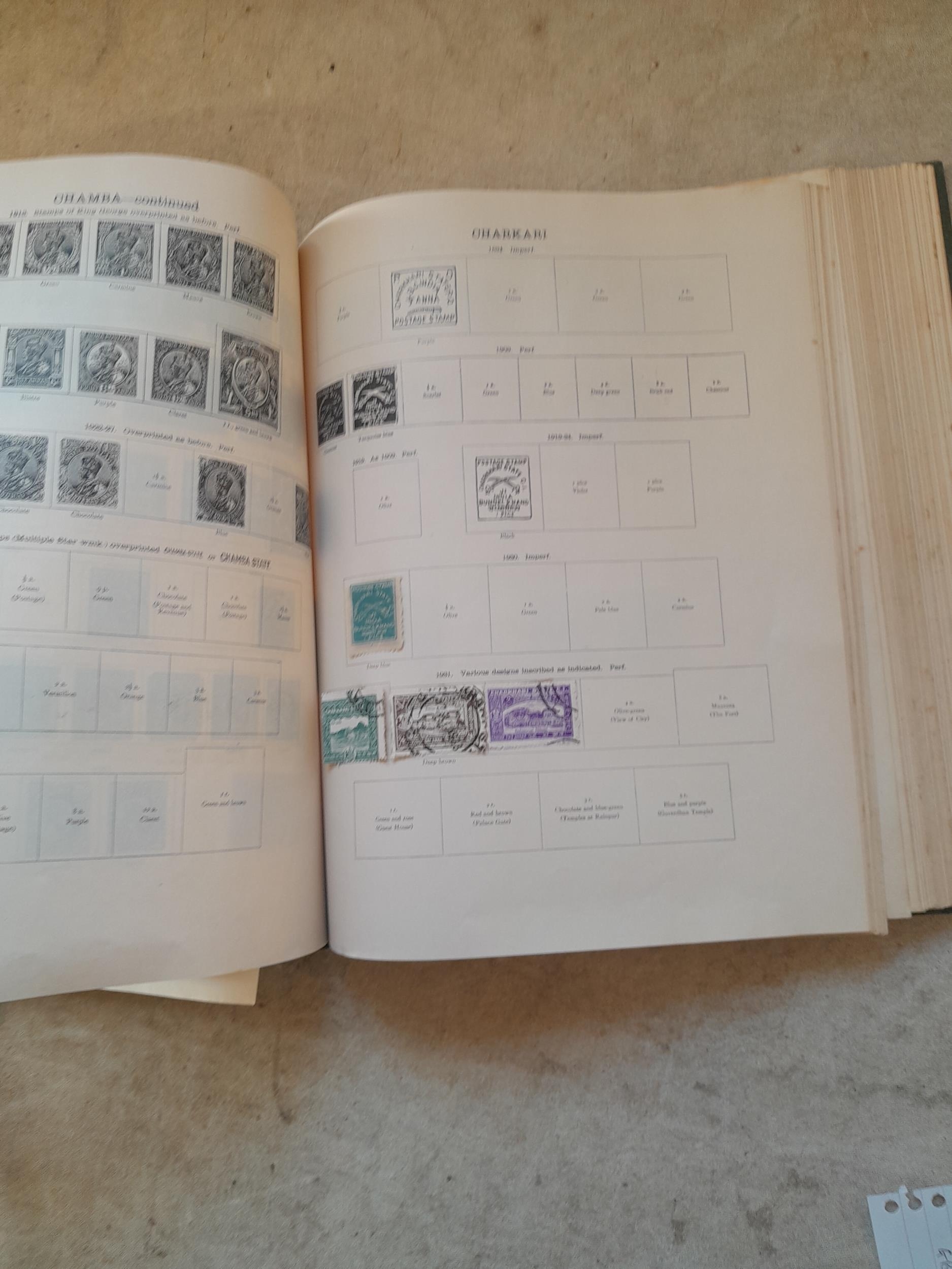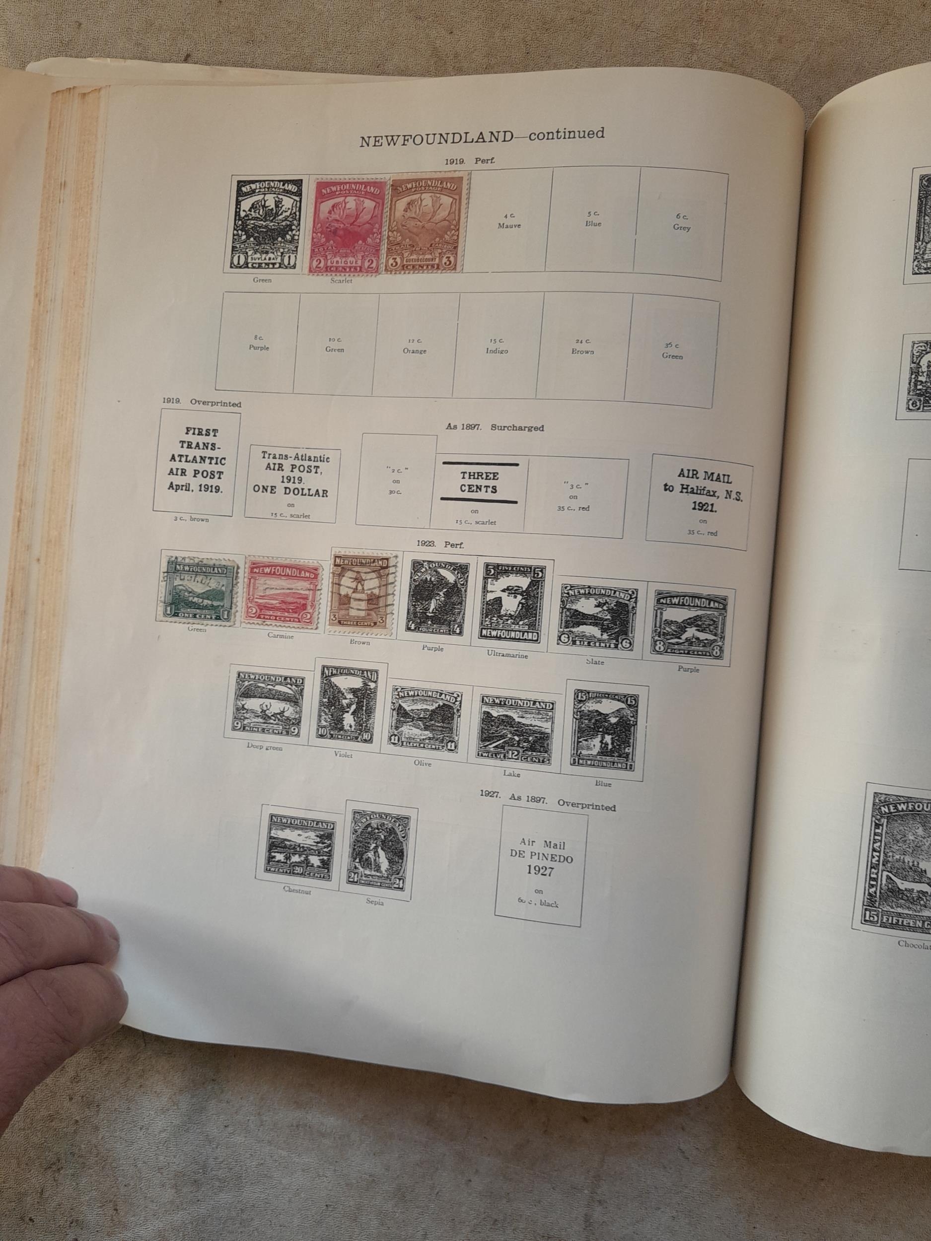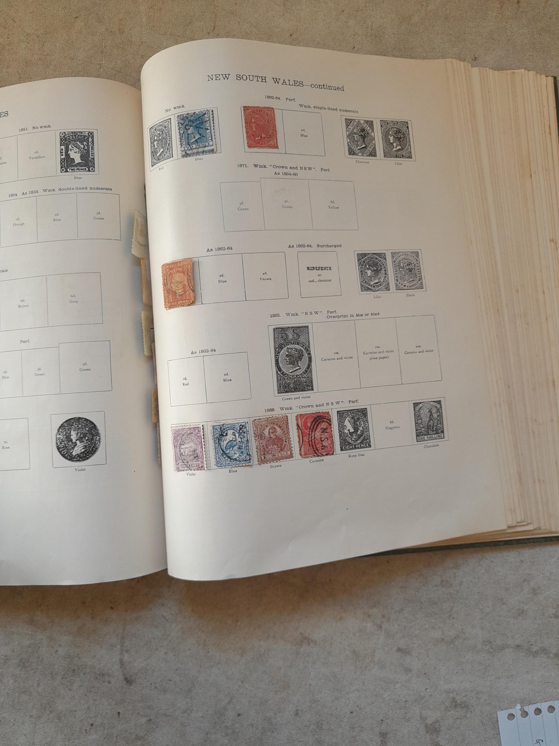 A sparsely filled Ideal Commonwealth Album. an interesting album with earlier stamps sadly let down by poor presentation and condition with some loose stamps and pages : Early Canada SG 39 & SG 60 12 1/2 C blue with faults, Cape of Good Hope Triangle with faults, interesting Fiji and Alwar, GB SG 183 with faults, trimmed and corner damage, QV 10 Shilling with Guernsey postmark , GB reds and blues, part Jubilee set, Edward VII and Seahorse