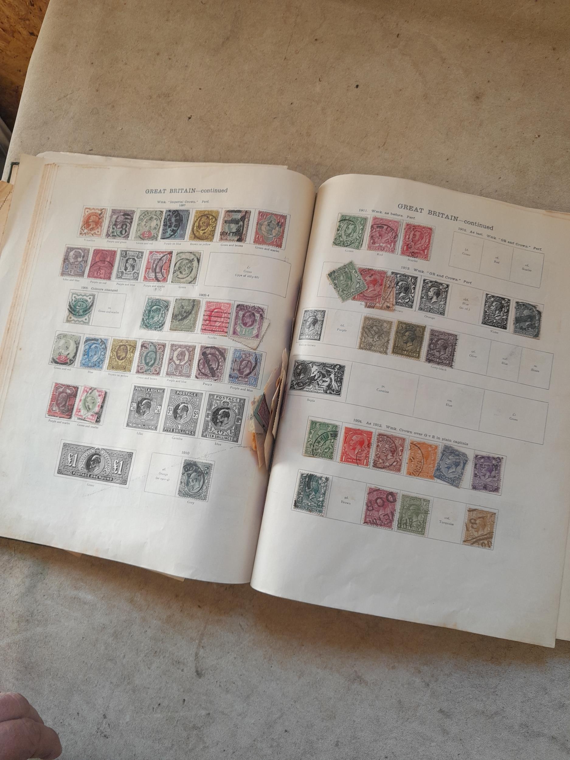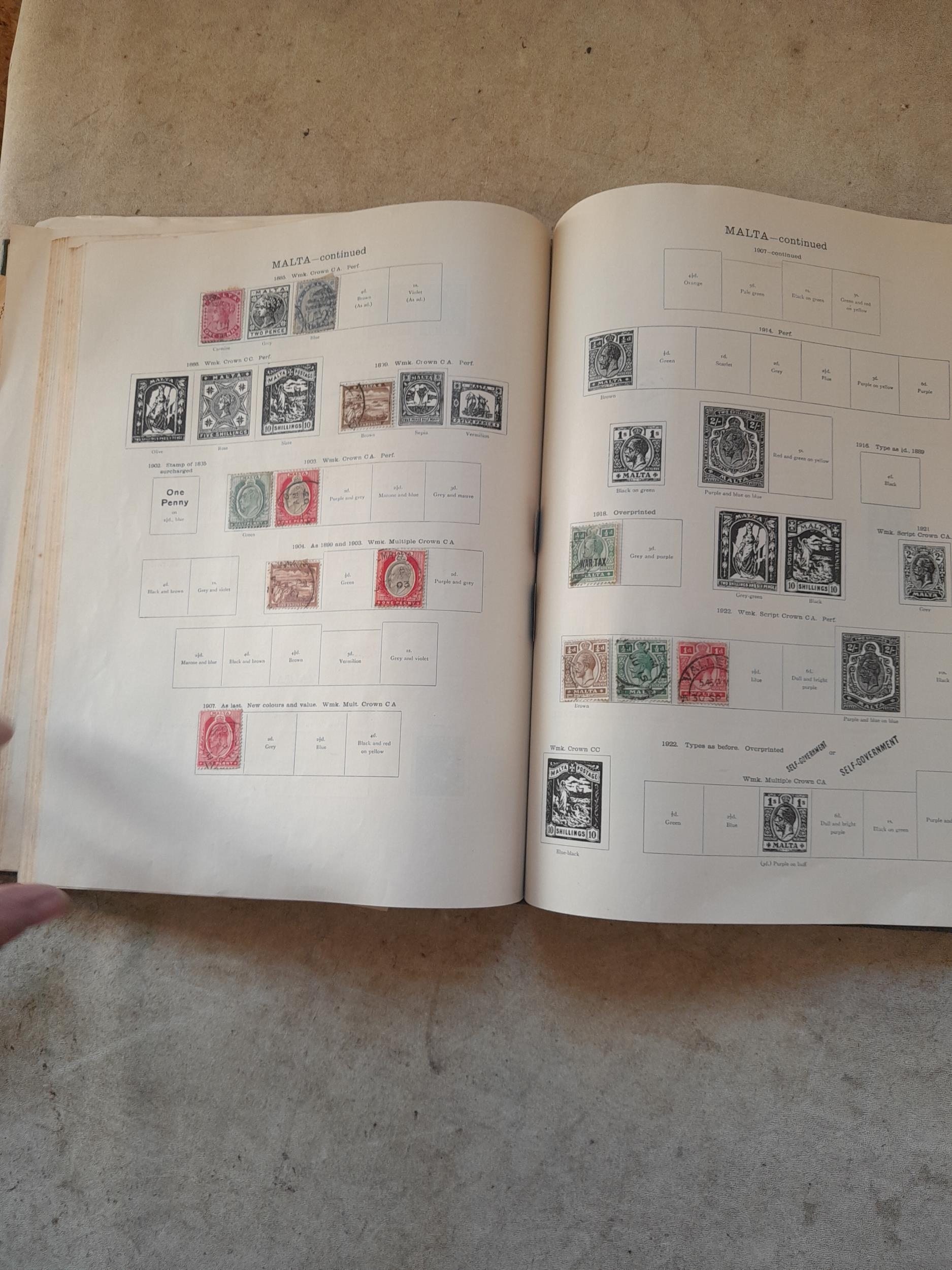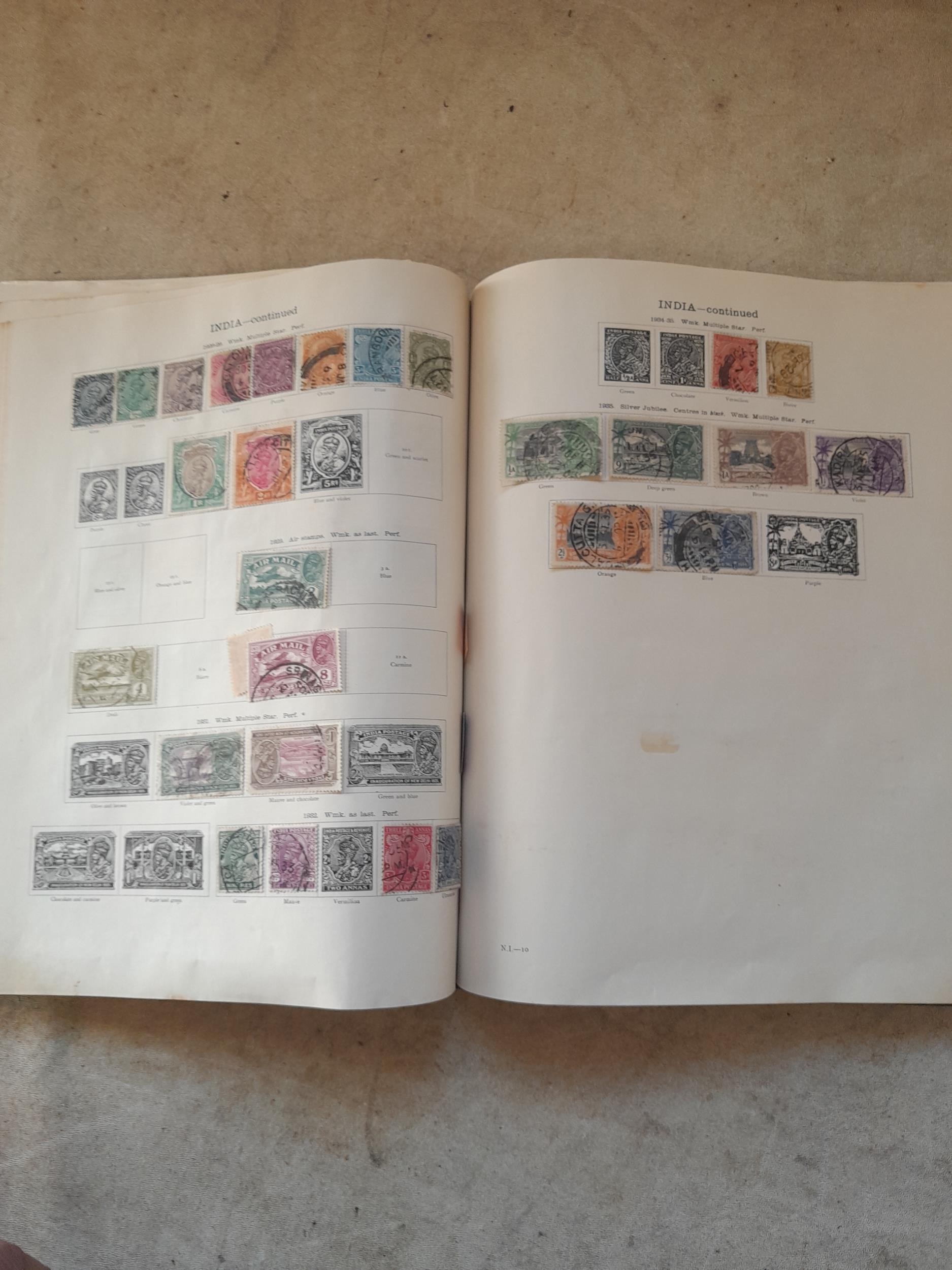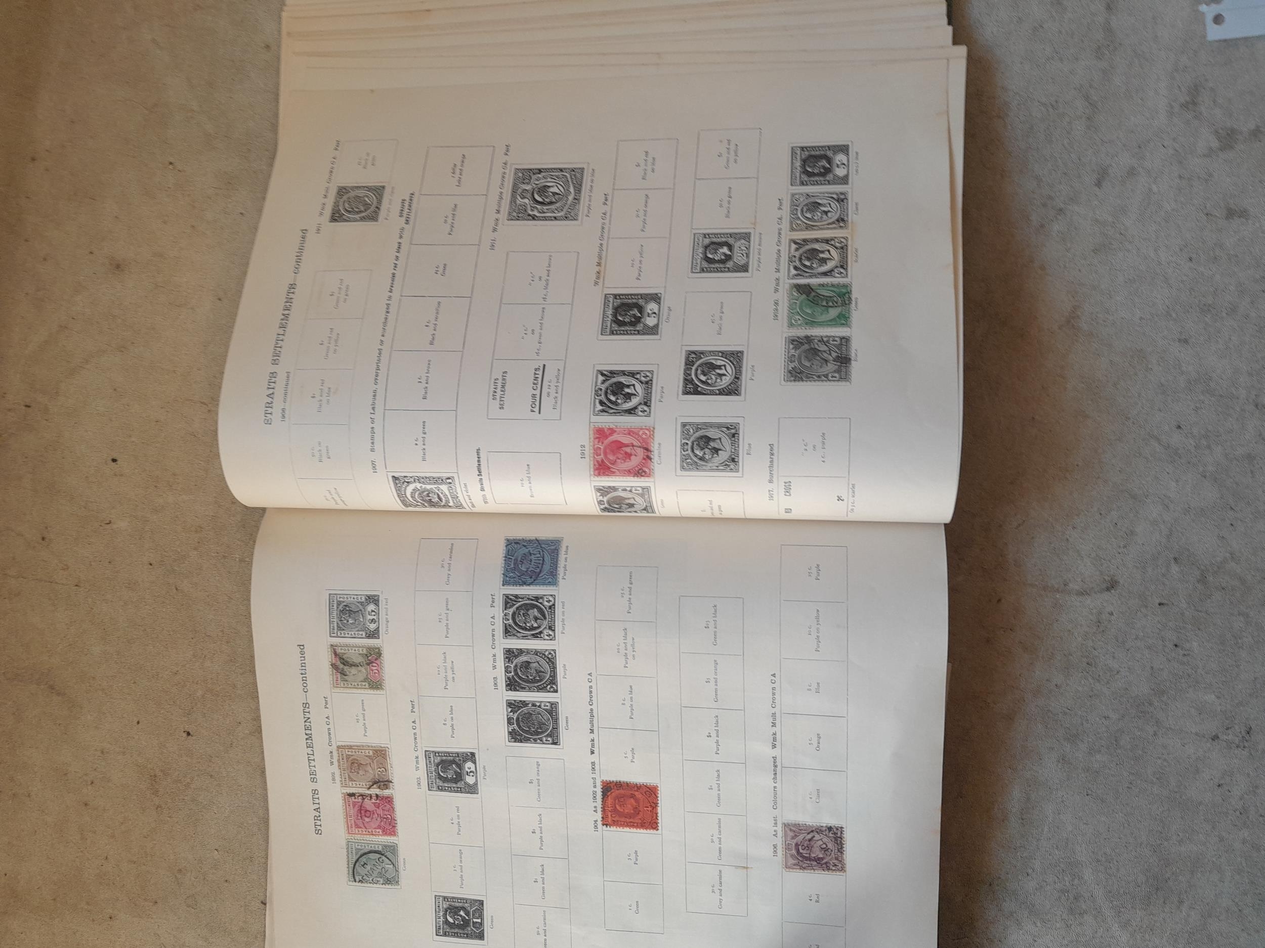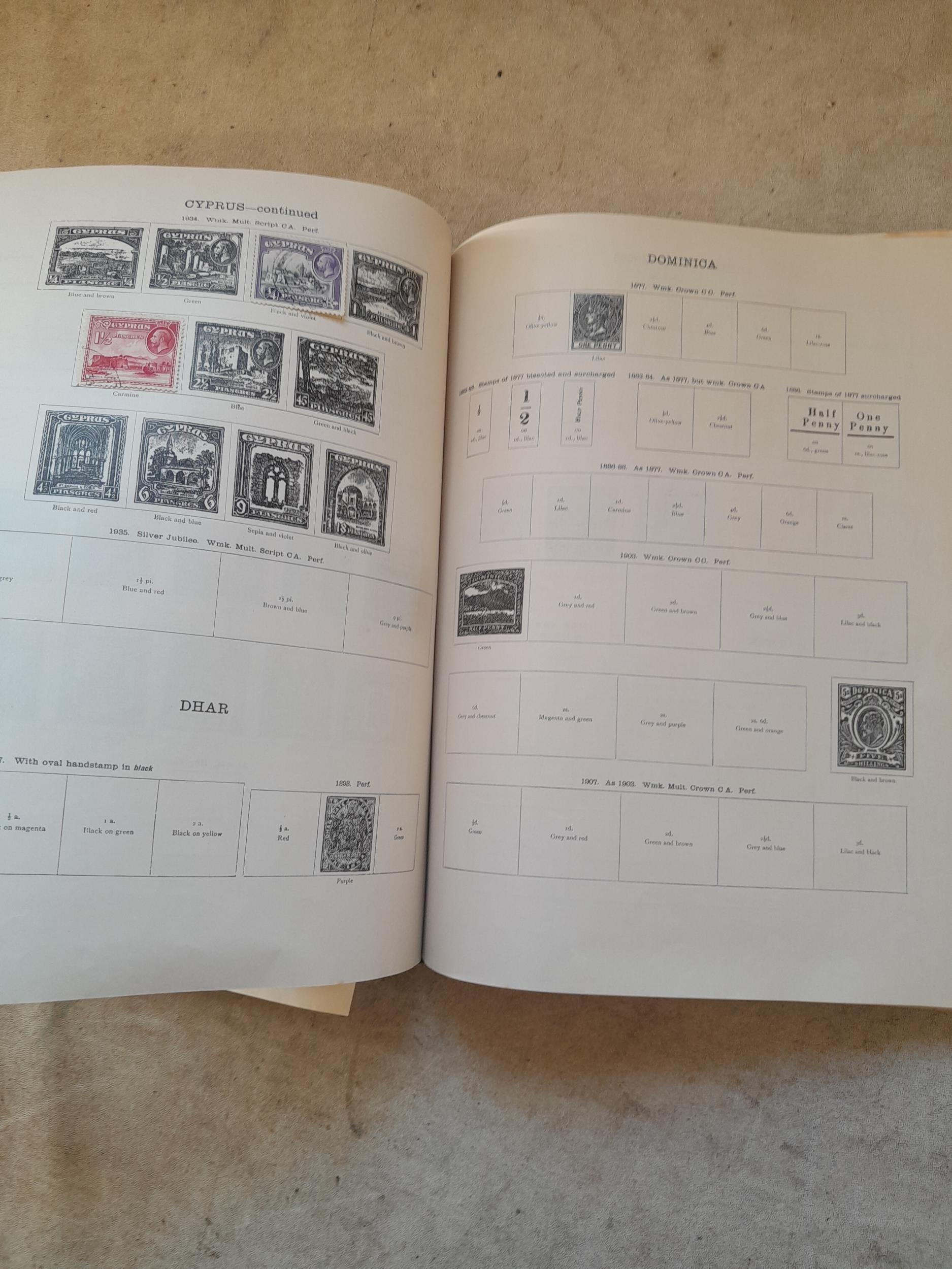 A sparsely filled Ideal Commonwealth Album. an interesting album with earlier stamps sadly let down by poor presentation and condition with some loose stamps and pages : Early Canada SG 39 & SG 60 12 1/2 C blue with faults, Cape of Good Hope Triangle with faults, interesting Fiji and Alwar, GB SG 183 with faults, trimmed and corner damage, QV 10 Shilling with Guernsey postmark , GB reds and blues, part Jubilee set, Edward VII and Seahorse