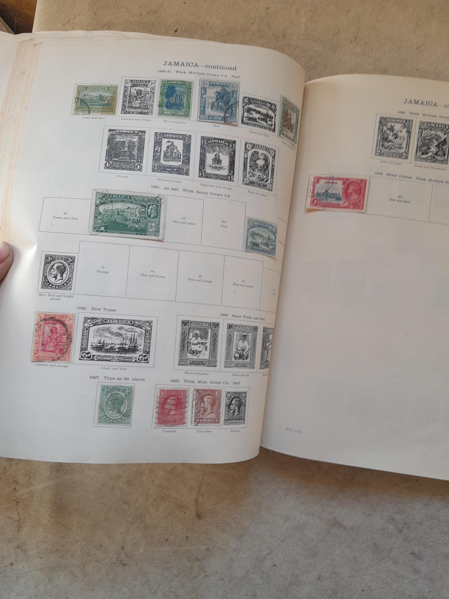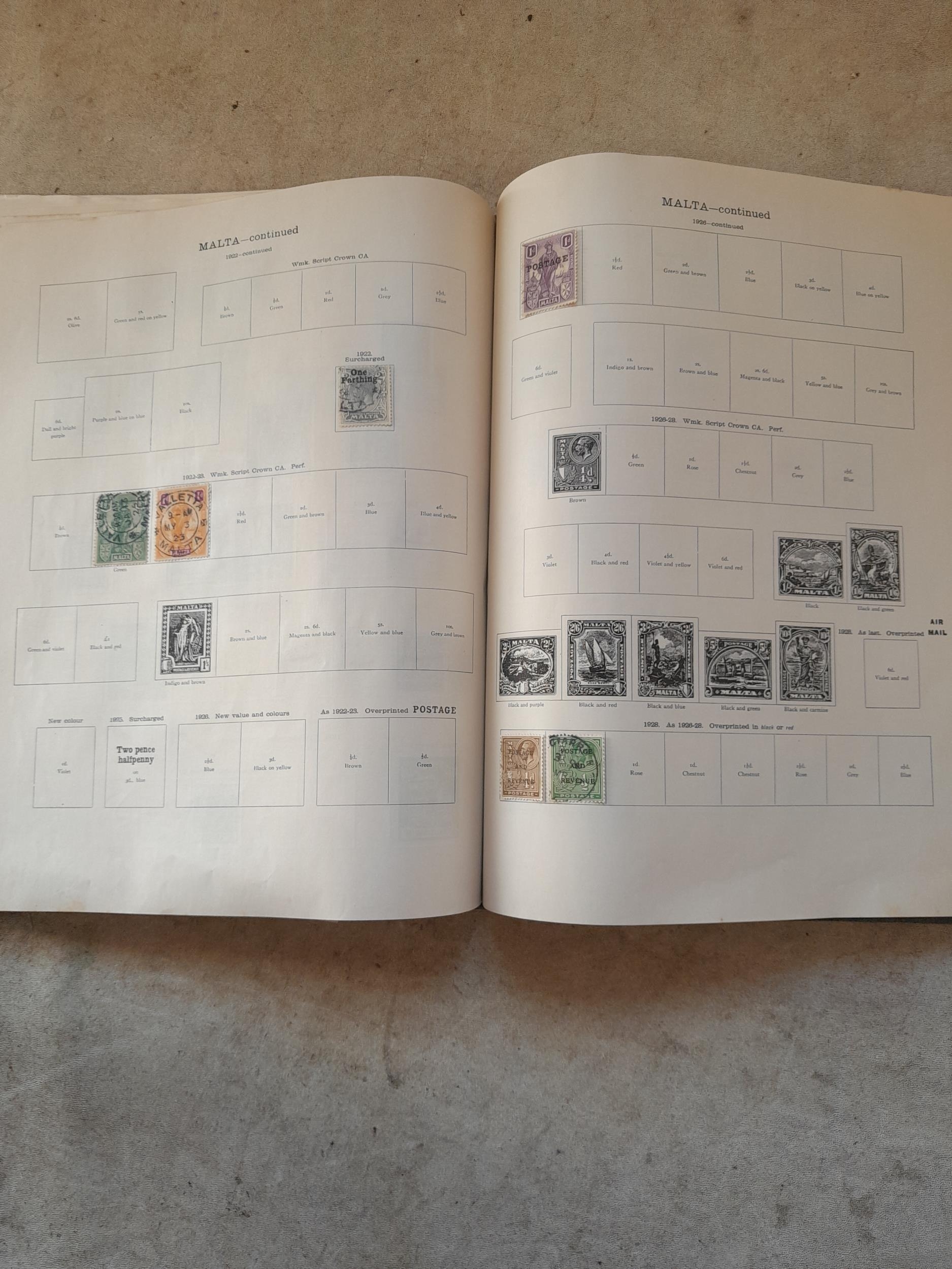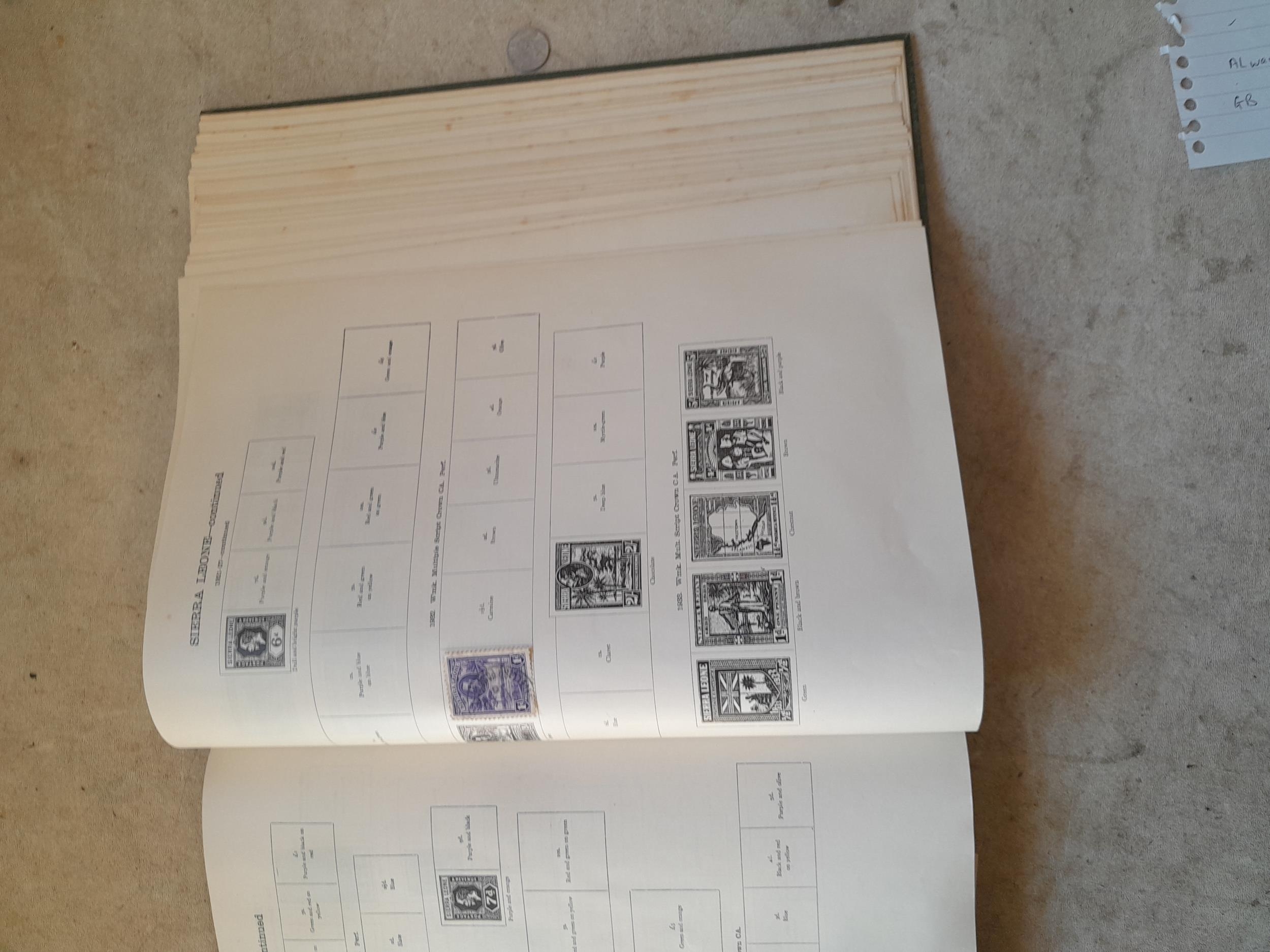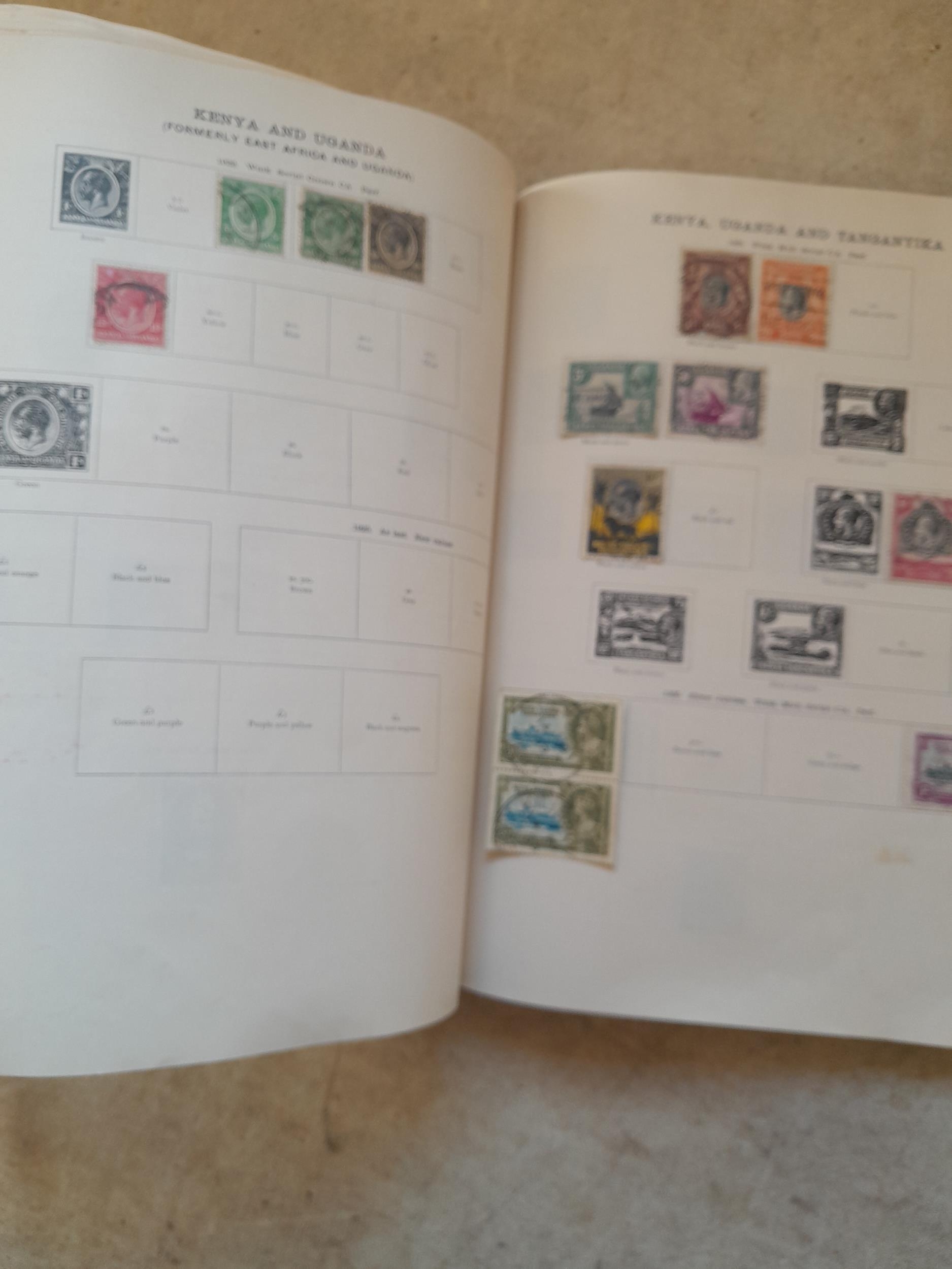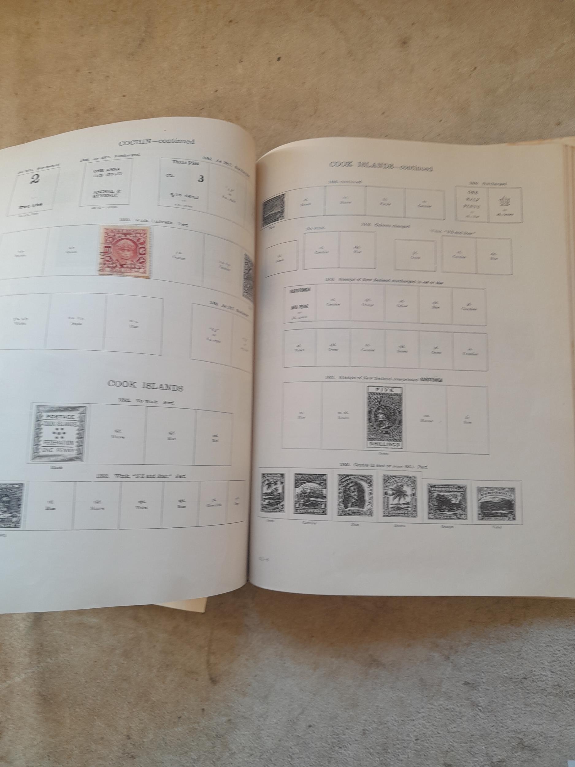 A sparsely filled Ideal Commonwealth Album. an interesting album with earlier stamps sadly let down by poor presentation and condition with some loose stamps and pages : Early Canada SG 39 & SG 60 12 1/2 C blue with faults, Cape of Good Hope Triangle with faults, interesting Fiji and Alwar, GB SG 183 with faults, trimmed and corner damage, QV 10 Shilling with Guernsey postmark , GB reds and blues, part Jubilee set, Edward VII and Seahorse
