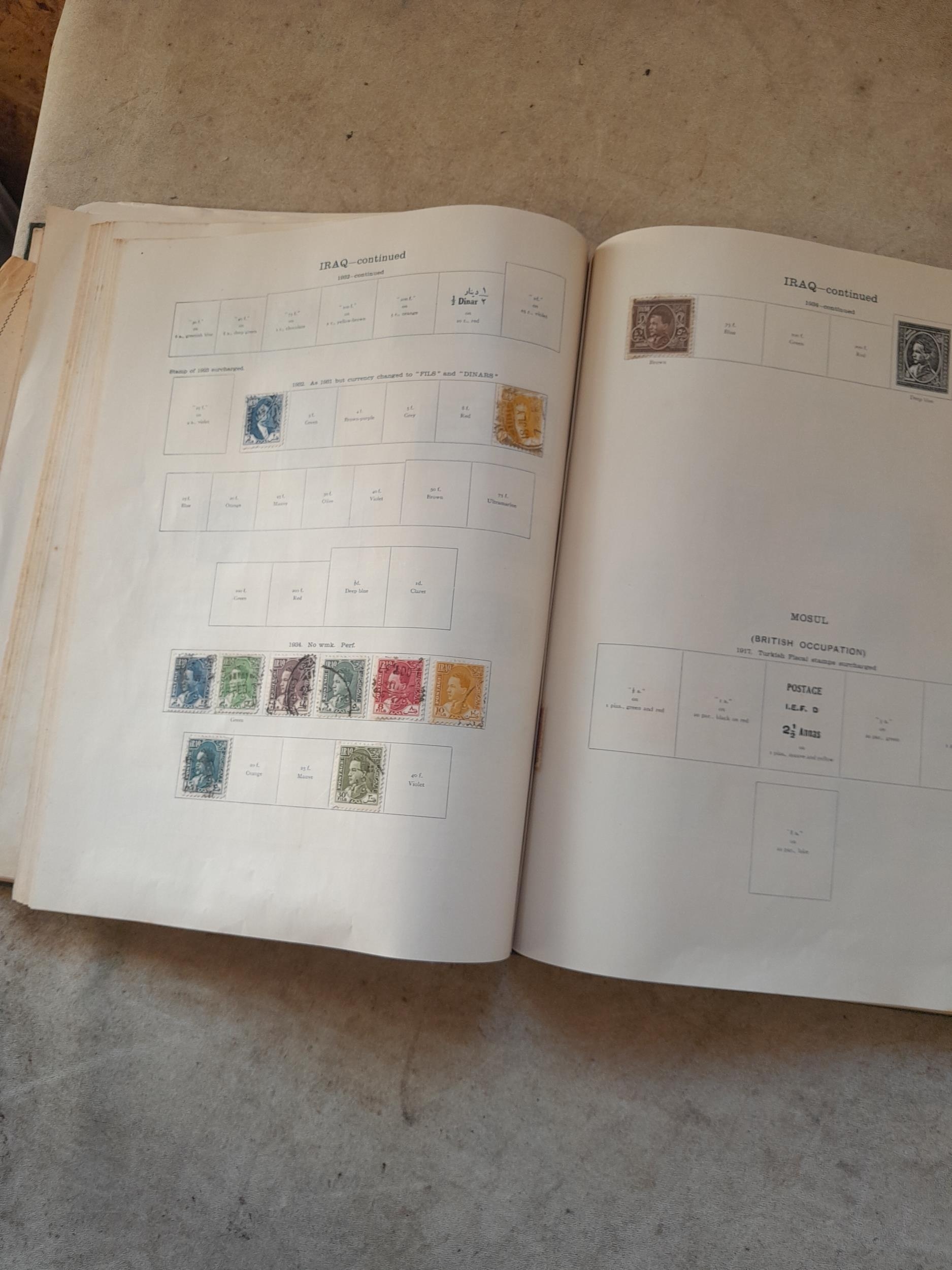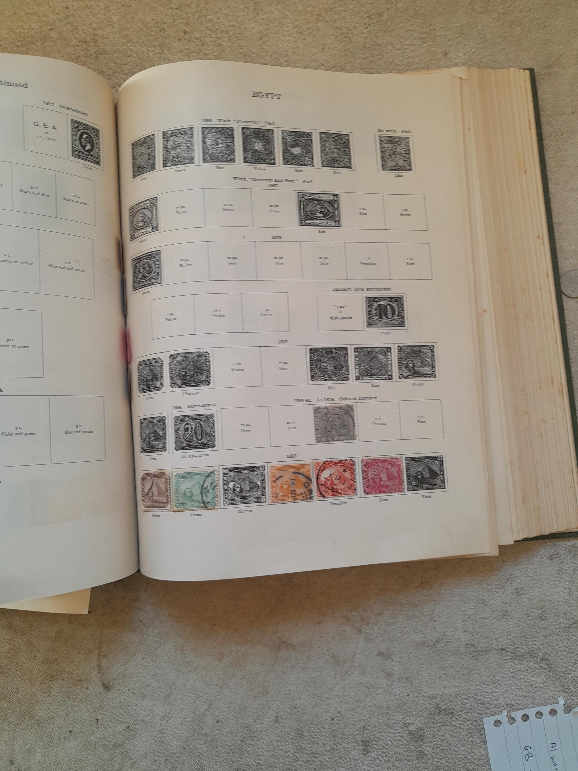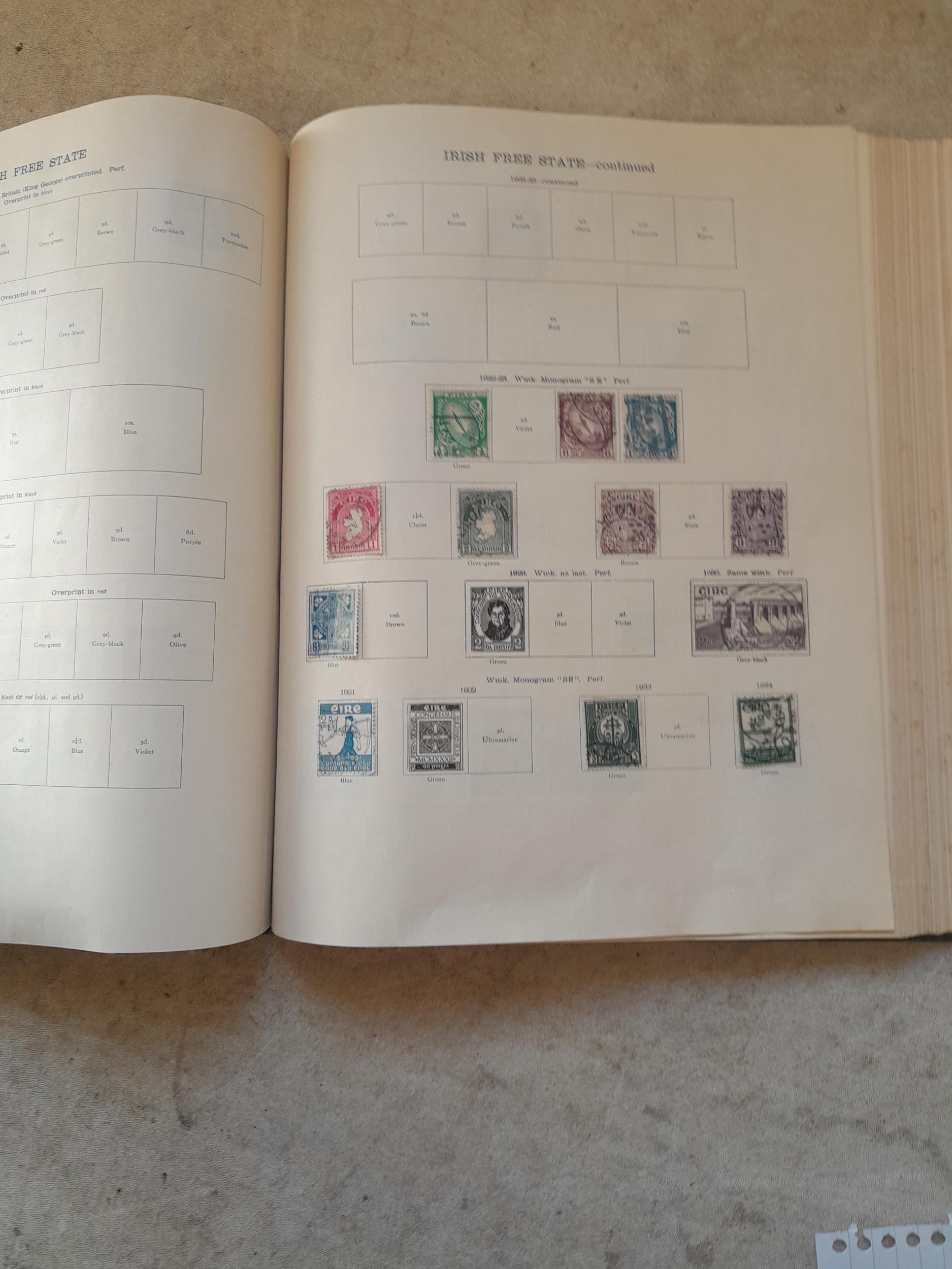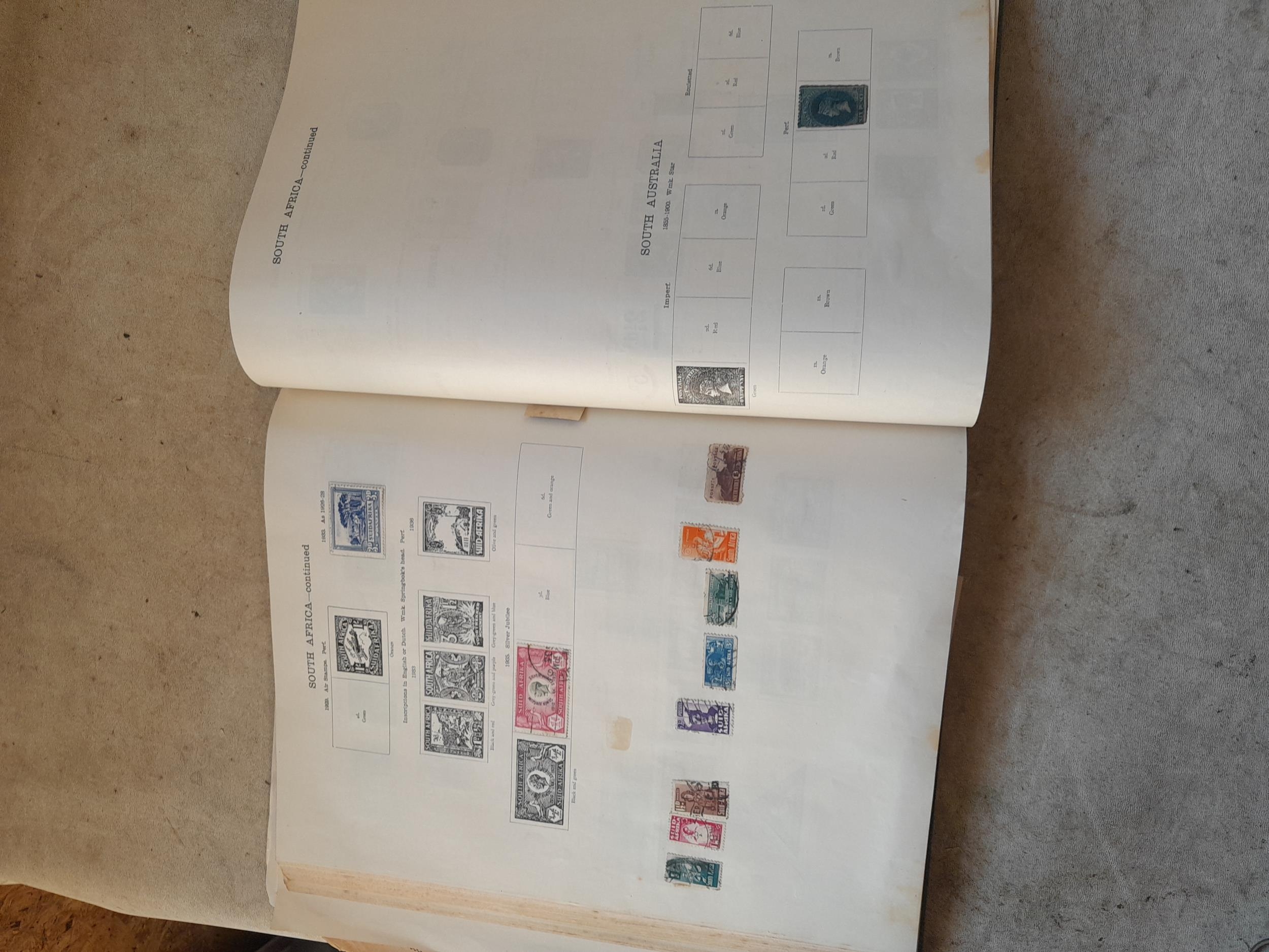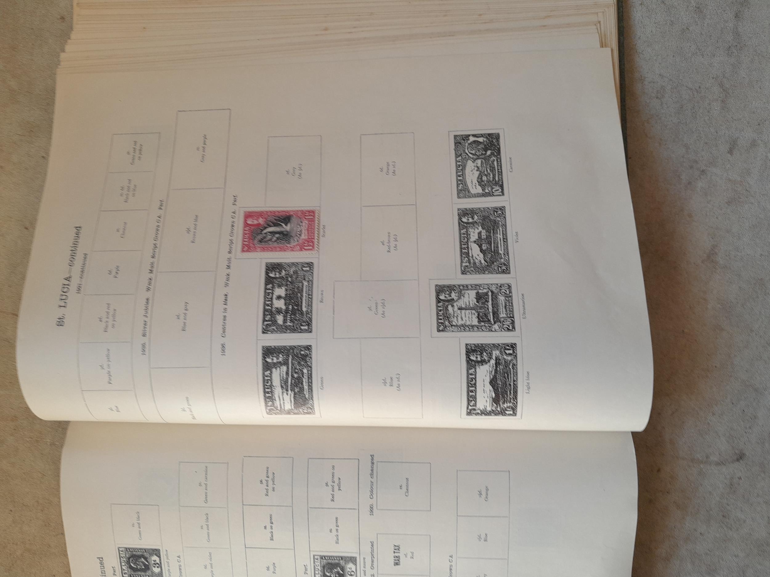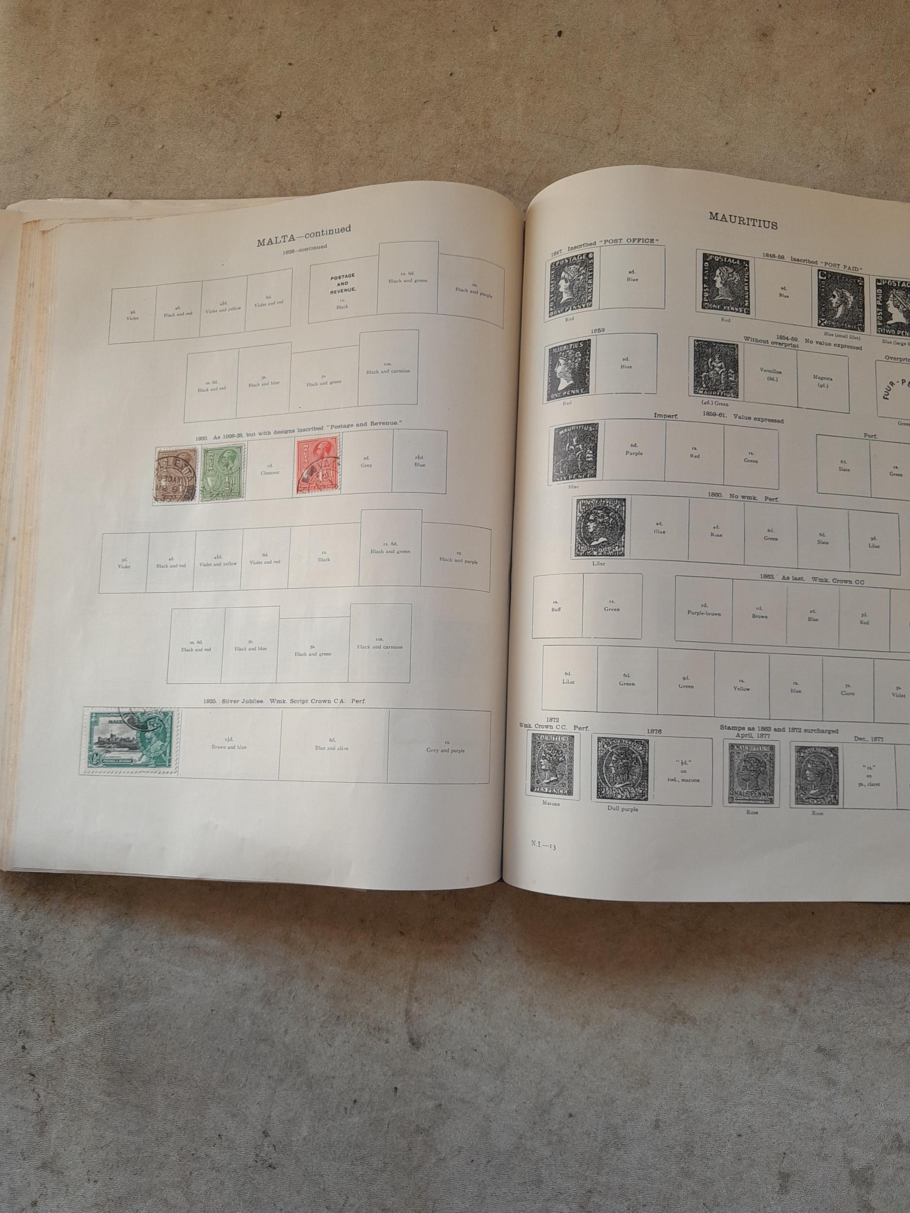 A sparsely filled Ideal Commonwealth Album. an interesting album with earlier stamps sadly let down by poor presentation and condition with some loose stamps and pages : Early Canada SG 39 & SG 60 12 1/2 C blue with faults, Cape of Good Hope Triangle with faults, interesting Fiji and Alwar, GB SG 183 with faults, trimmed and corner damage, QV 10 Shilling with Guernsey postmark , GB reds and blues, part Jubilee set, Edward VII and Seahorse