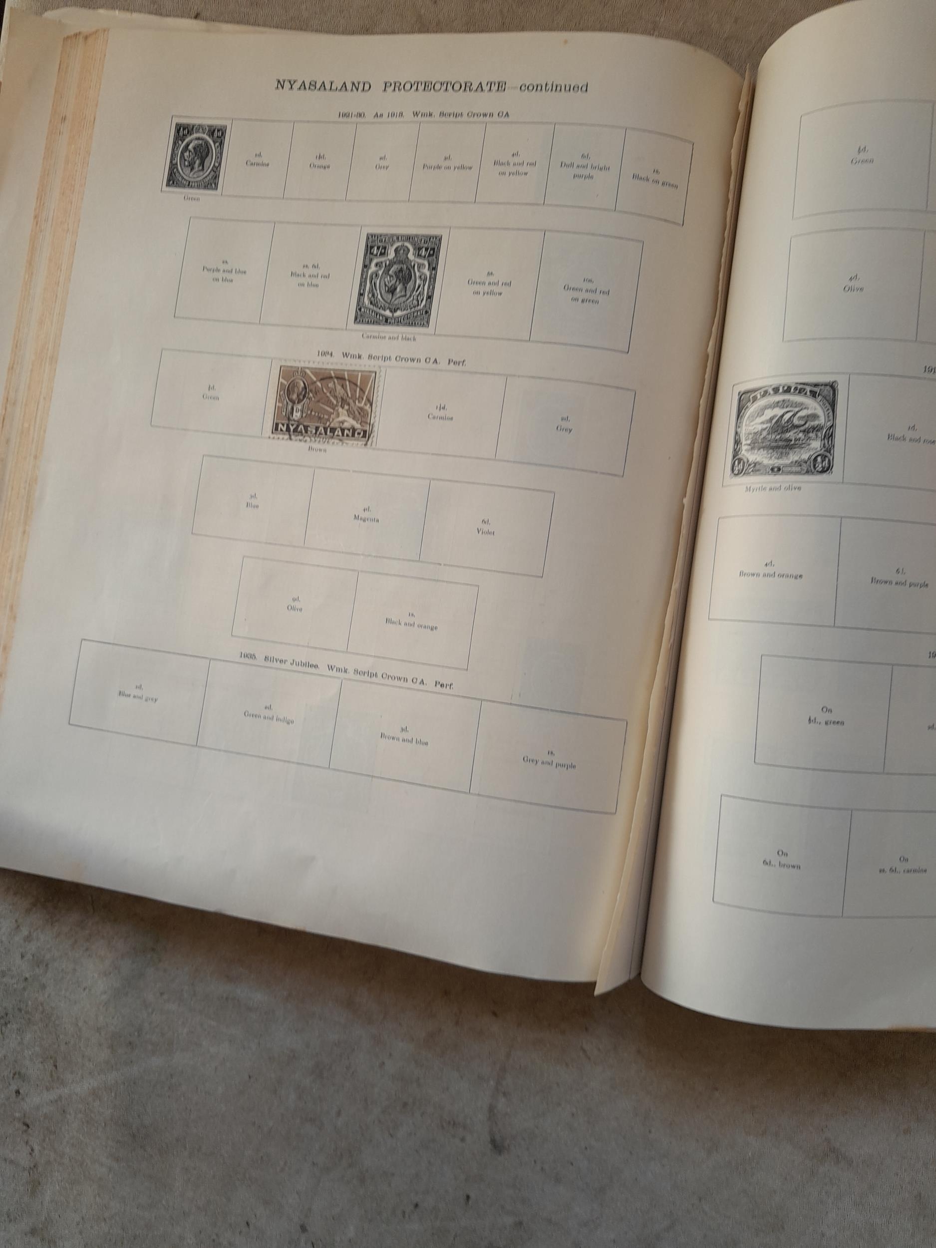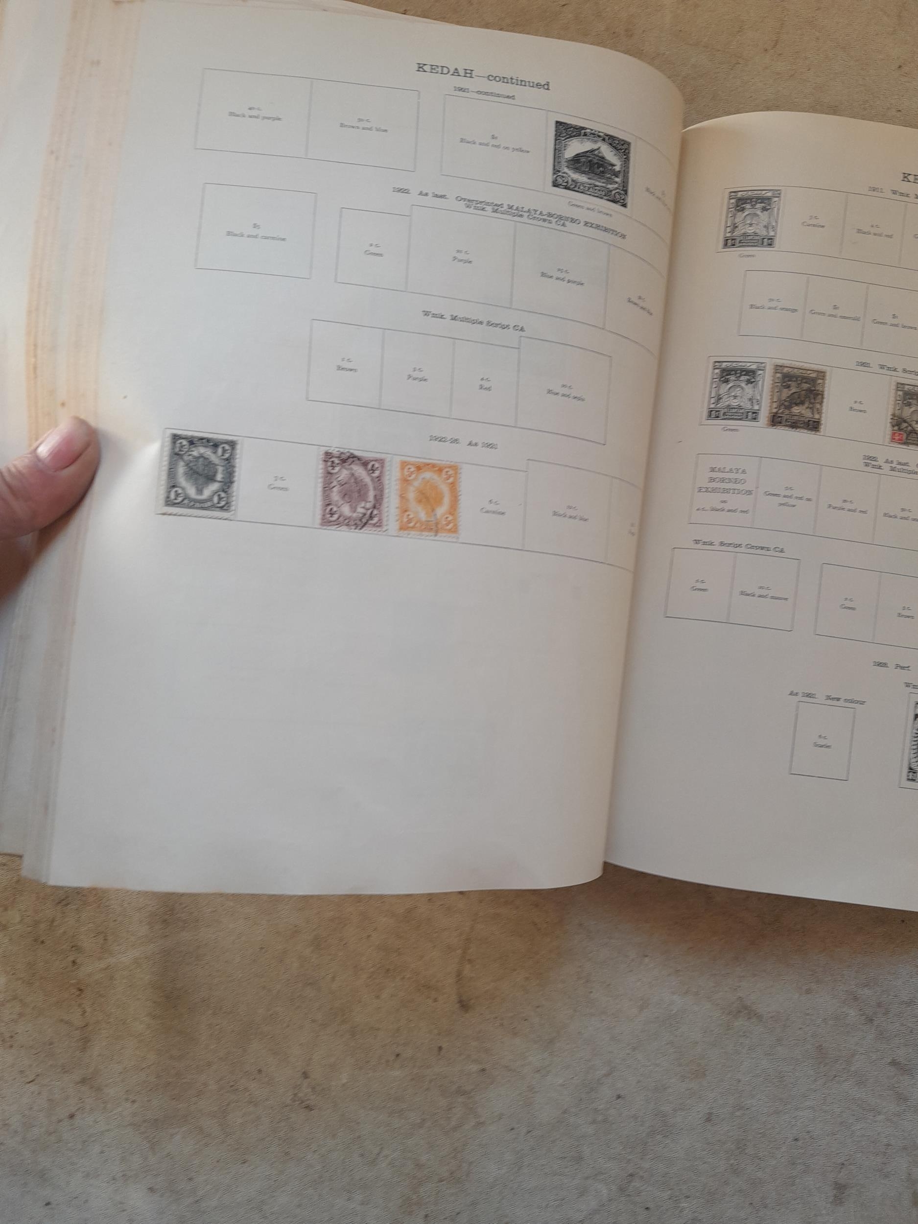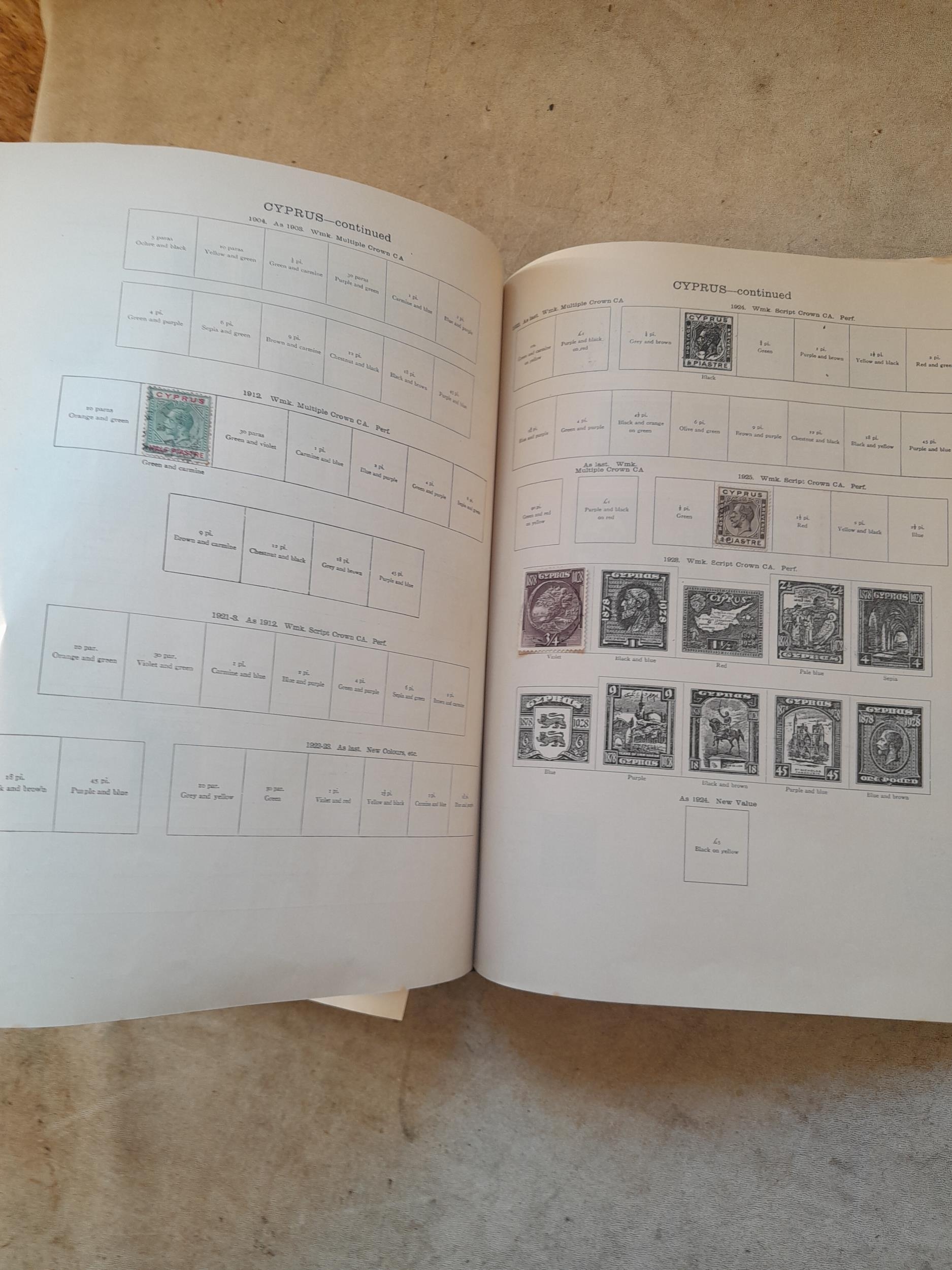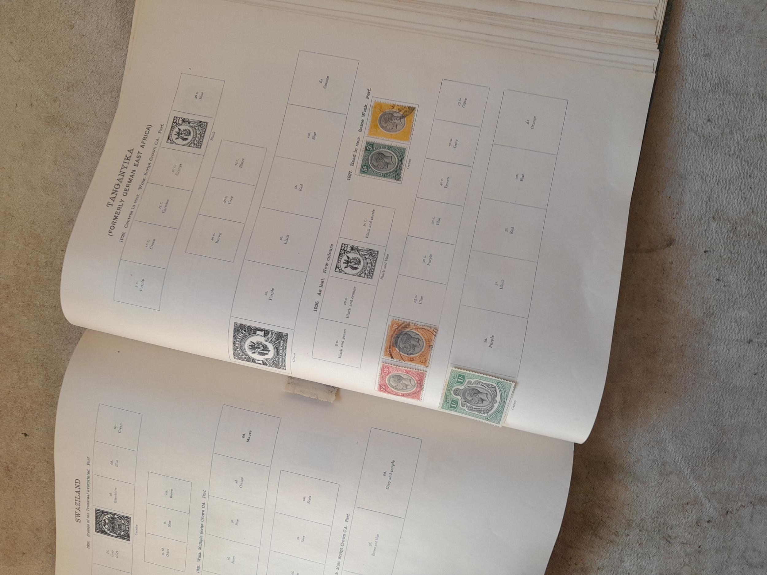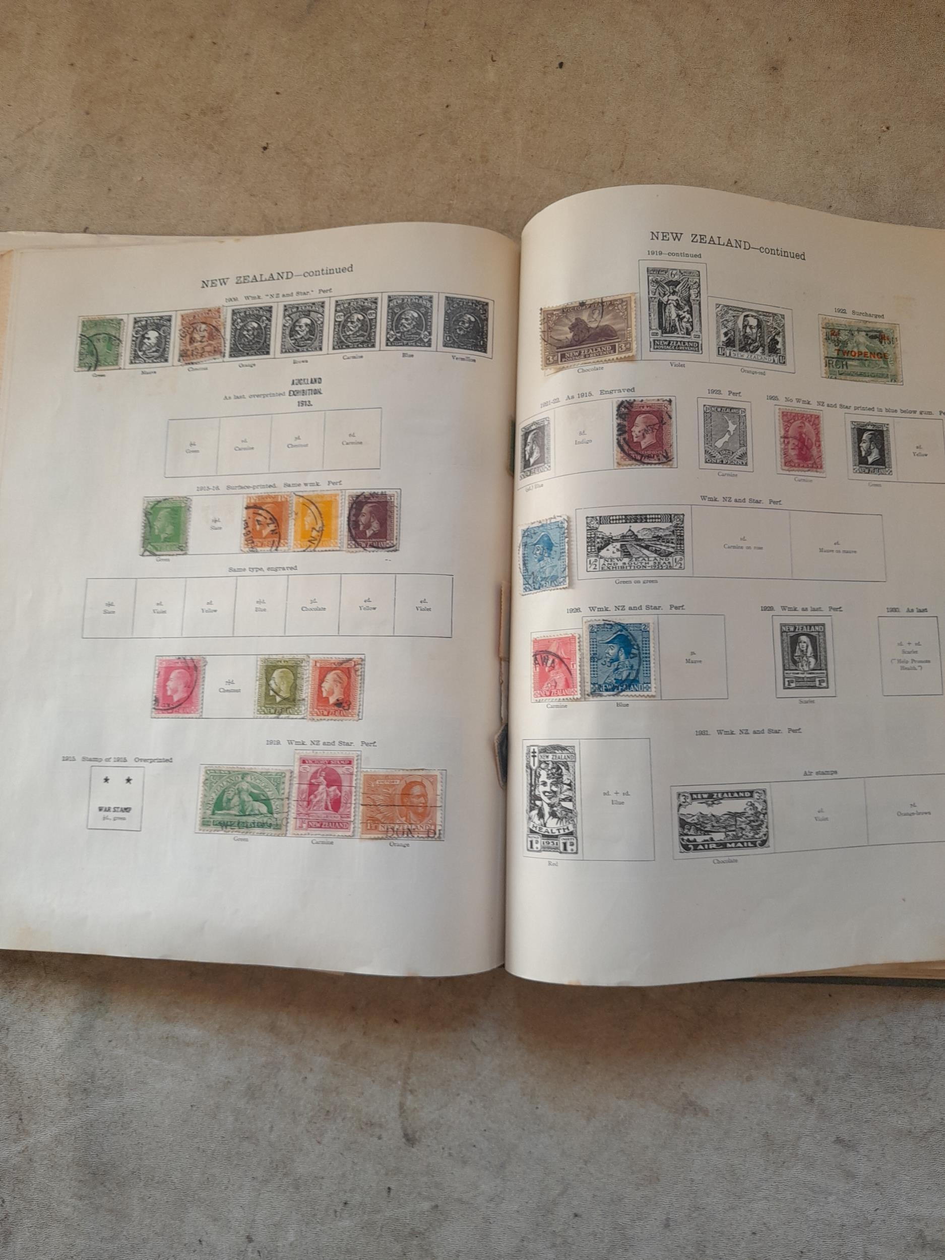 A sparsely filled Ideal Commonwealth Album. an interesting album with earlier stamps sadly let down by poor presentation and condition with some loose stamps and pages : Early Canada SG 39 & SG 60 12 1/2 C blue with faults, Cape of Good Hope Triangle with faults, interesting Fiji and Alwar, GB SG 183 with faults, trimmed and corner damage, QV 10 Shilling with Guernsey postmark , GB reds and blues, part Jubilee set, Edward VII and Seahorse