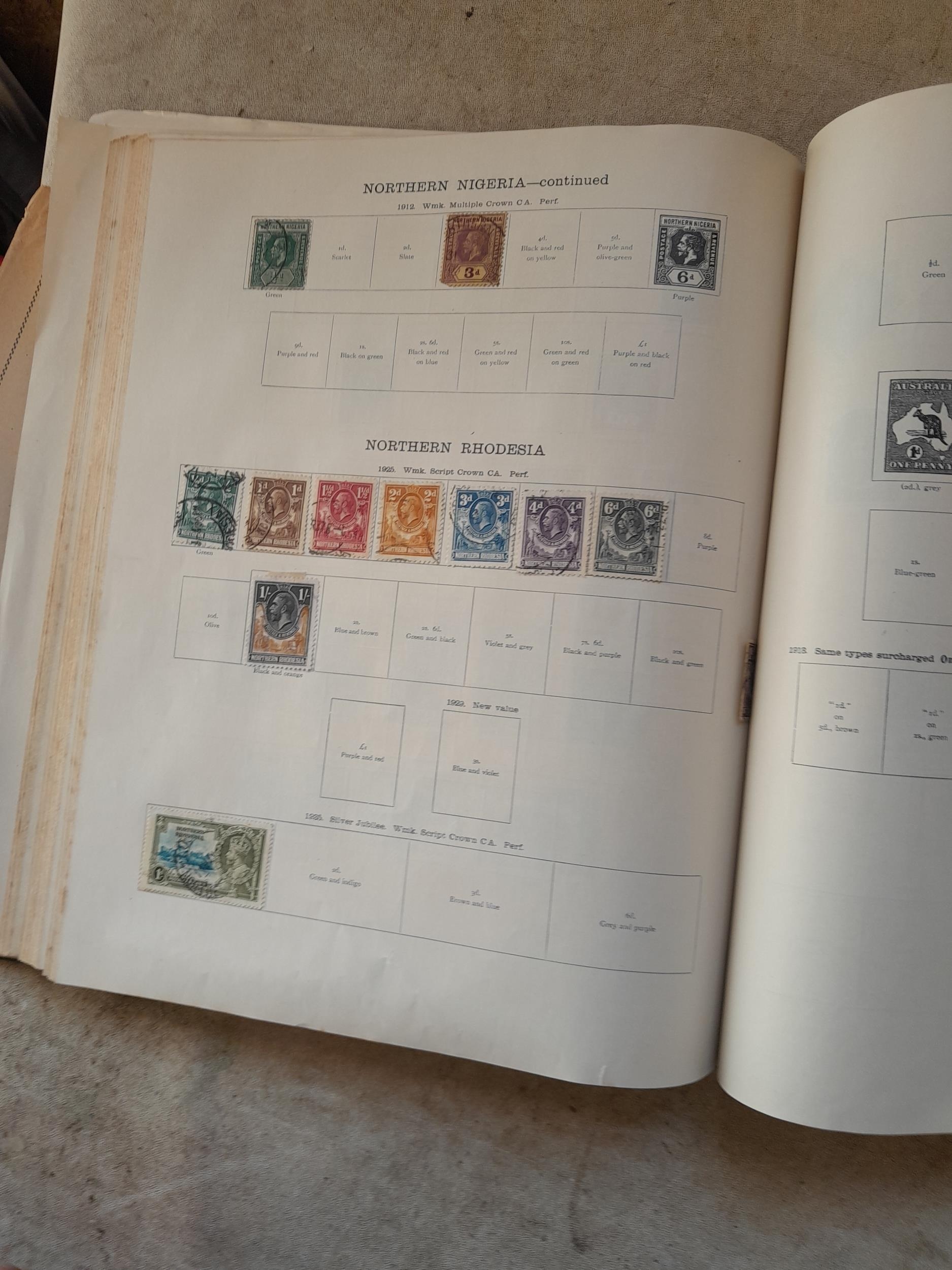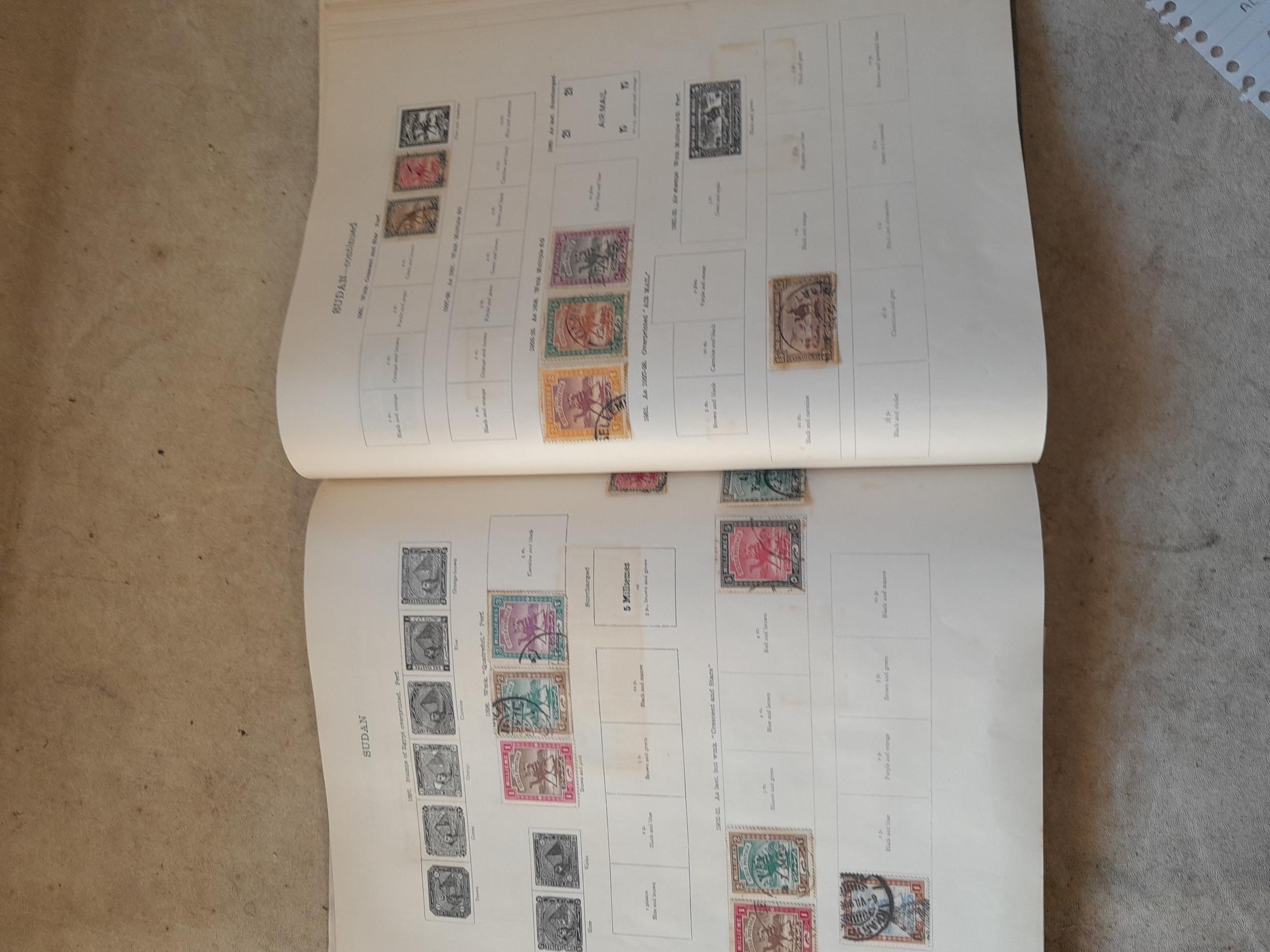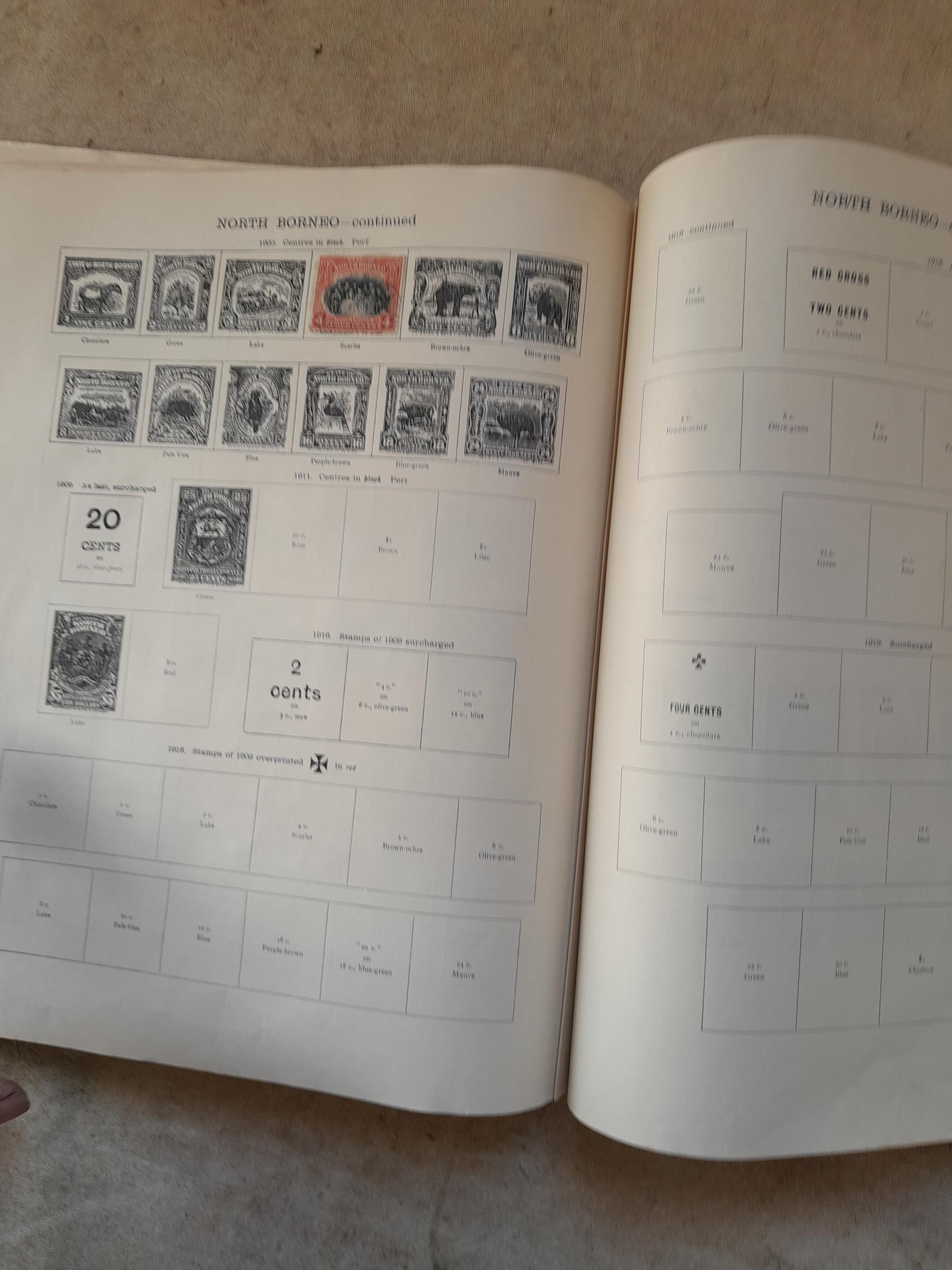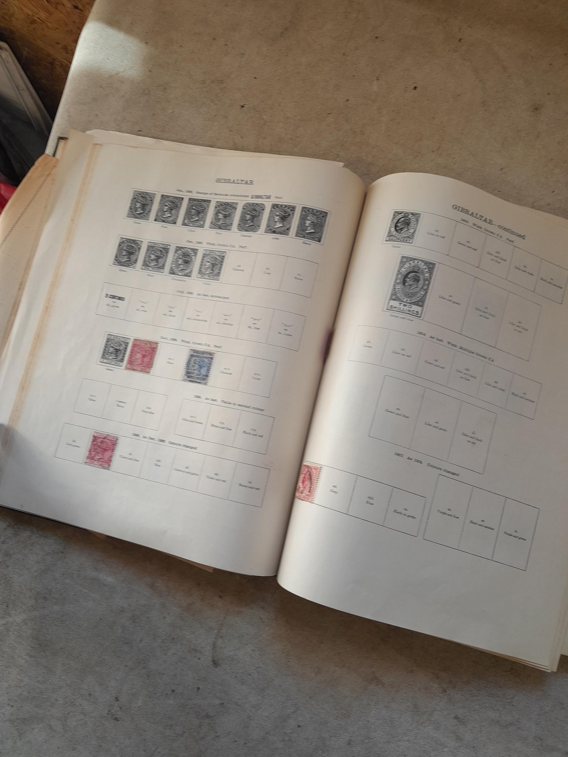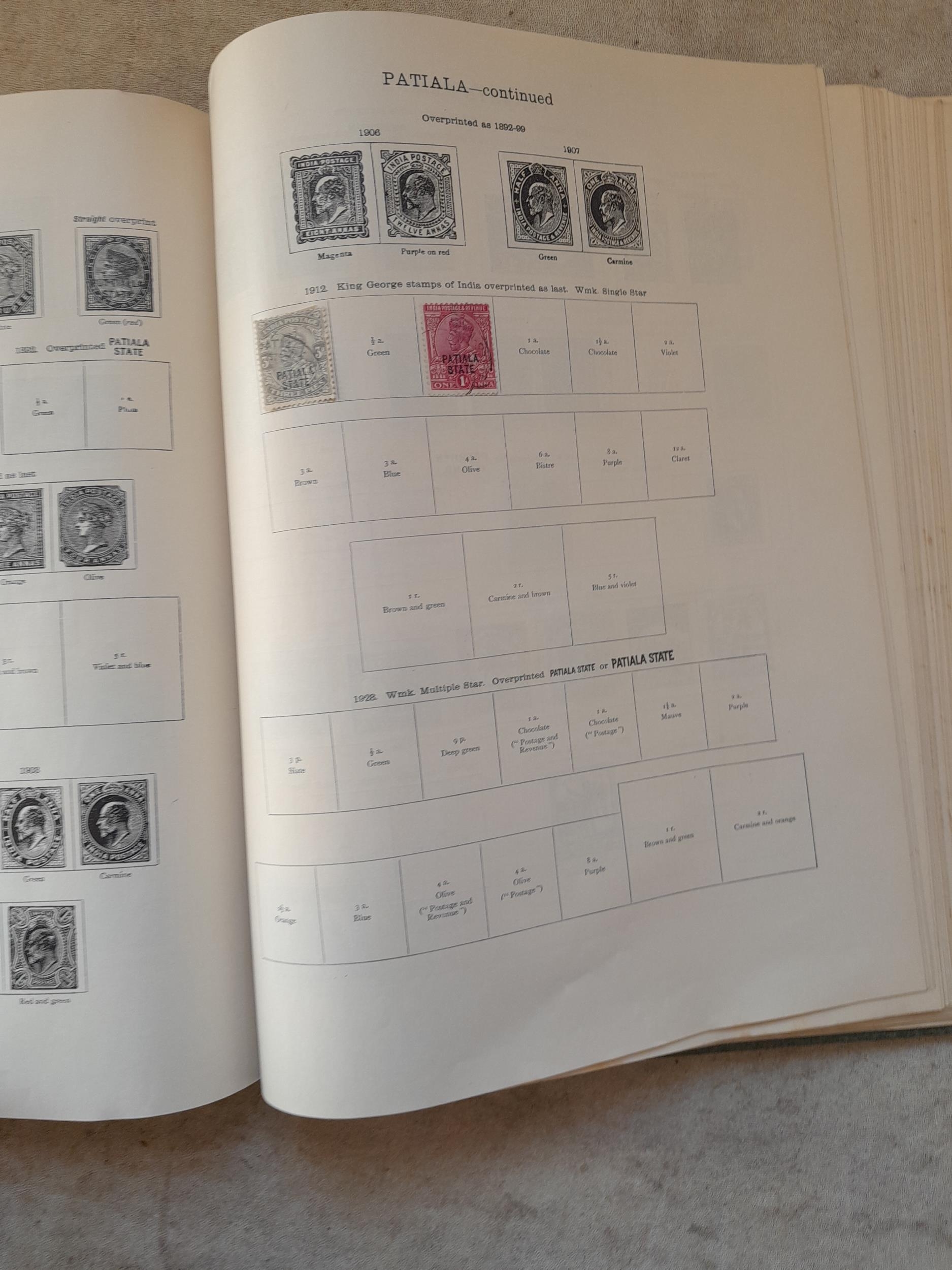 A sparsely filled Ideal Commonwealth Album. an interesting album with earlier stamps sadly let down by poor presentation and condition with some loose stamps and pages : Early Canada SG 39 & SG 60 12 1/2 C blue with faults, Cape of Good Hope Triangle with faults, interesting Fiji and Alwar, GB SG 183 with faults, trimmed and corner damage, QV 10 Shilling with Guernsey postmark , GB reds and blues, part Jubilee set, Edward VII and Seahorse
