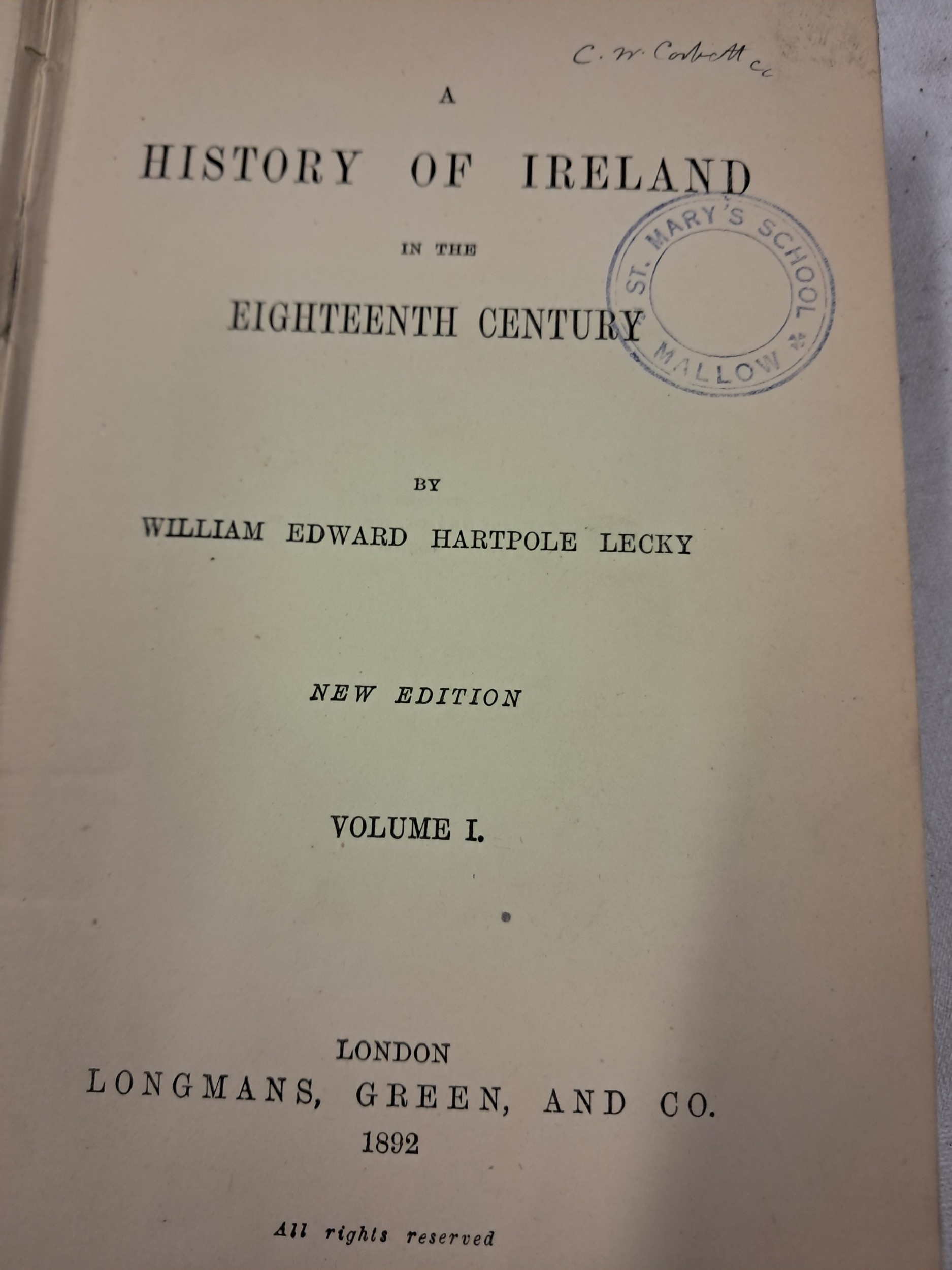 Lecky "History of Ireland" in the 18th Century" - 5 Vols. Published 1892 - New Edition