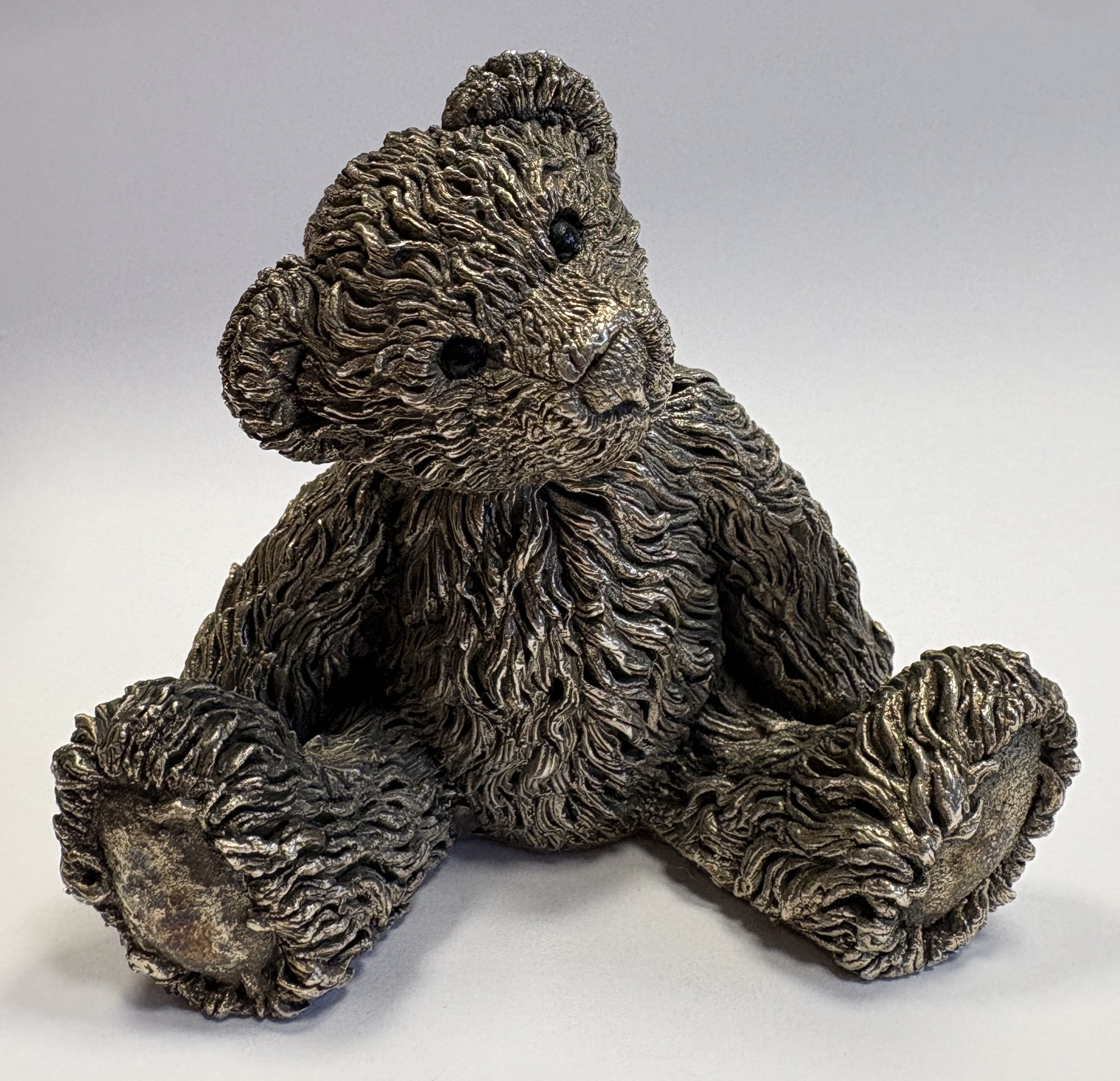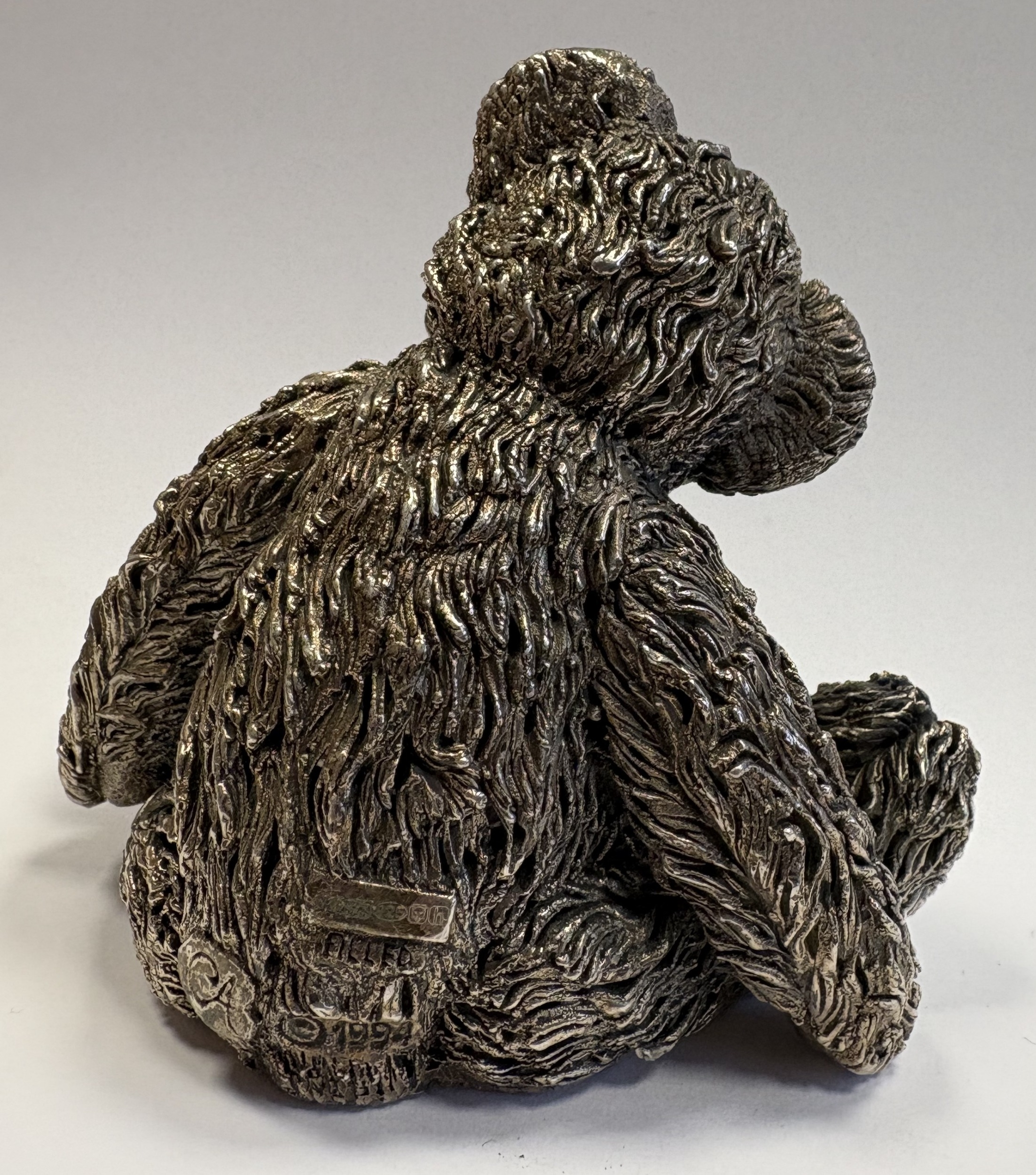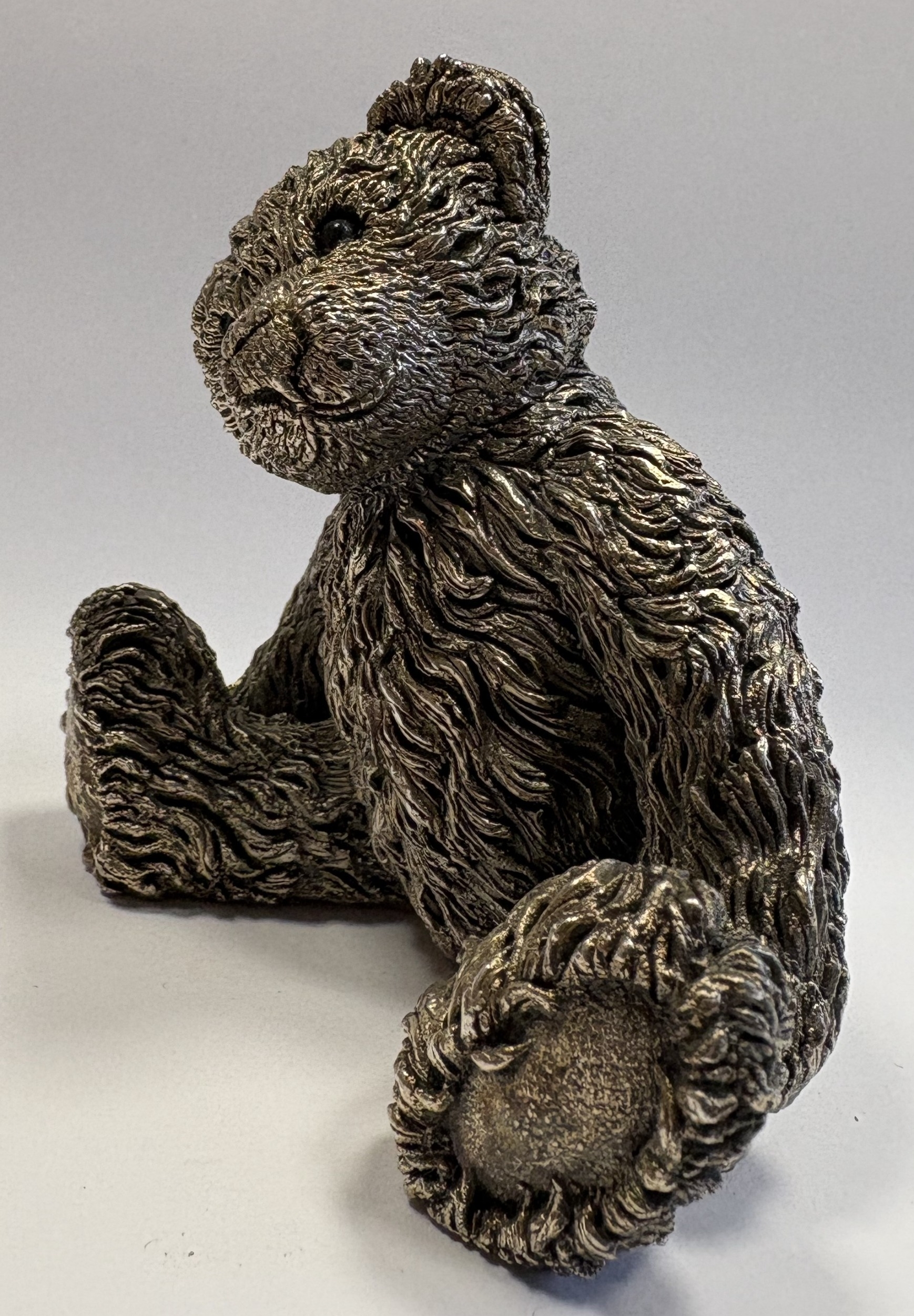 A silver figure of a teddy bear with textured body. London. Approx. 126 grams of gross weight. Est. £20 - £30.