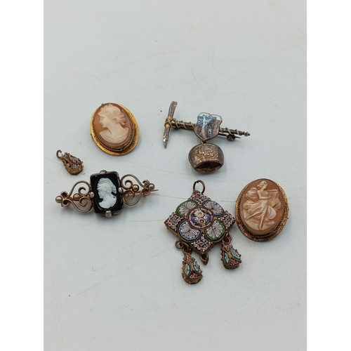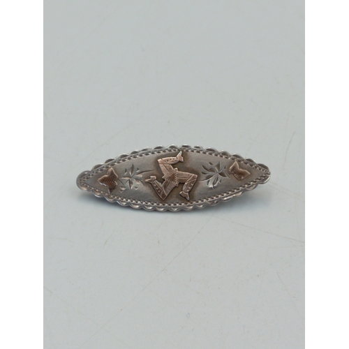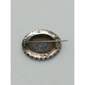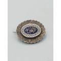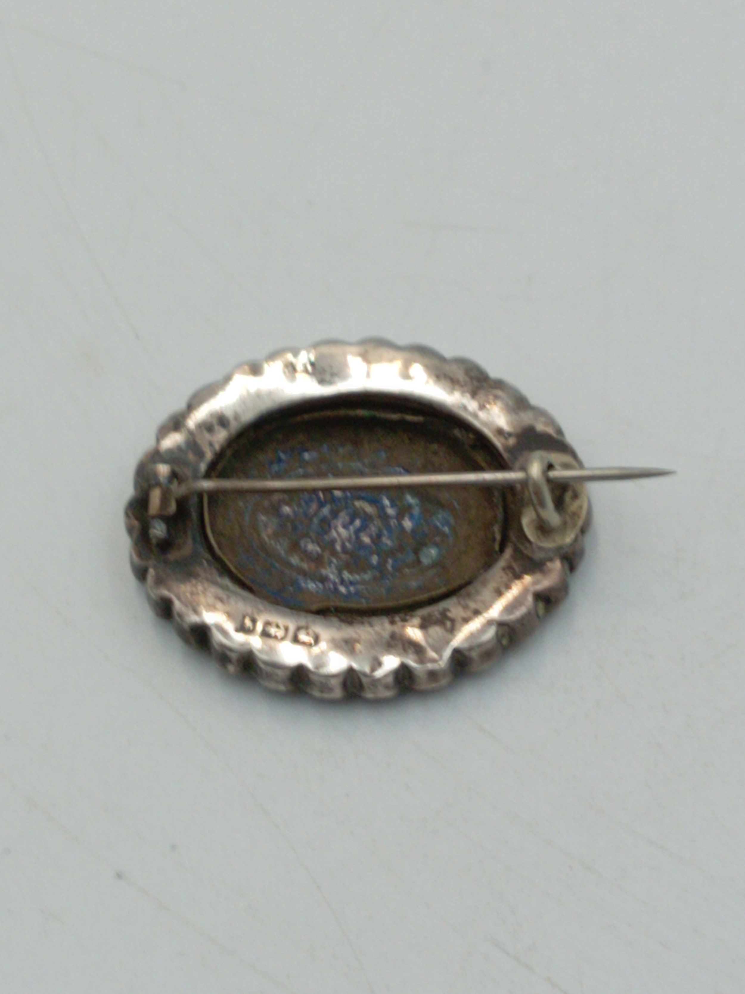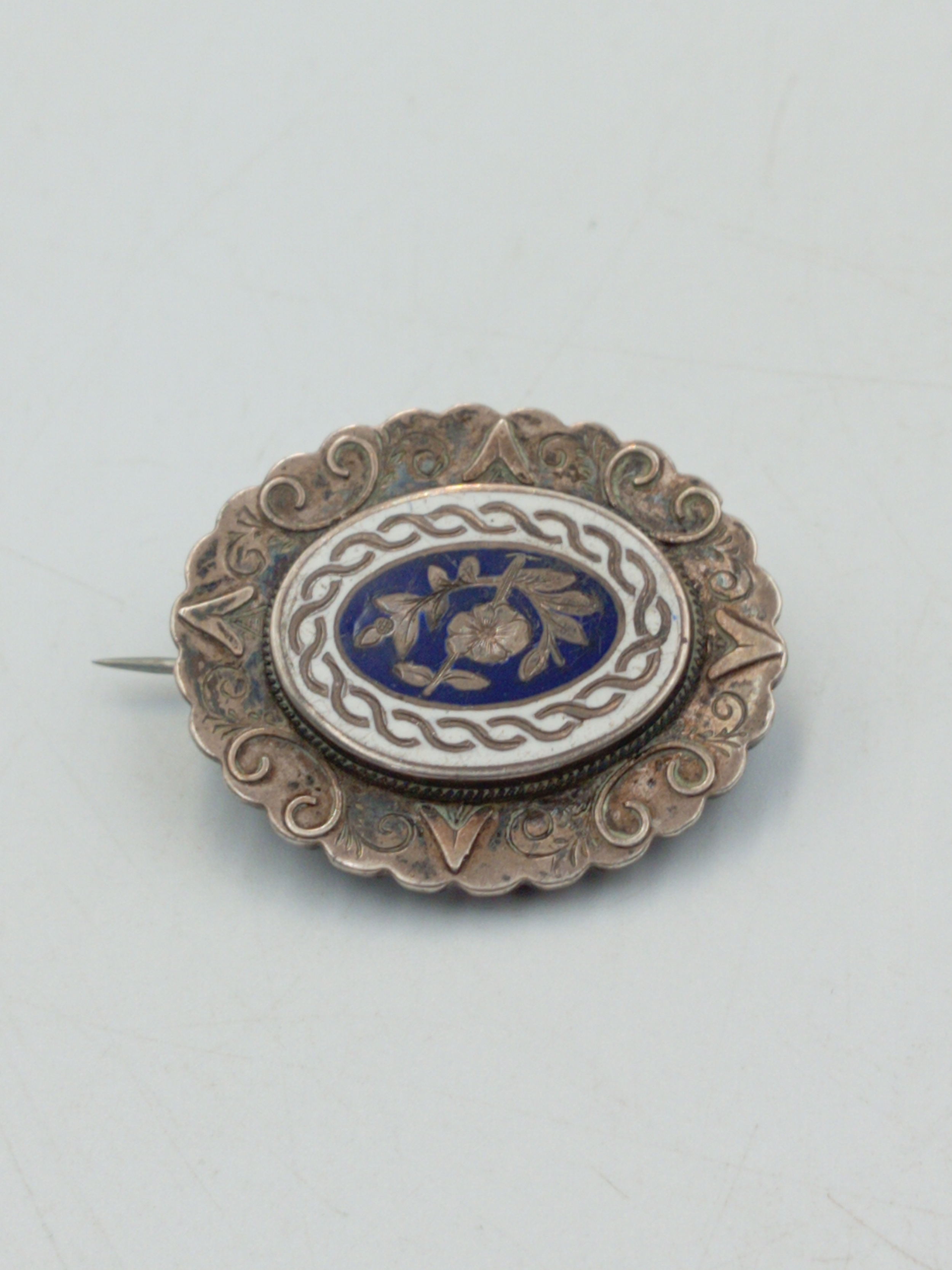 An antique sterling silver and enamel floral pin brooch with counter enamel roundel