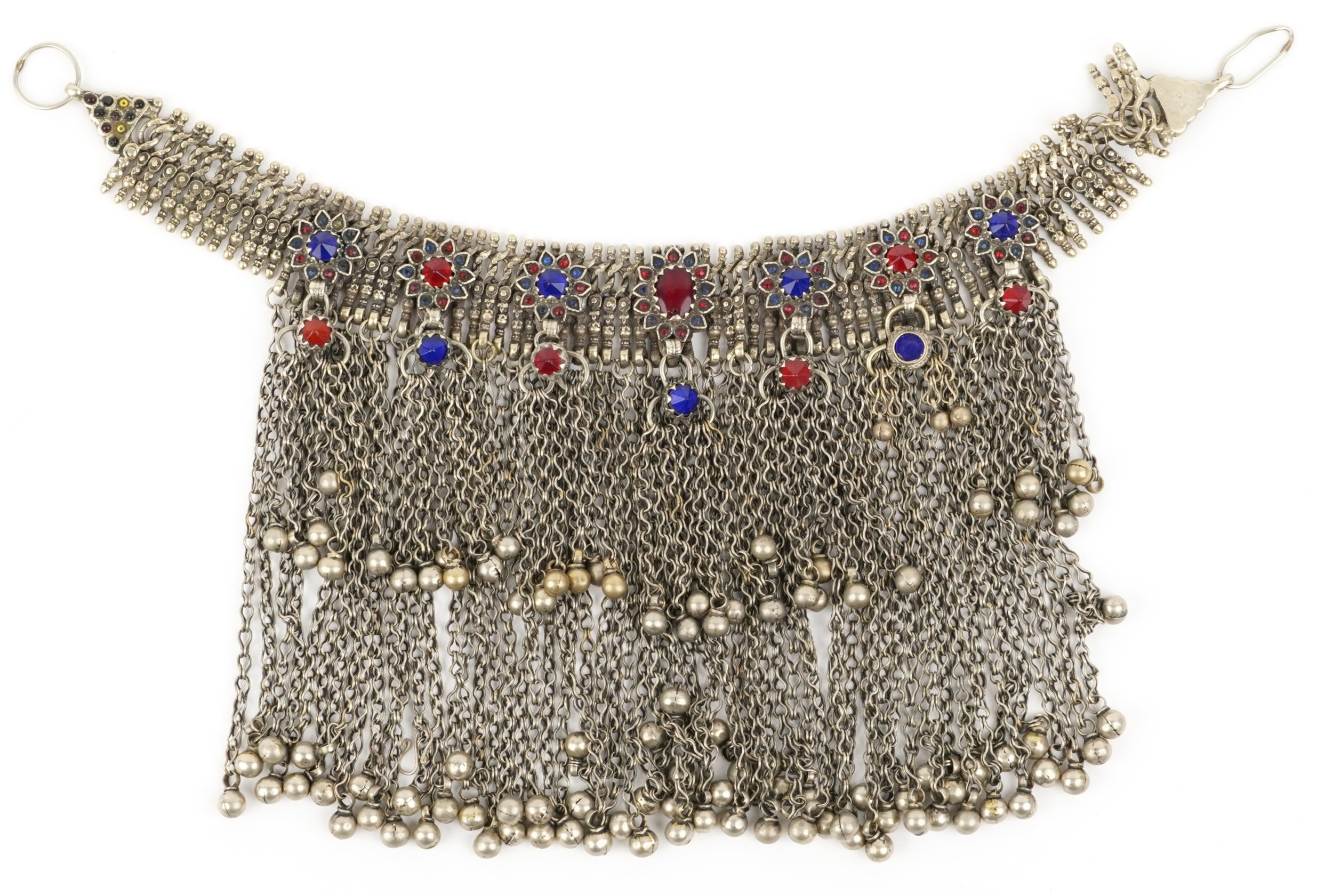 A 20th century Afghan Koochi choker/necklace, with inset coloured stones, 36cm in length.