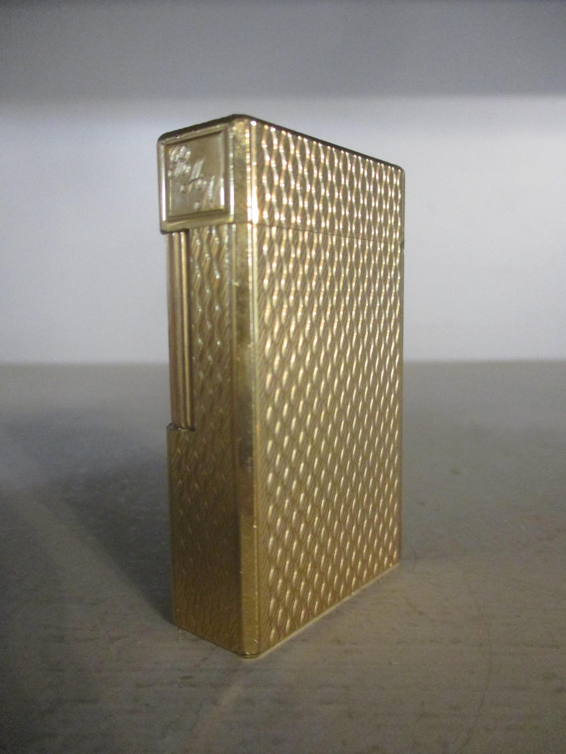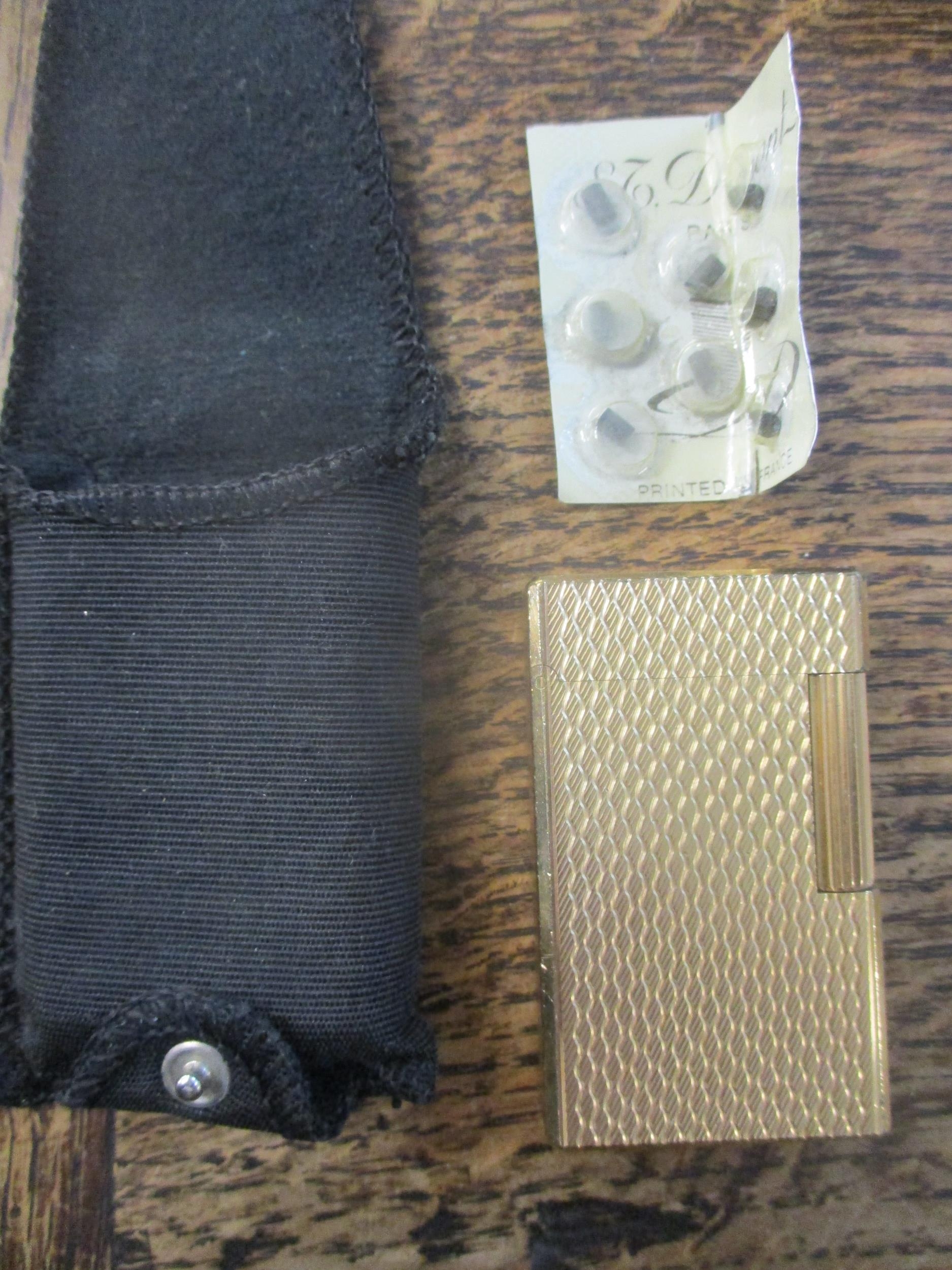 An S T Dupont gold plated lighter in slip case with spare flints Location: Cab