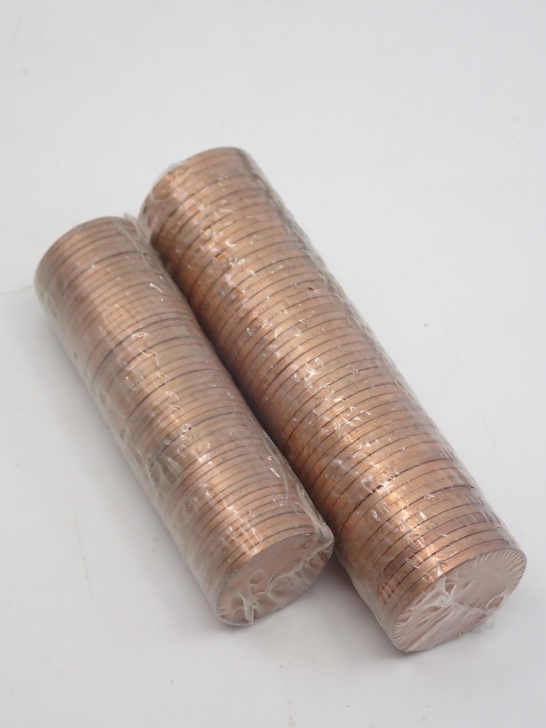 A sealed roll of Irish pennies 1971 and a sealed roll of Irish half pennies 1971.