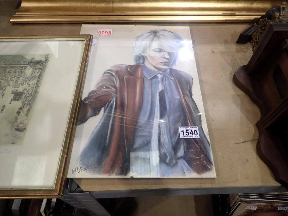 Original pastel on paper of David Sylvian from the group Japan, 42 x 30 cm. Not available for in-house P&P