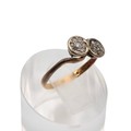 18ct and platinum set diamond ring the mont with circular twist each set with seven old cut diamonds size L, weight 2.1 grams.