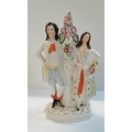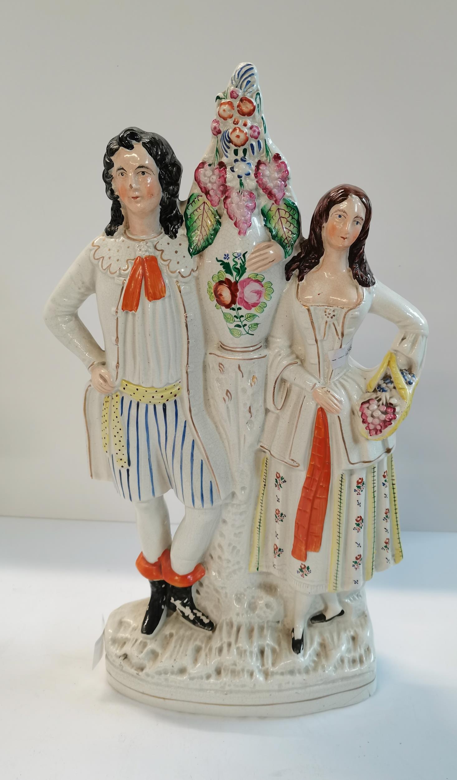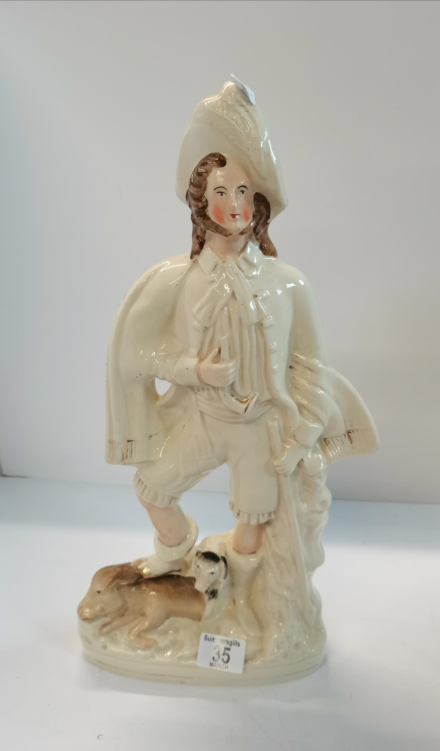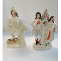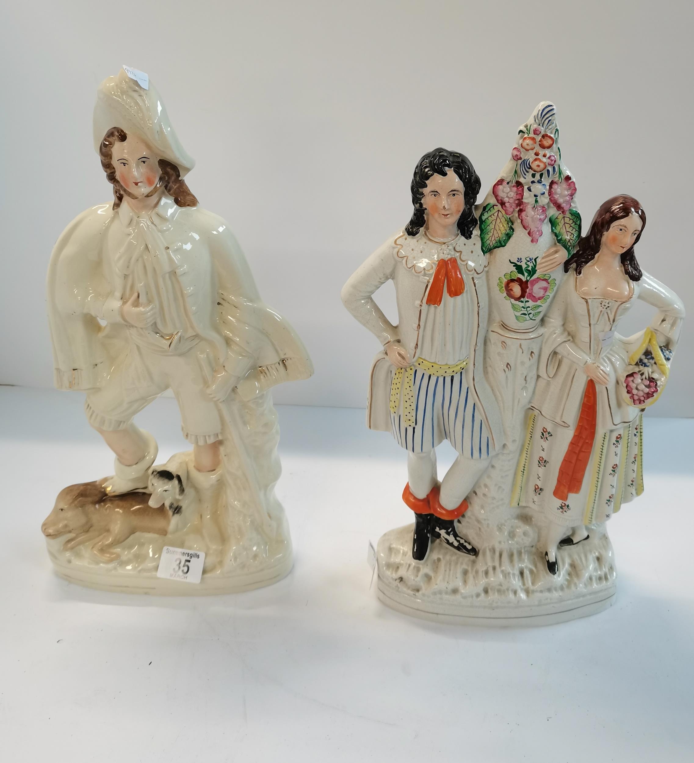 Antique Victorian Staffordshire flatback figures - couple and figurine gentleman with dogs VGC