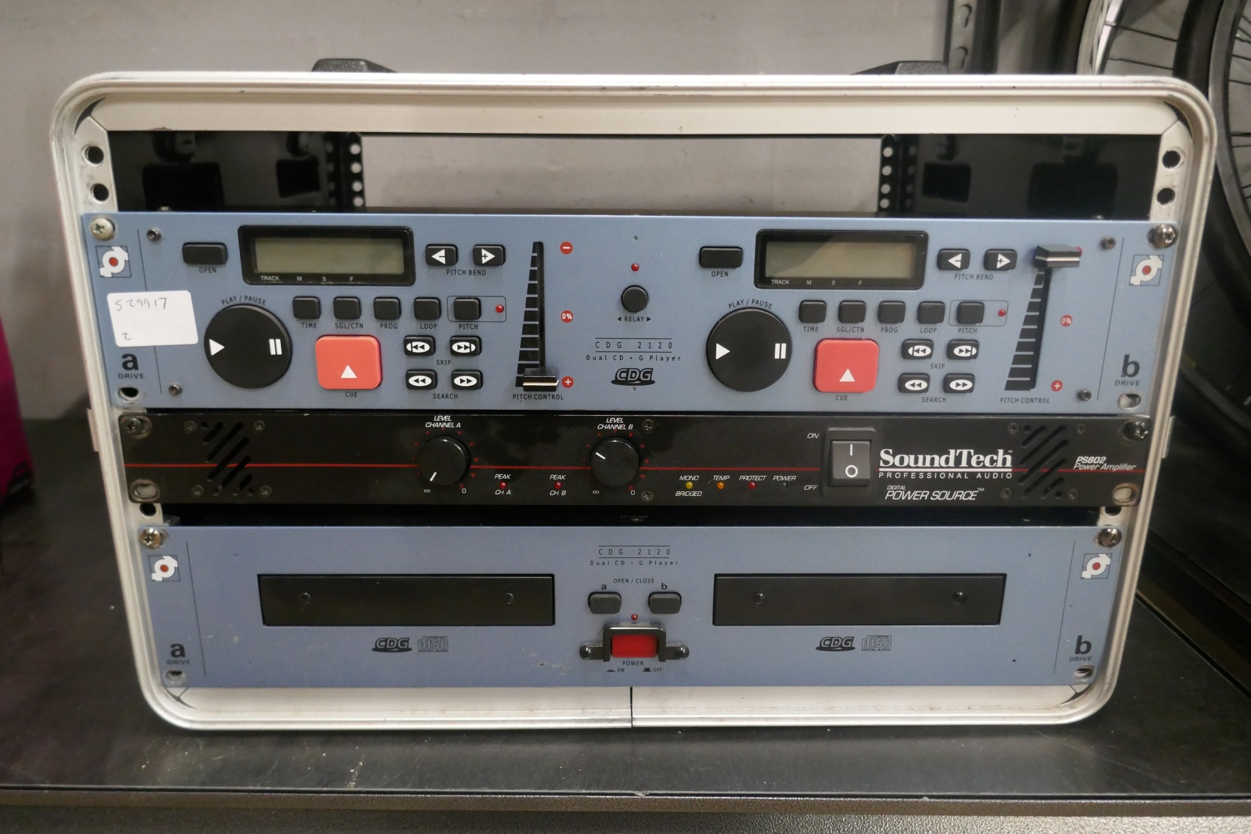 A Soundtech Professional Audio PS802 power amplifier with a CDG-2120 dual CD player** This item failed its PAT test due to having a bent pin on the plug and is sold as scrap only