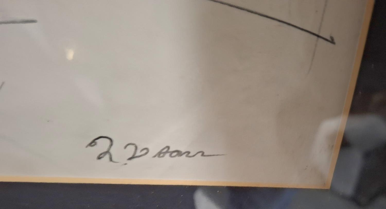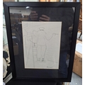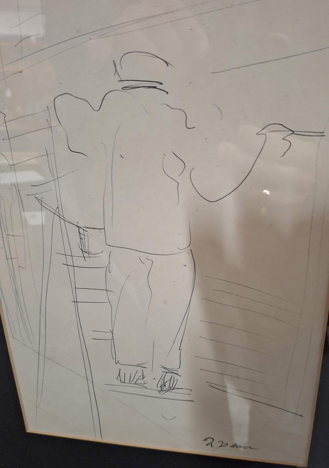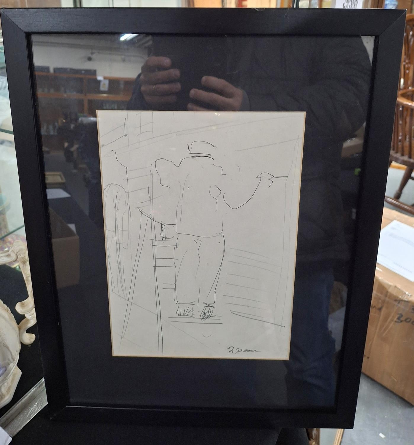 Jeanne Daour (Romania born 1914) ink drawing, self portrait if the artist at work, framed and glazed
