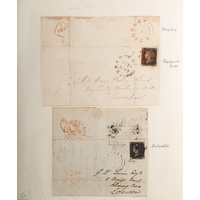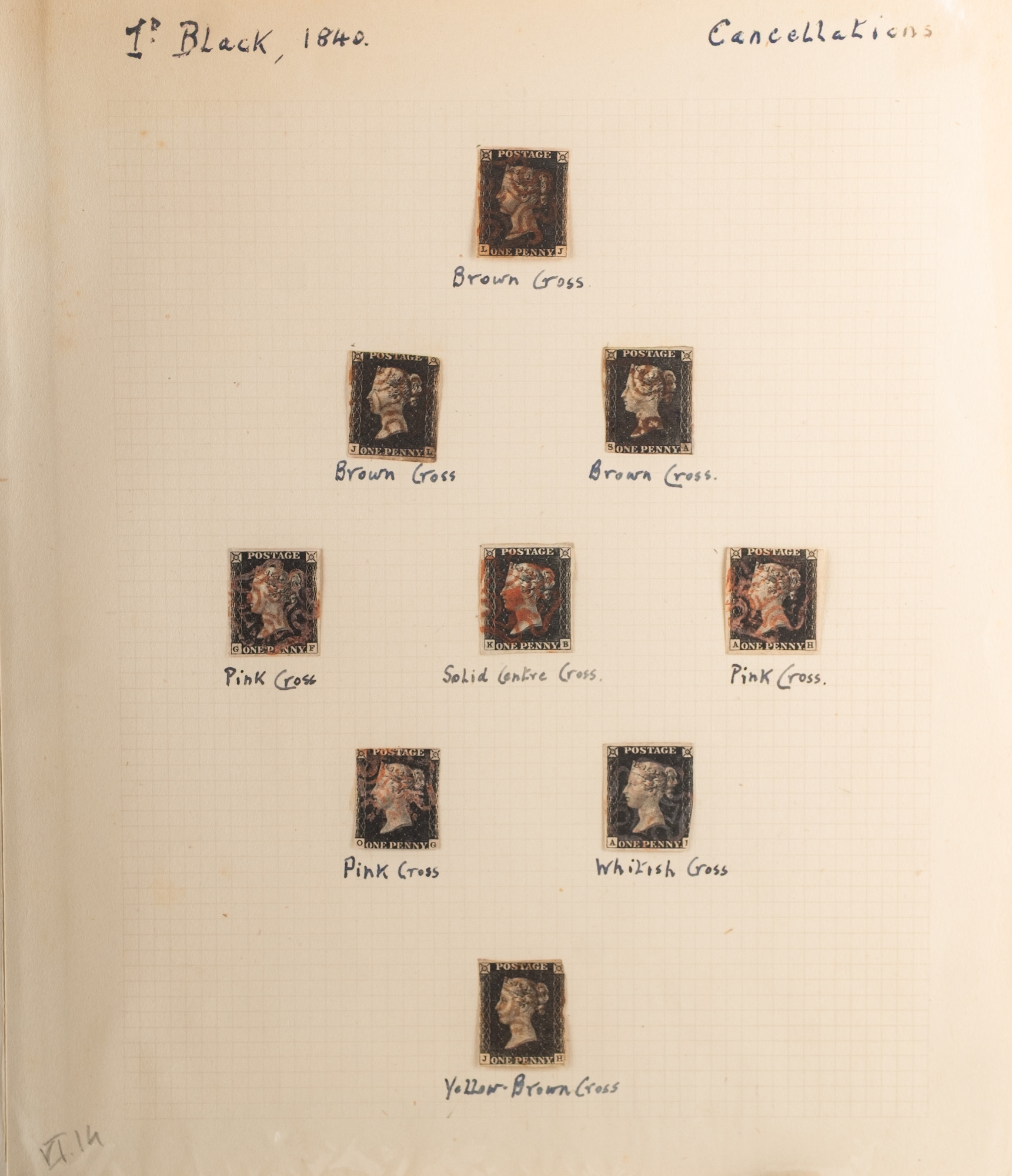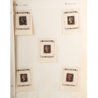 Great Britain. 1840 1d Blacks x 9 on album page with different colour Maltese crosses etc.