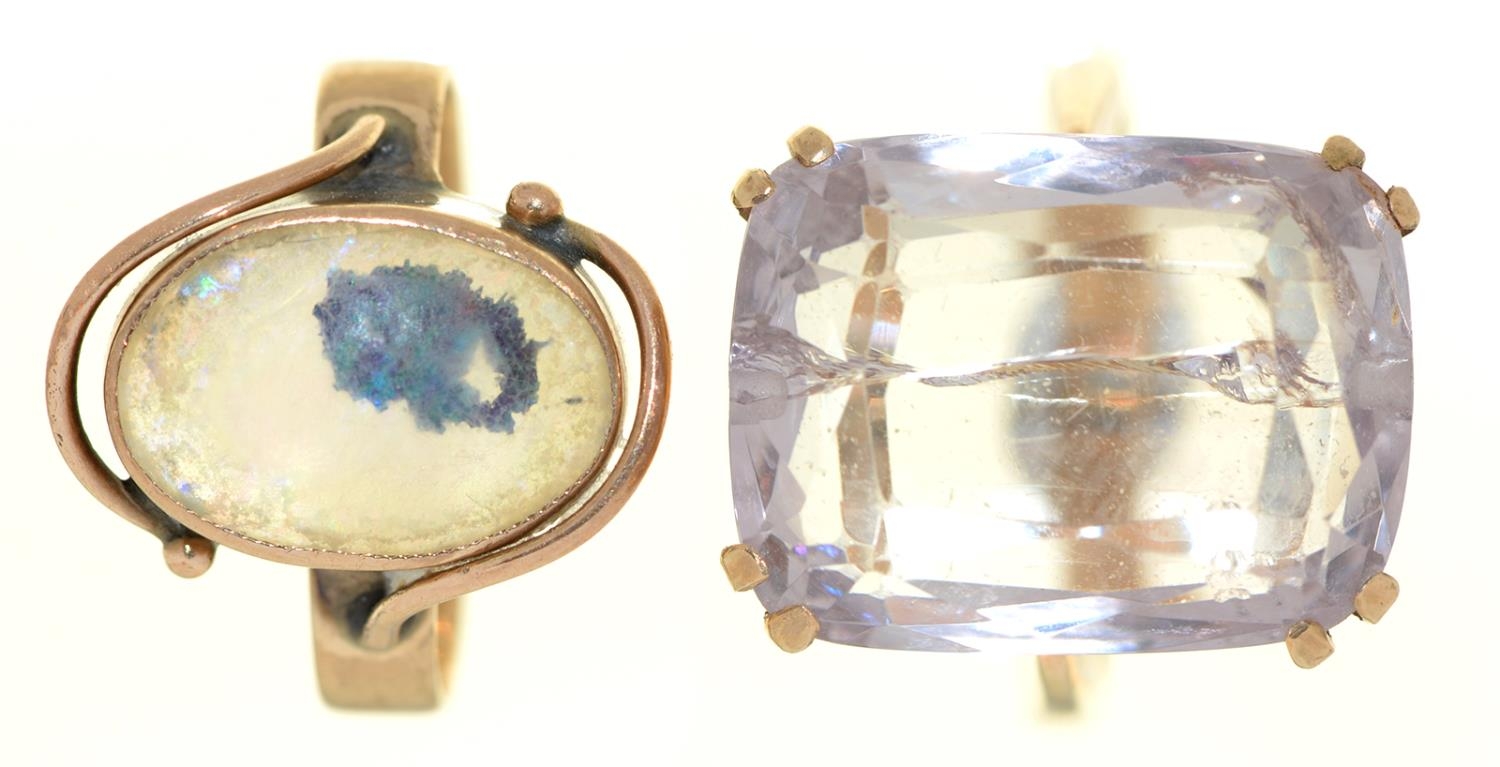 Two gem set rings, in gold marked 9ct or 9ct gold, 10.5g, size K and M