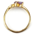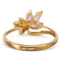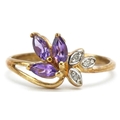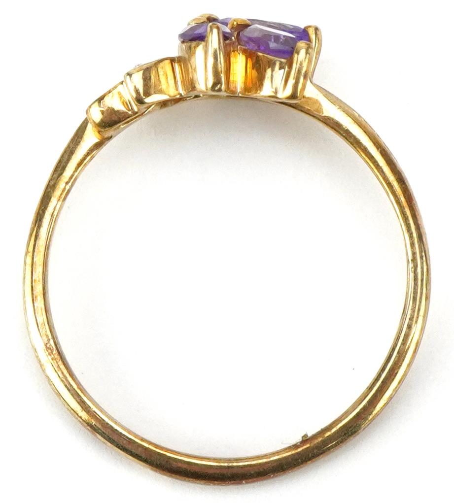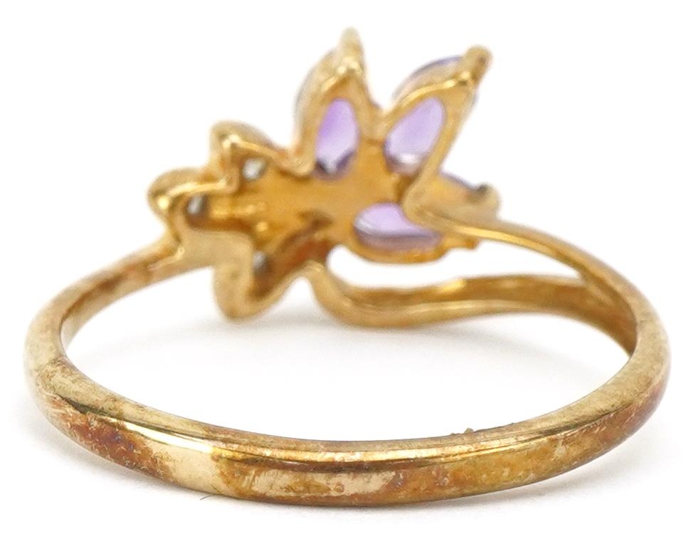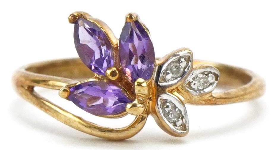 A 9ct gold amethyst and diamond floral dress ring, size N, 1.9g.