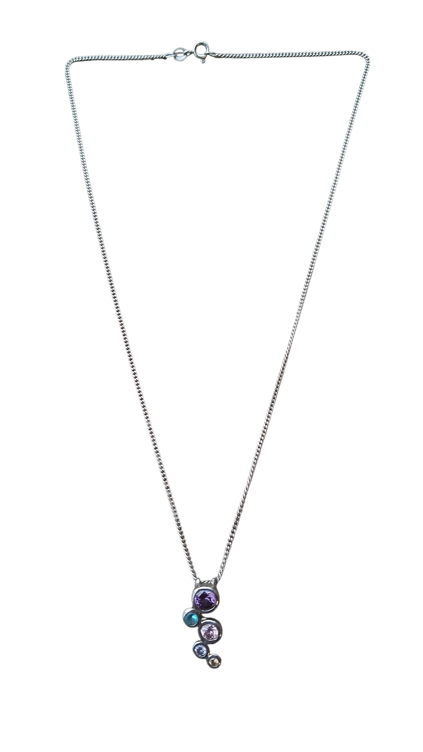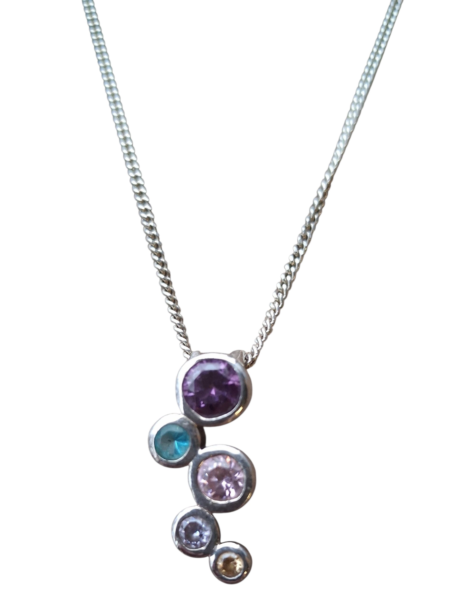 A VINTAGE 925 & 5 GEM PENDANT ON 925 SILVER CHAIN