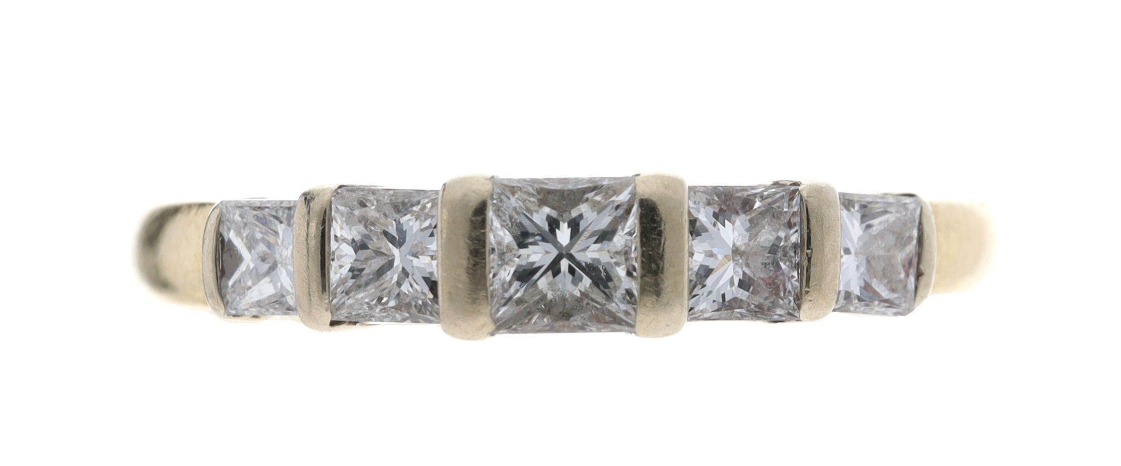 18ct princess-cut five stone diamond ring, 0.50ct approx in total, clarity VS2/SI1, colour G-I, width 3.5mm, 2.7gm, ring size L/M