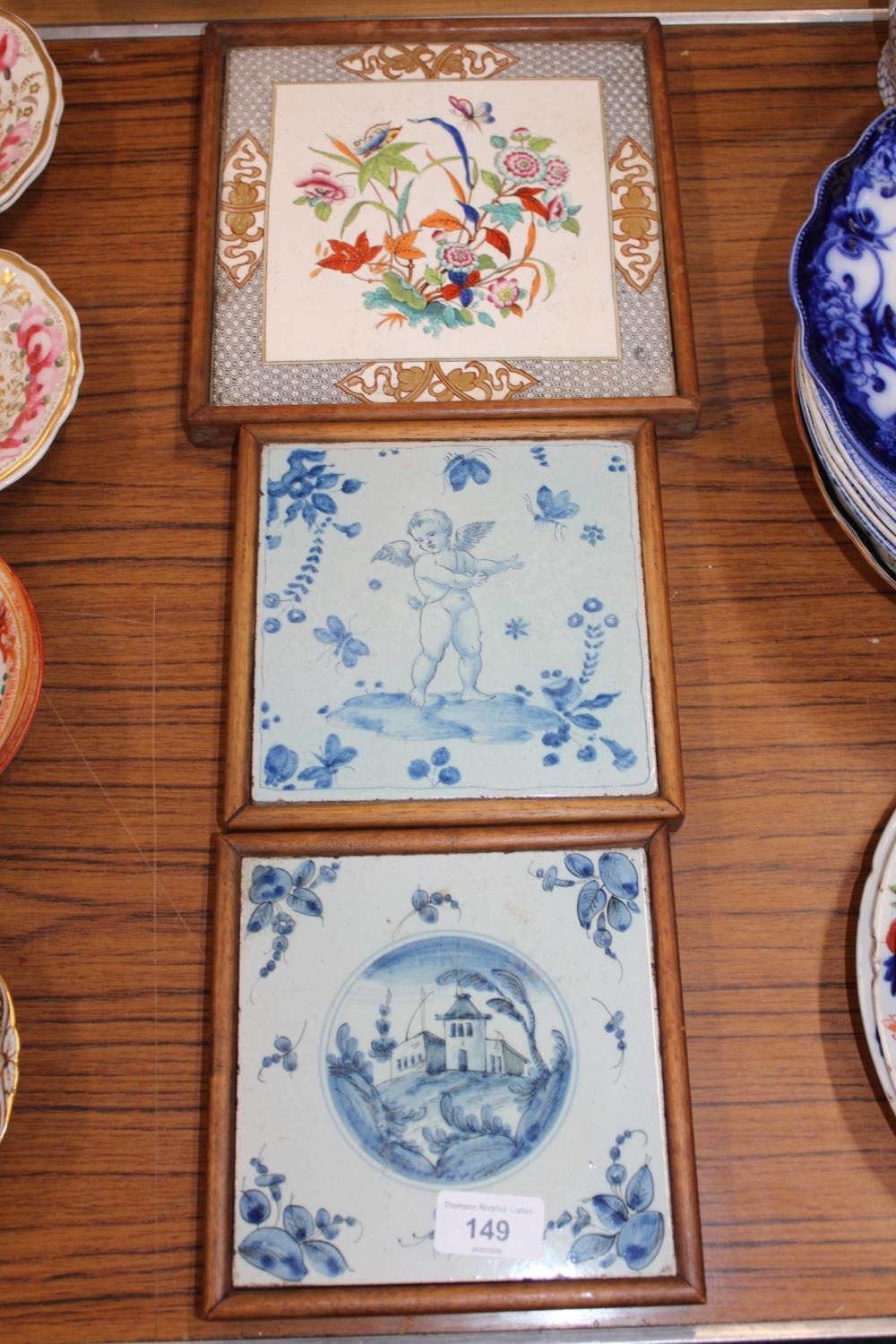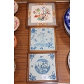 Two Cantagalli Friends tiles, and a larger floral tile.