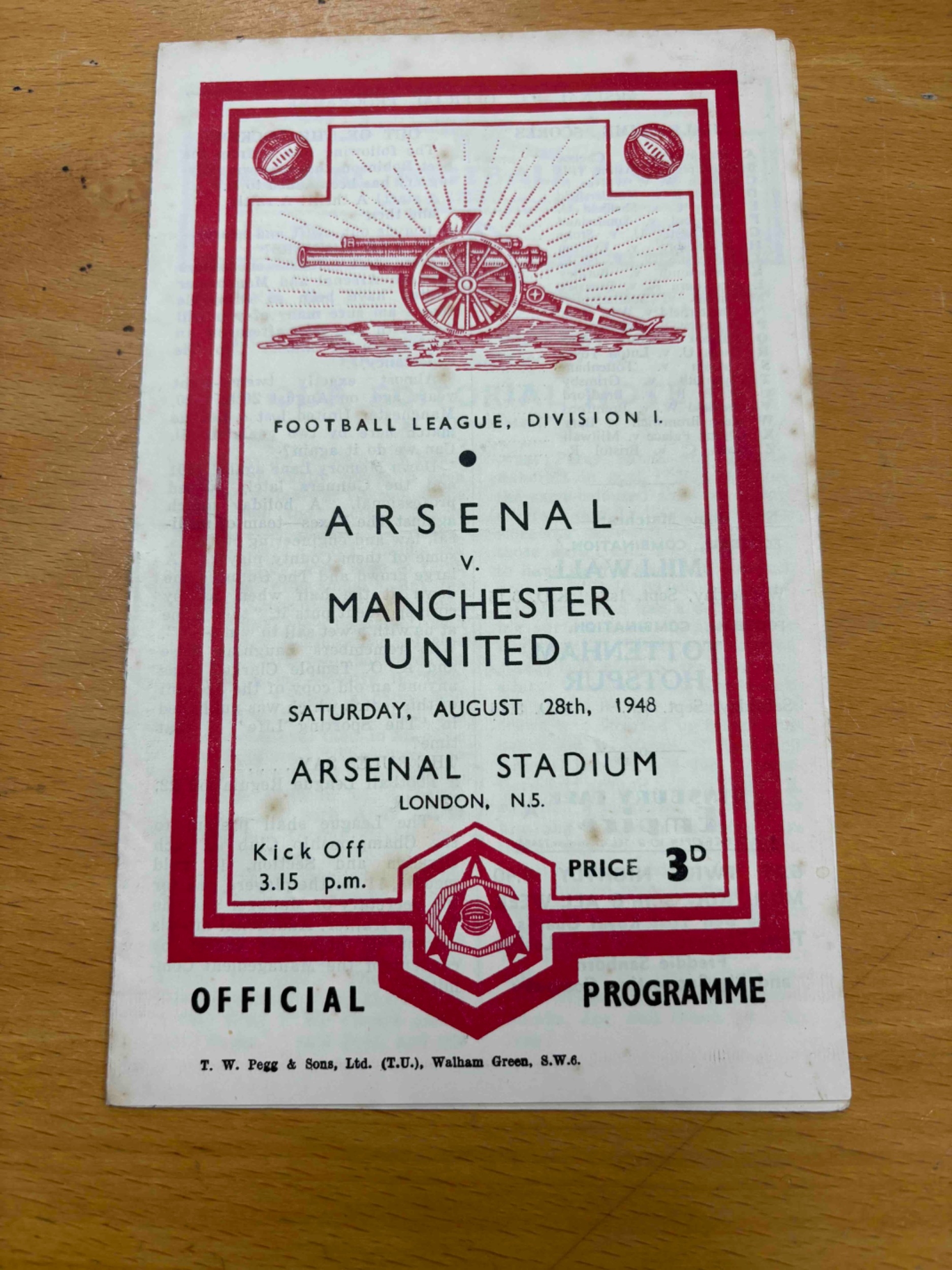 Arsenal v Manchester United 1948/49,, Rust marks.