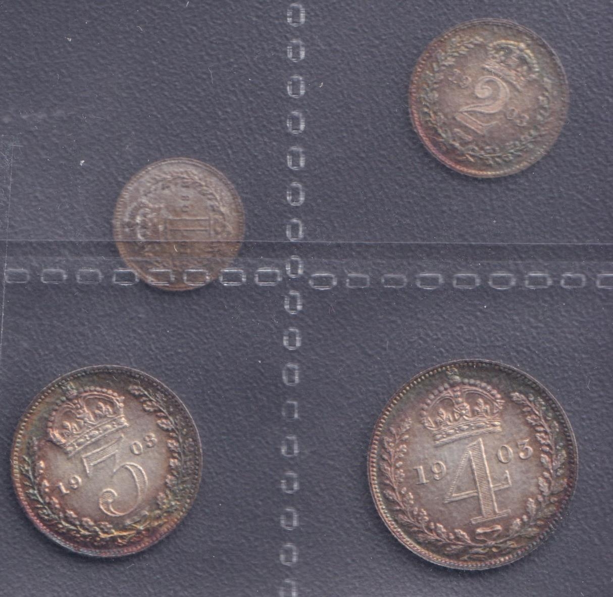 UK EDVII 1903 complete x4 coin silver Maundy set, comprising 1d, 2d, 3d, 4d, in good condition