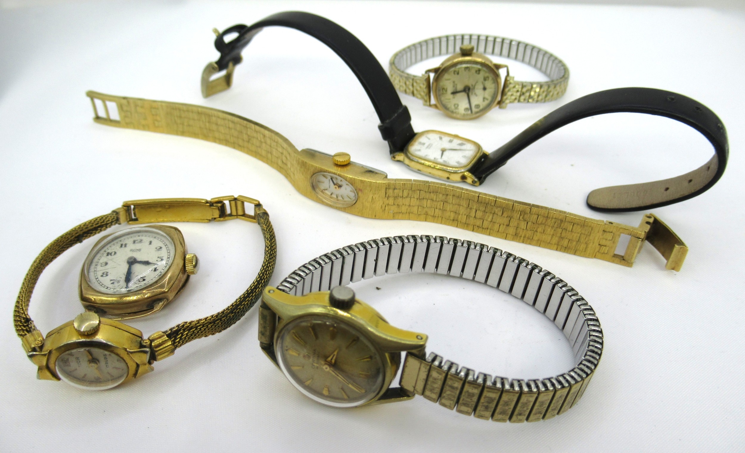 Two ladies 9ct gold cased wristwatches and four other wristwatches