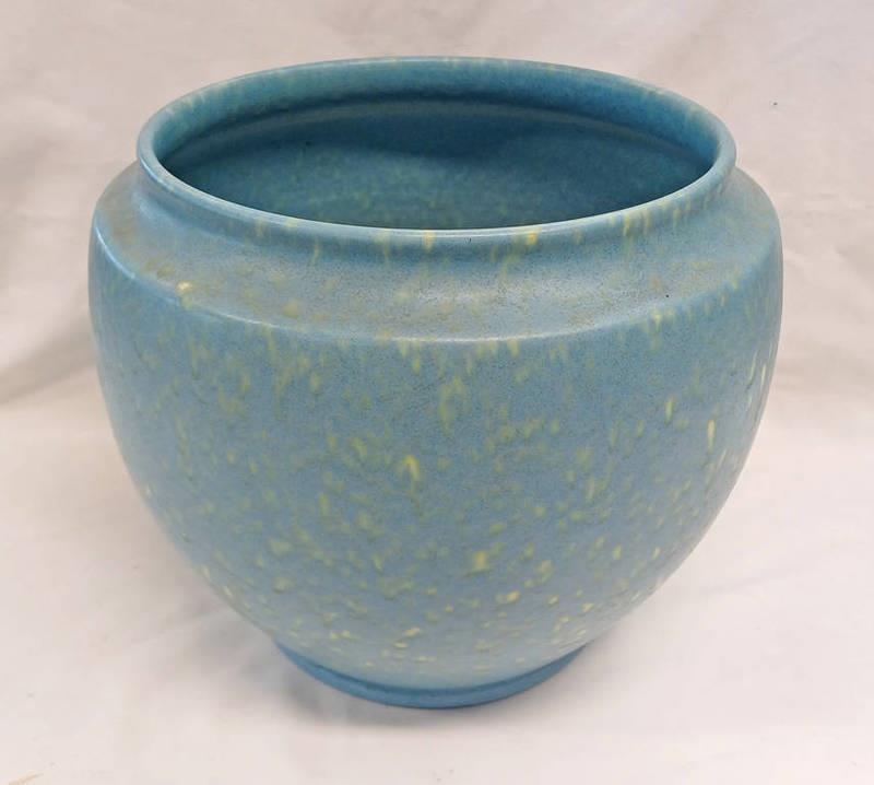 ROYAL LANCASTRIAN PLANT POT WITH MOTTLED BLUE DECORATION MARKED 2968 TO BASE - 28 CM TALL