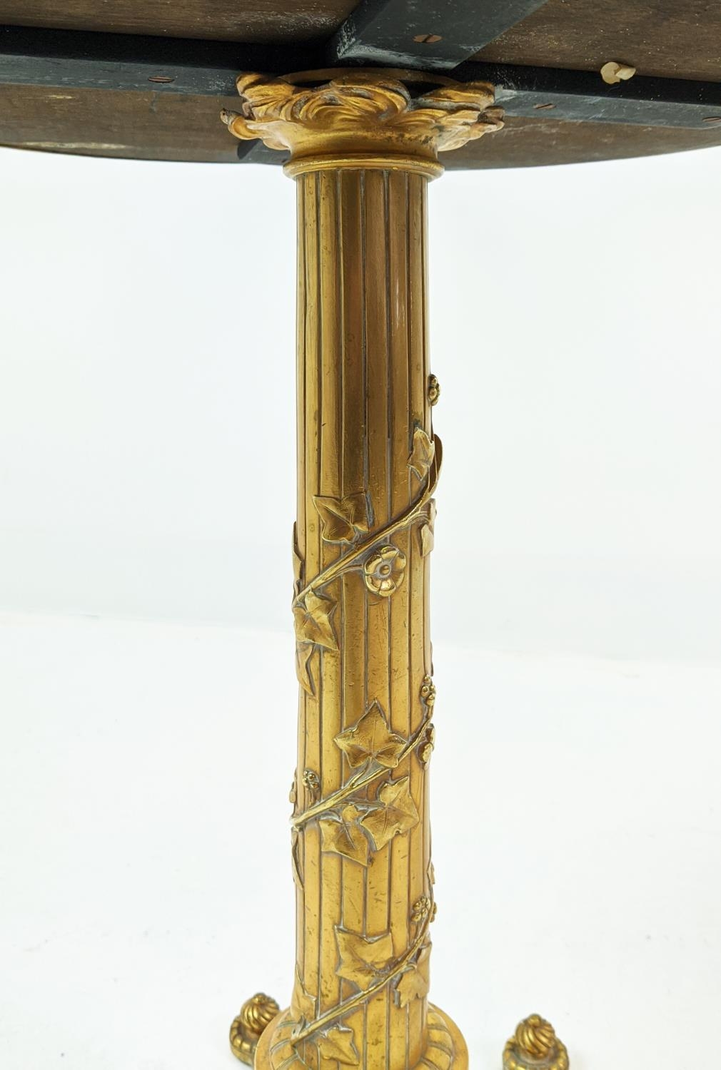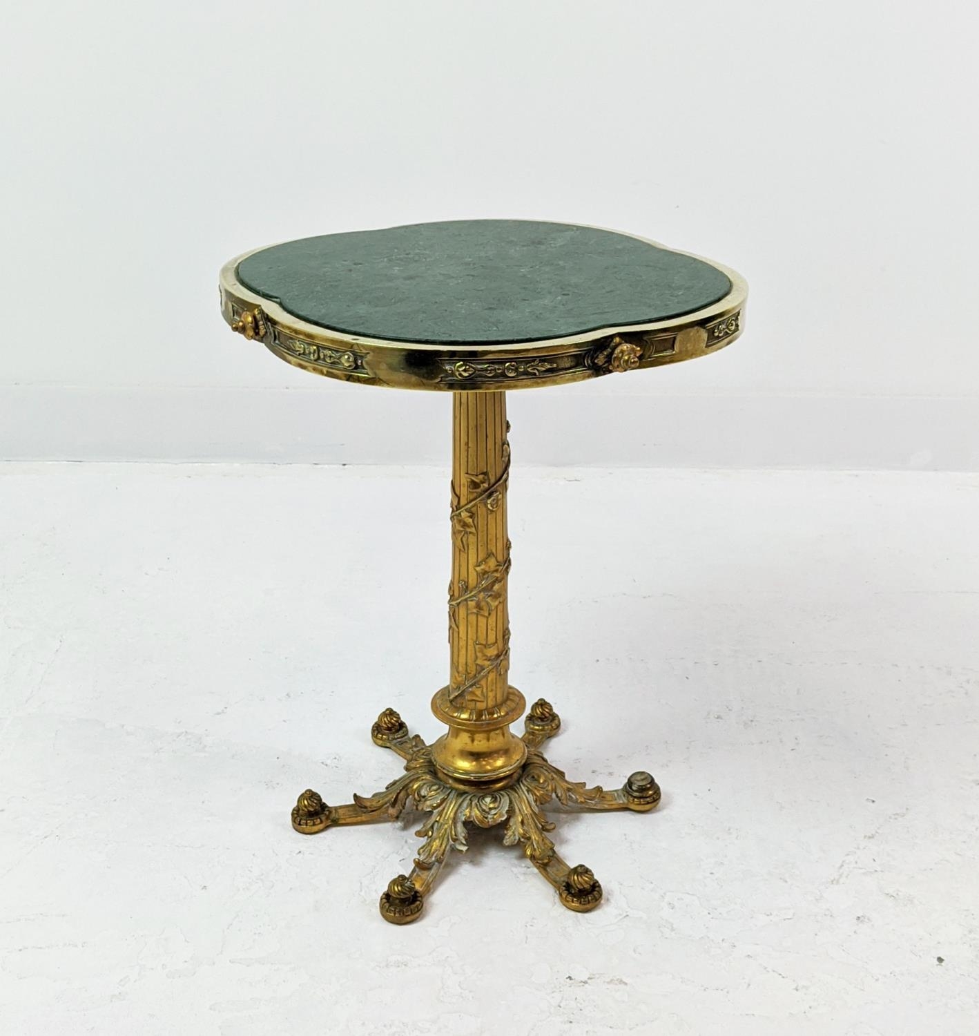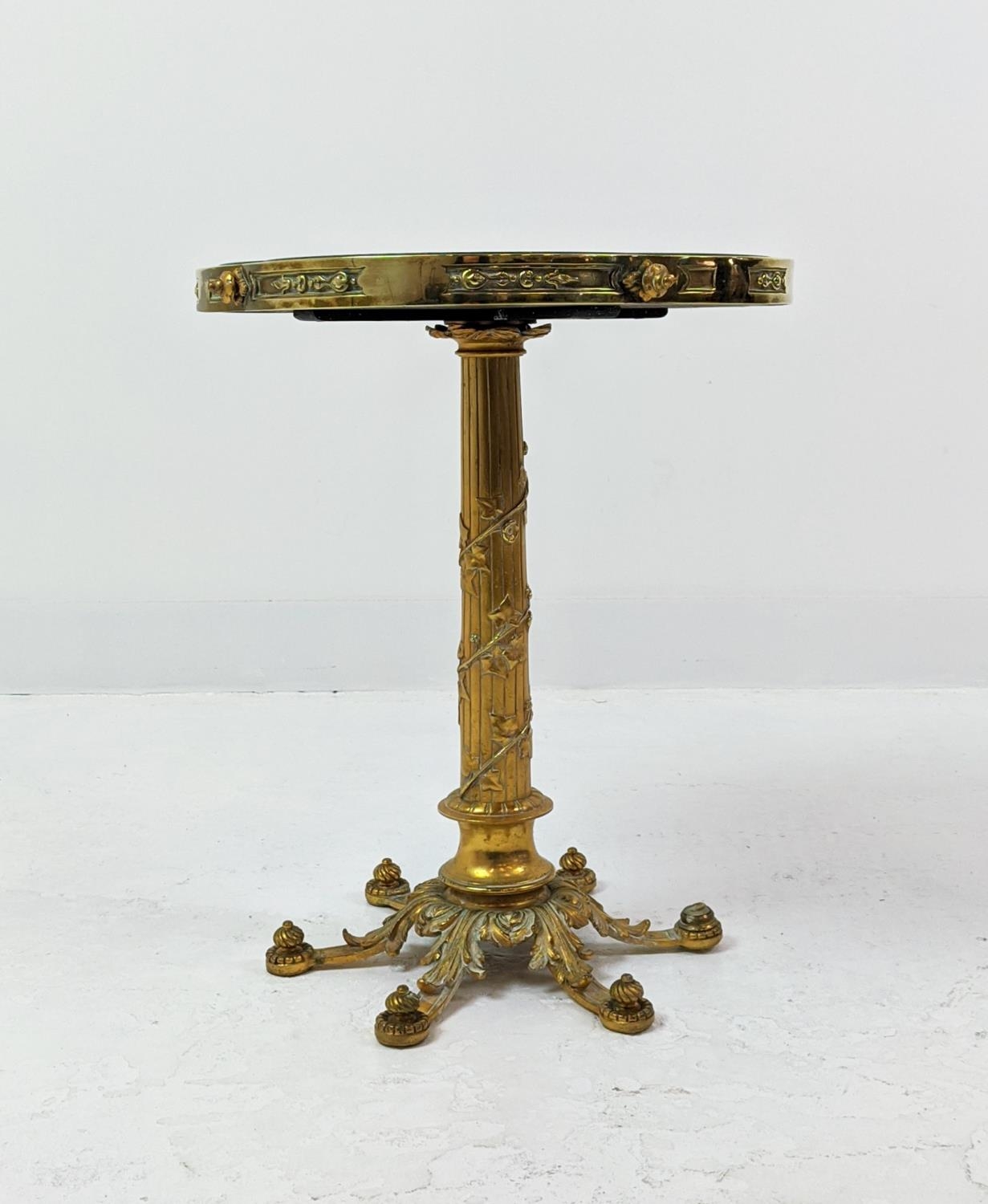 SIDE TABLE, gilt metal, stone top, 115cm H x 54cm H.