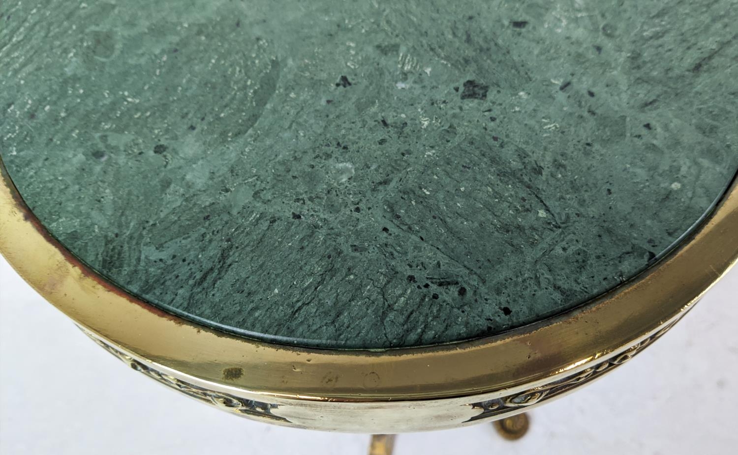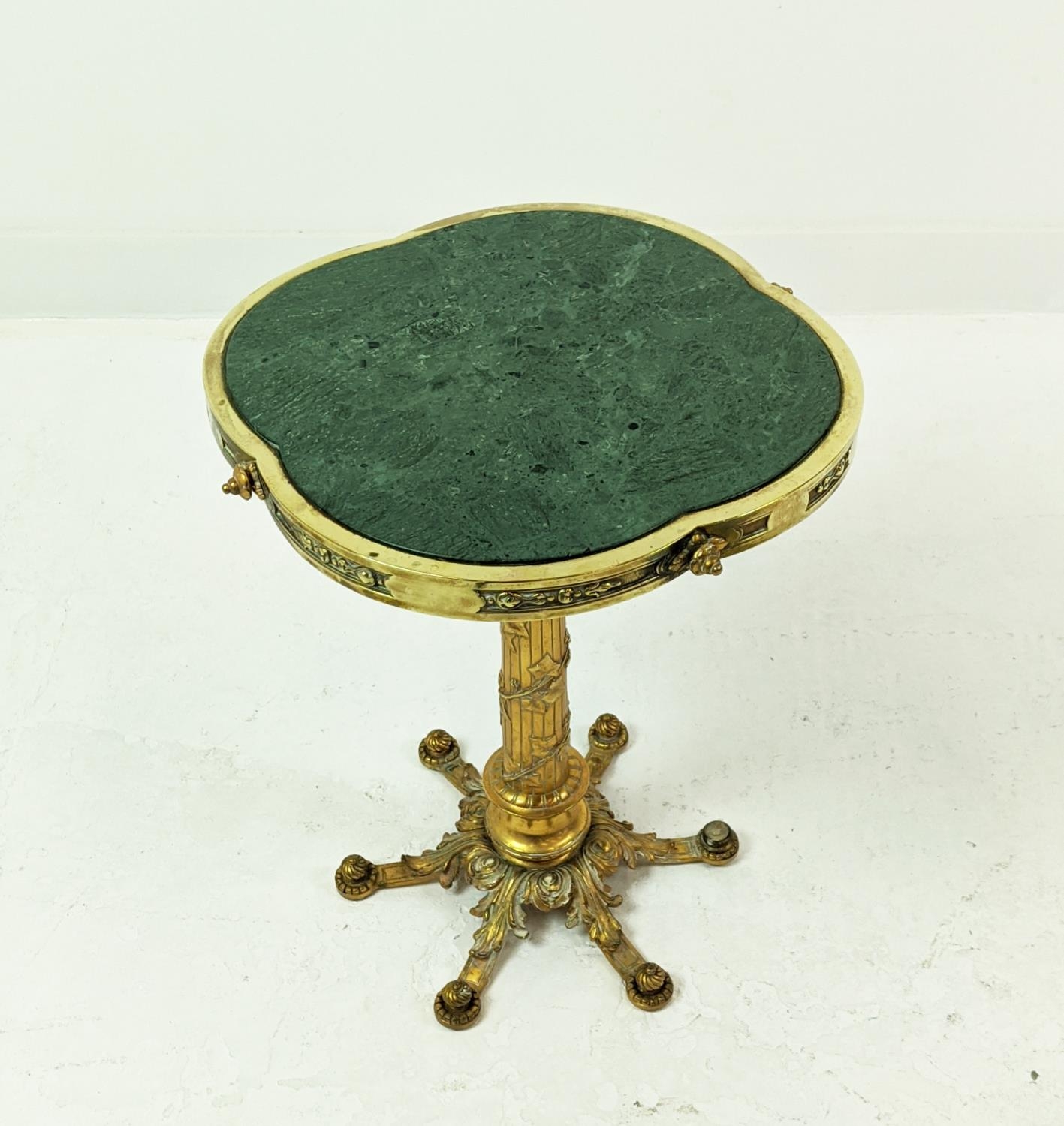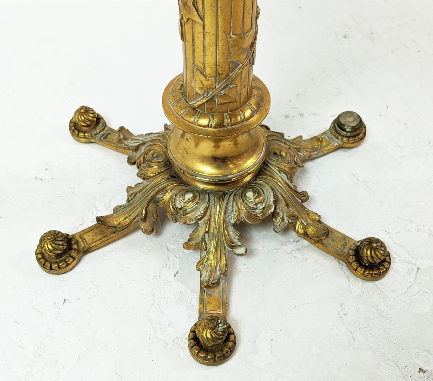 SIDE TABLE, gilt metal, stone top, 115cm H x 54cm H.