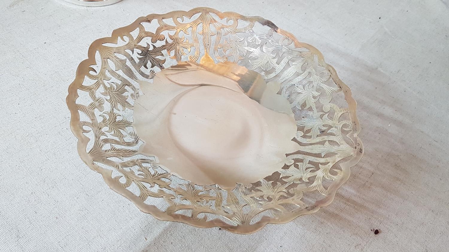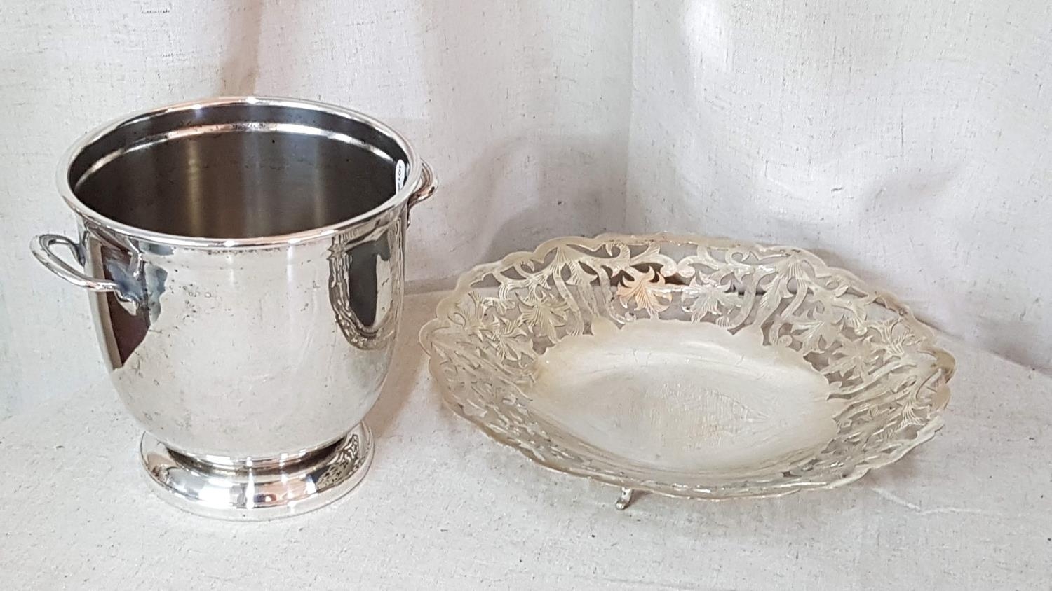 Small Ice Bucket (Olri Italy) Silver Plated (Ø13.5cm x H:13cm) and Small Silver Plated Sweet Dish (Ø21cm) with Floral Design