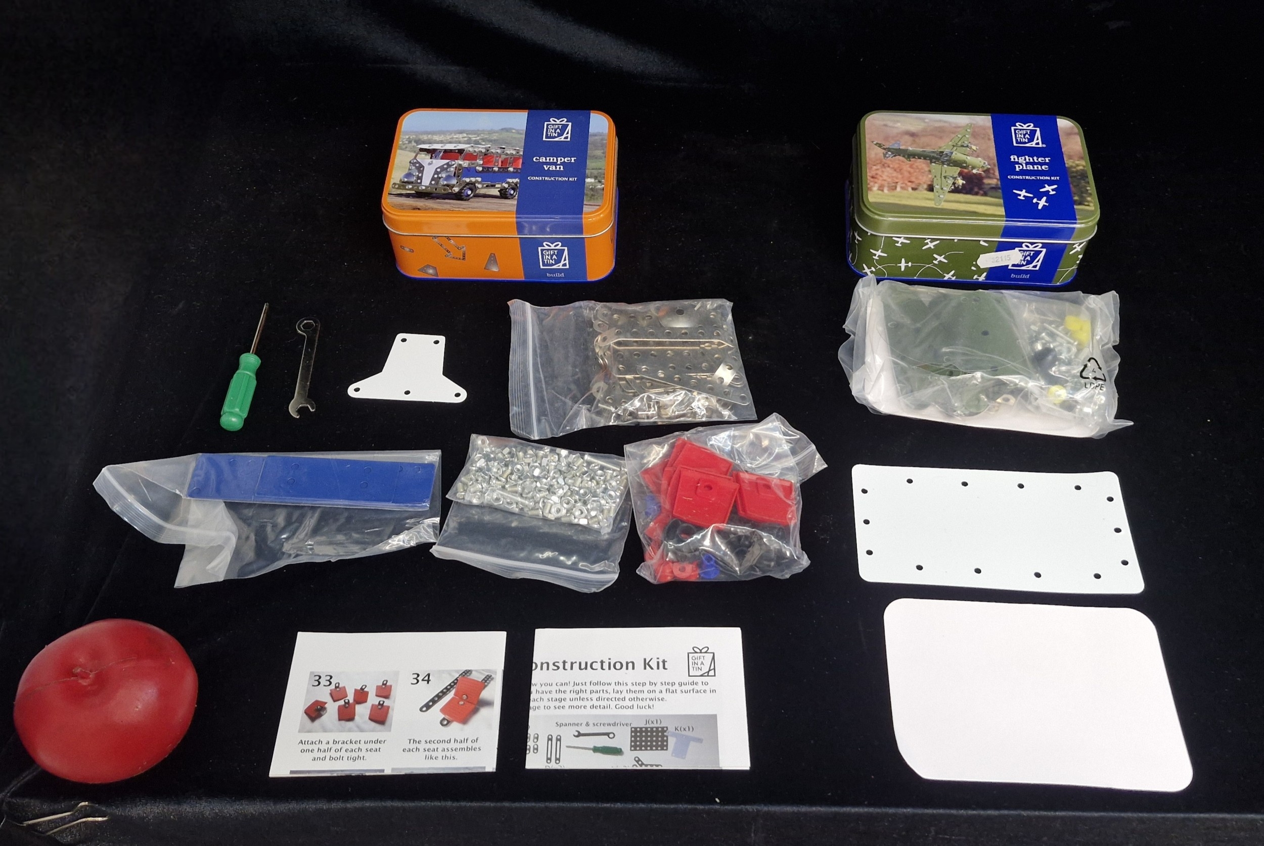 Two Apples to Pears ''Gift in a Tin'' construction kits. Lot includes the camper van model and the fighter plane model. Both in brand new unused condition. RRP 16€ via amazon.