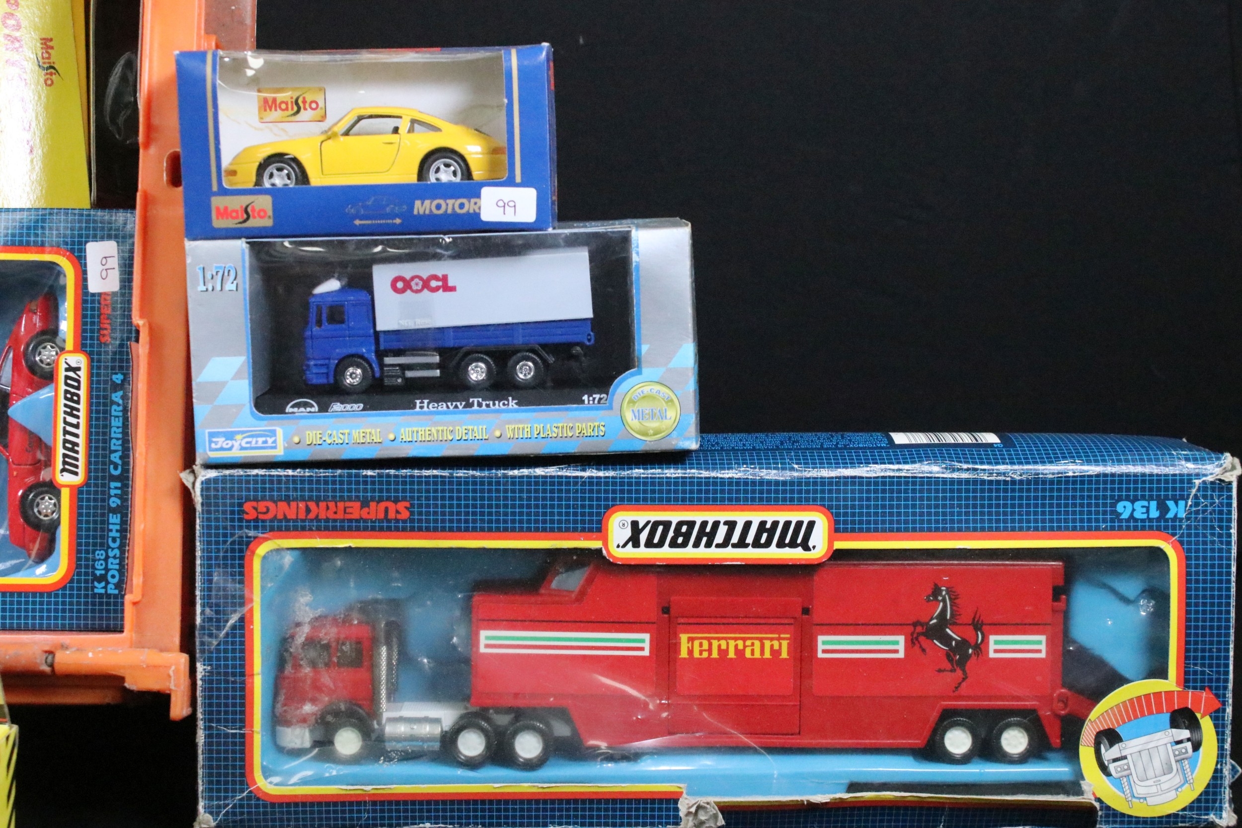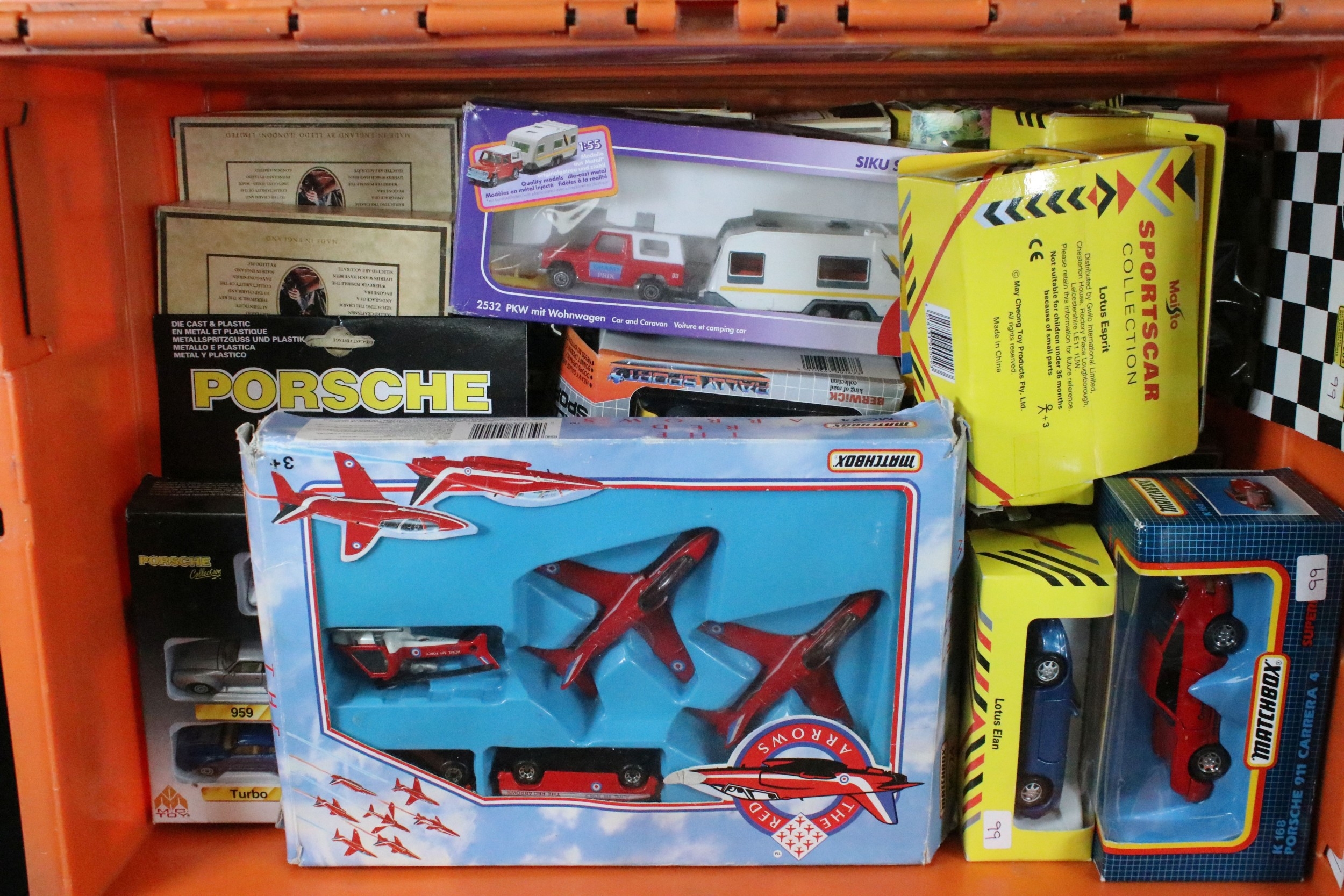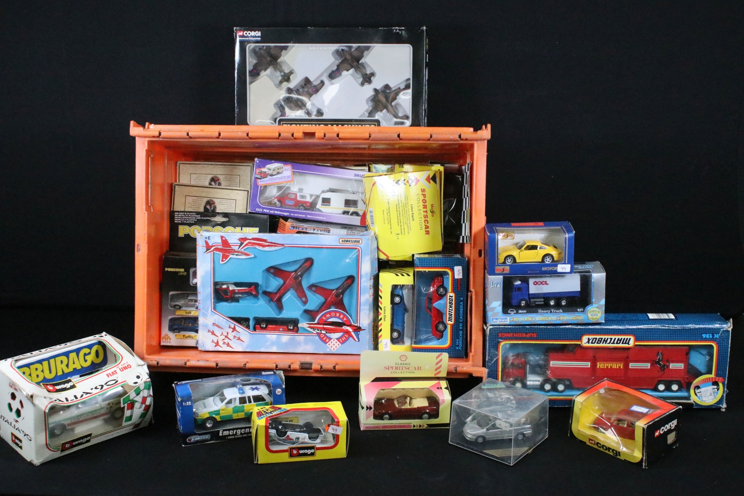 Collection of 60 boxed / cased diecast models to include Corgi Fighting Machines, Matchbox Superkings, Matchbox MB Series, Burago, Vitesse, Siku, Lledo Days Gone, Oxford Diecast, etc, all diecast ex overall, boxes vary in condition