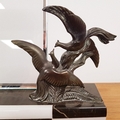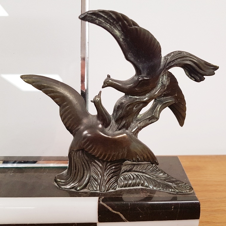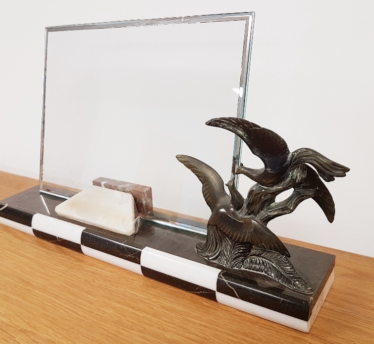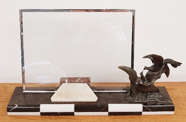 1940 French Art Deco Marble and Spelter Picture Frame with black and white check front design. Original glass frame in place, measures 13.5 inches x 3.5 inches.