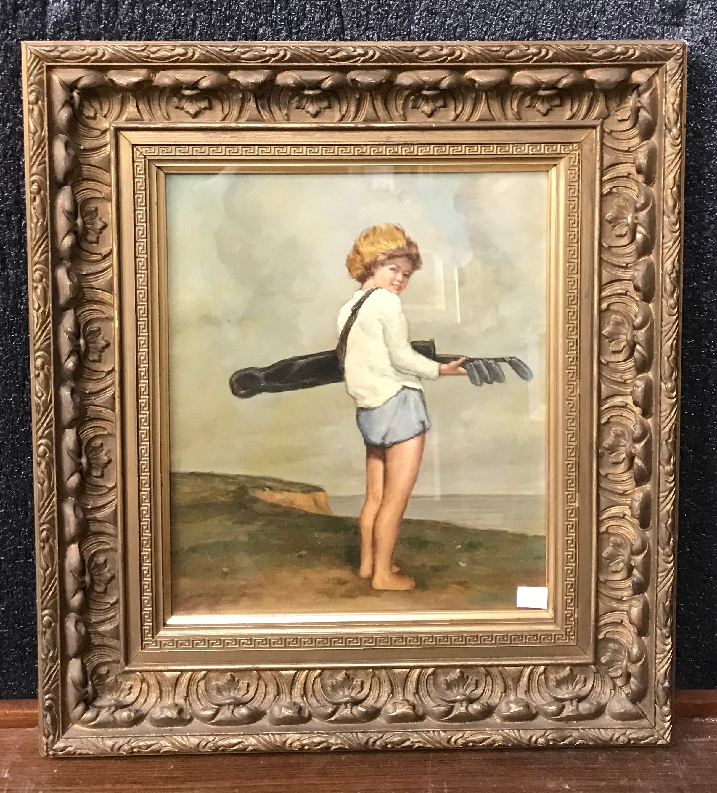 E.G. Carmen, young girl with a golf bag, oil on canvas, framed