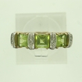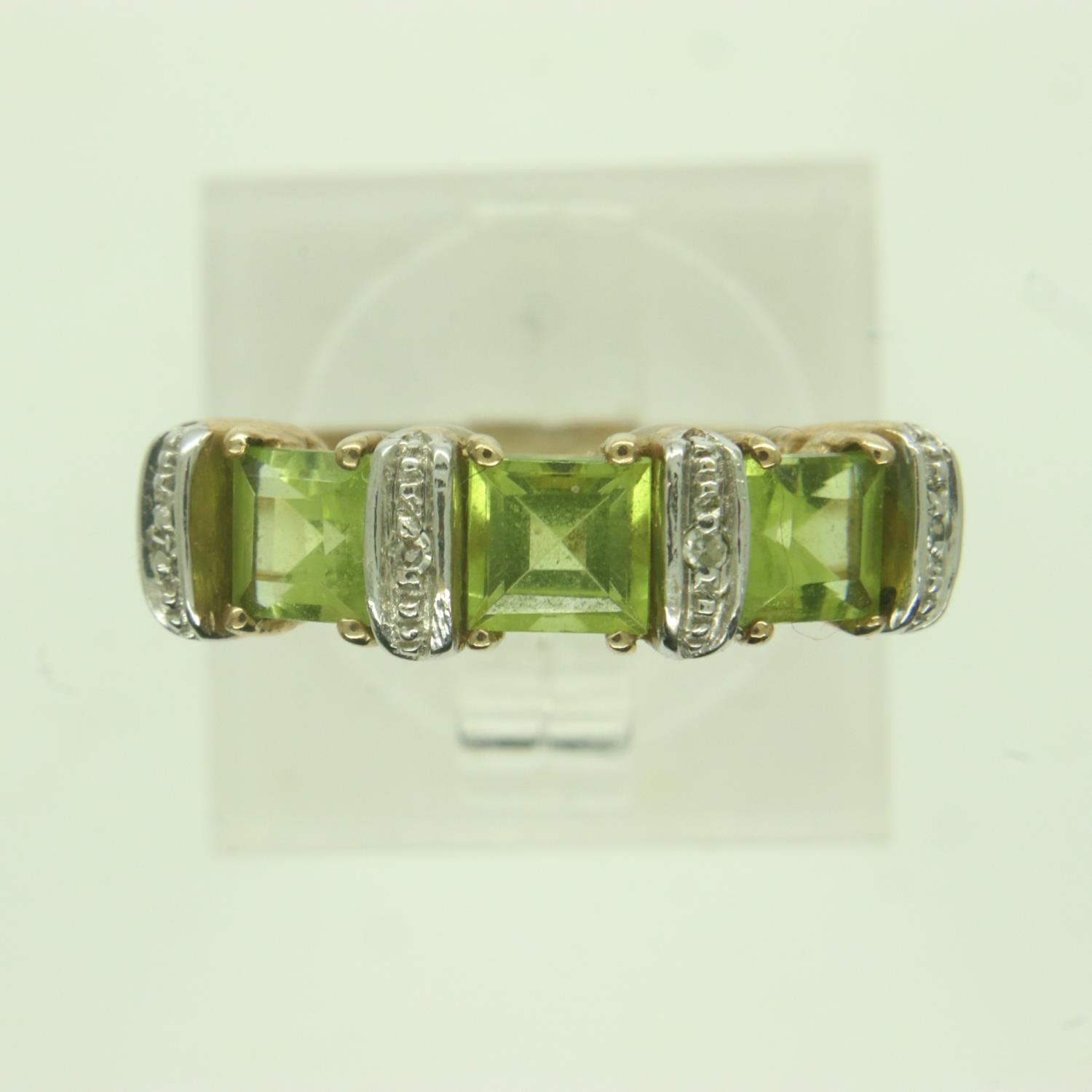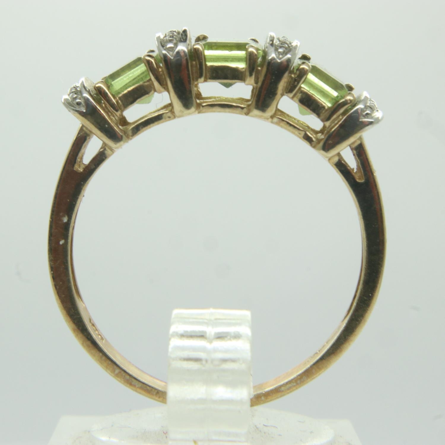 Contemporary 9ct gold ring set with peridot and diamonds, size P, 3.0g. P&P Group 0 (£6+VAT for the first lot and £1+VAT for subsequent lots)
