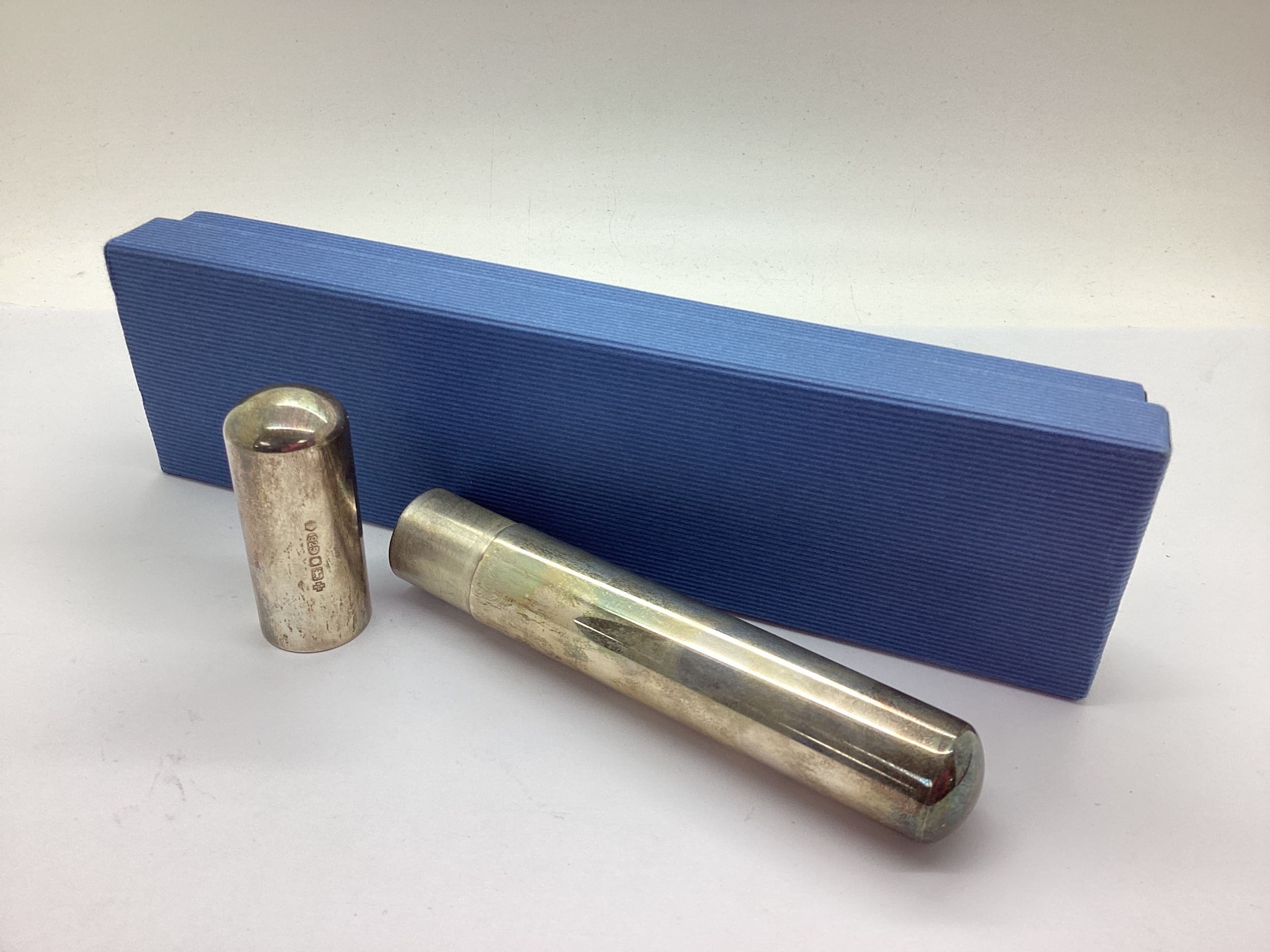 A Modern Hallmarked Silver Single Cigar Case, RC, 2000, 15cm long (boxed).