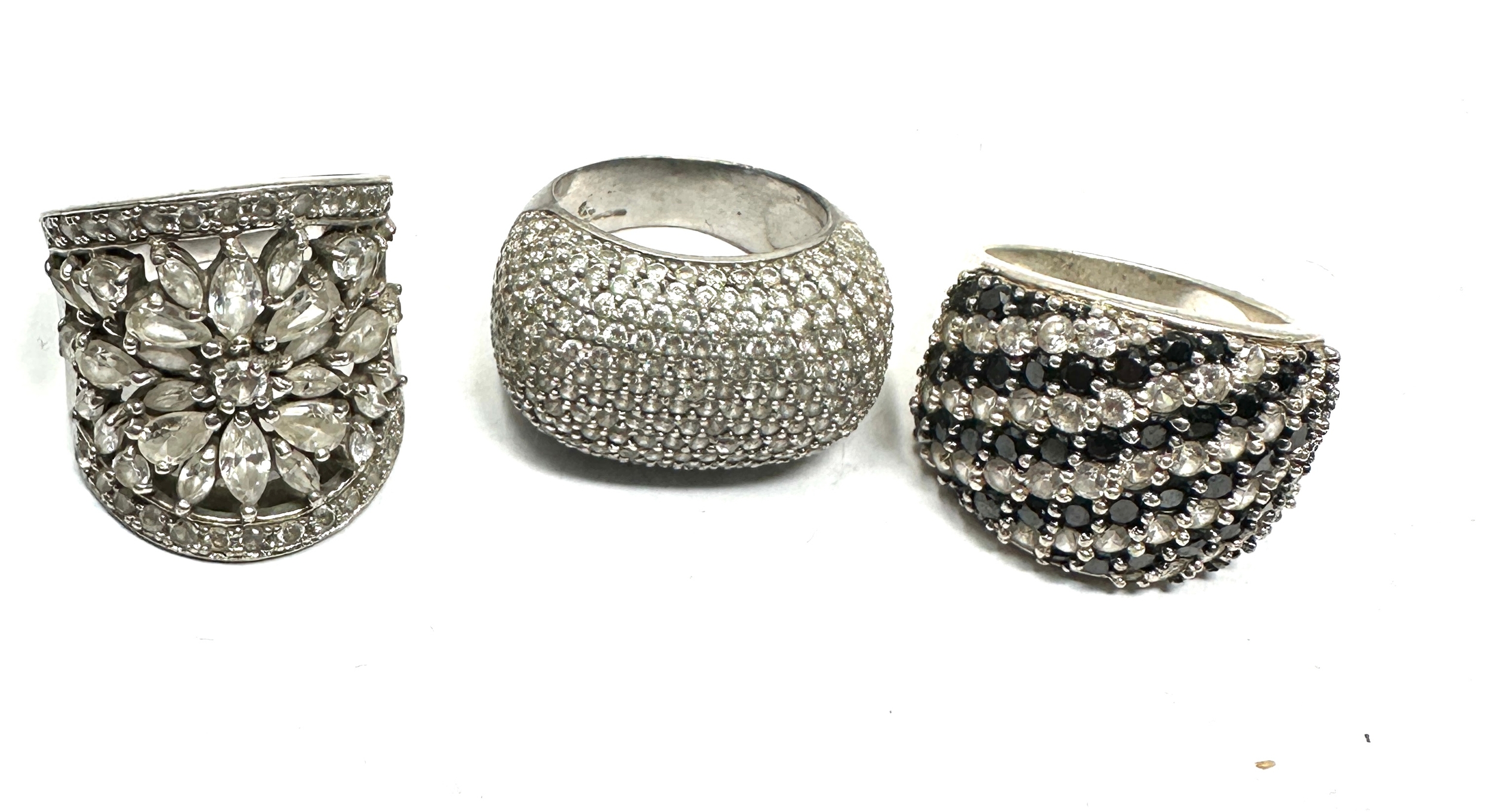 3 chunky vintage gemstone set silver rings weight 32g